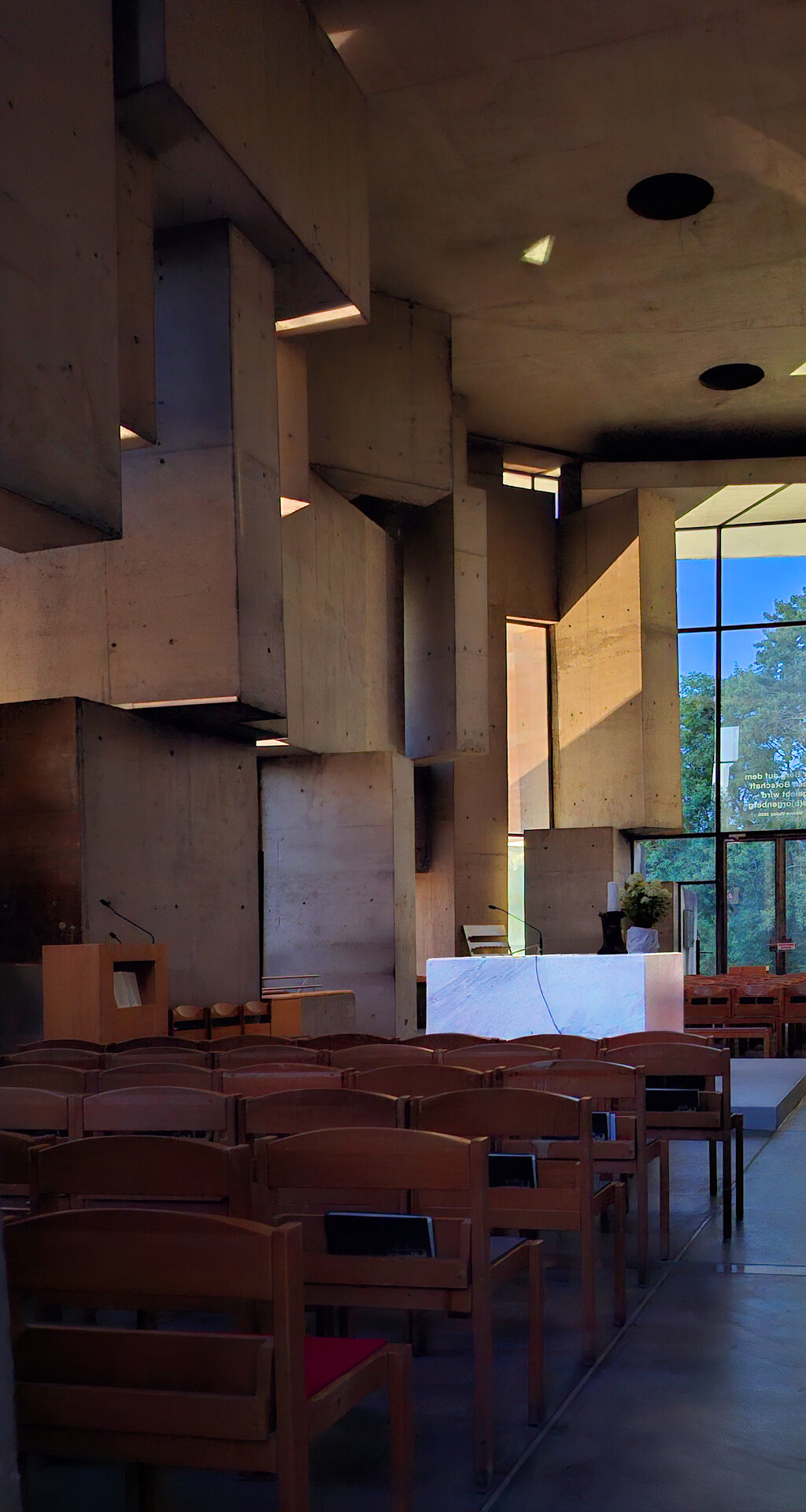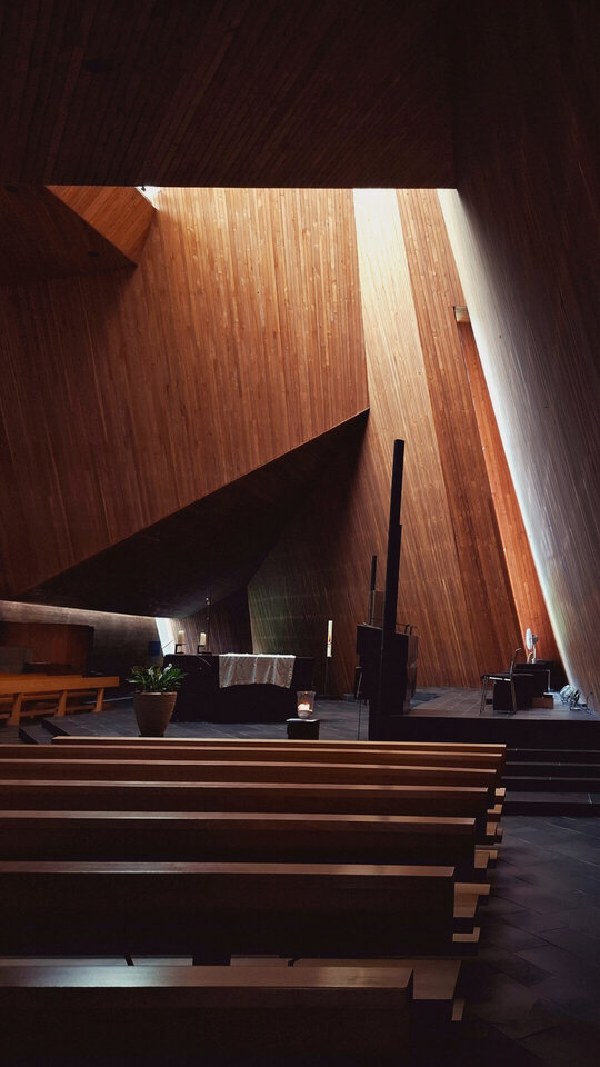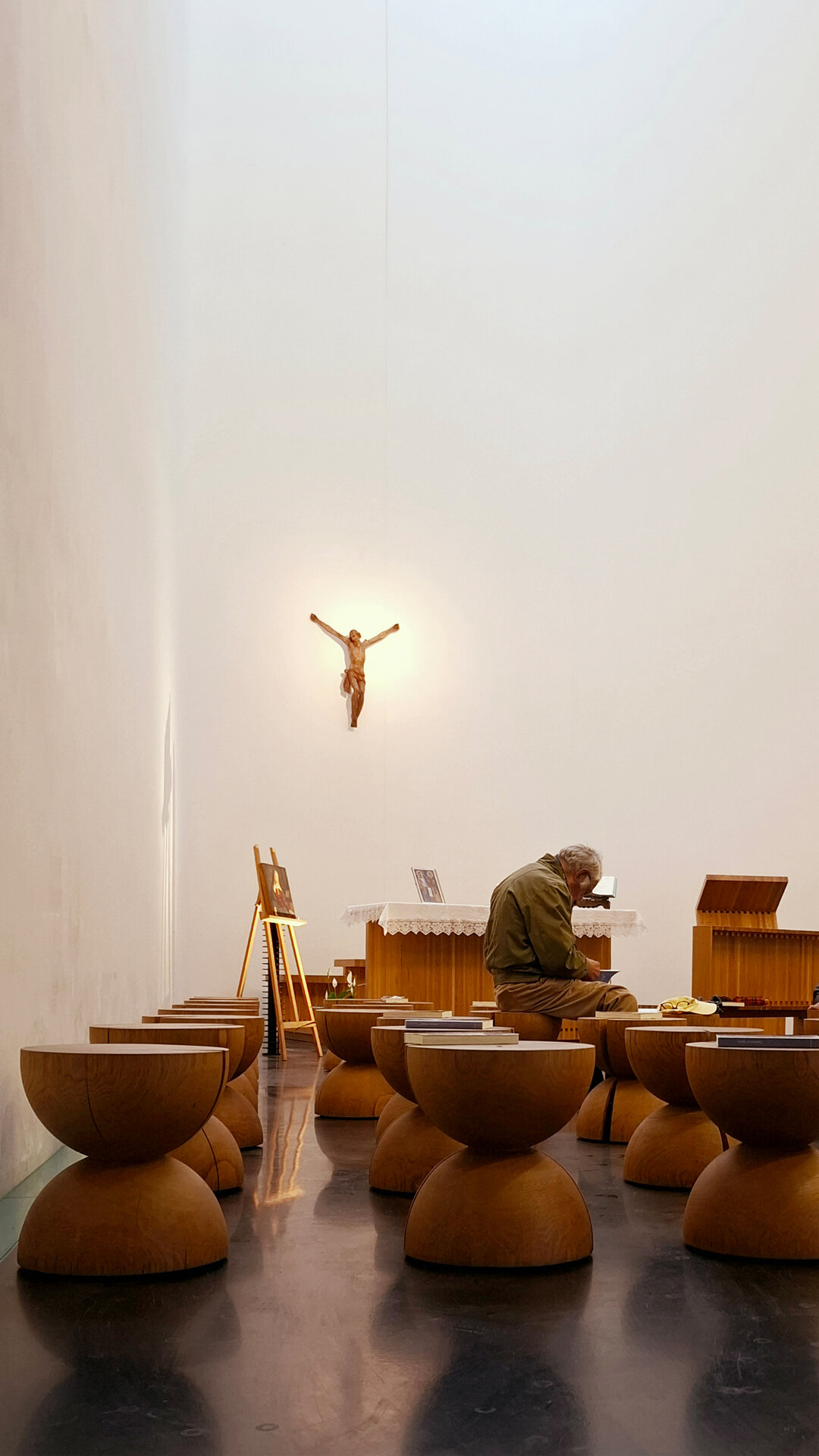 Fotografiile au fost surprinse în timpul unei călătorii solitare în jurul Alpilor, un parcurs de contemplare a arhitecturii sacre și a felului în care aceasta orchestrează lumina.