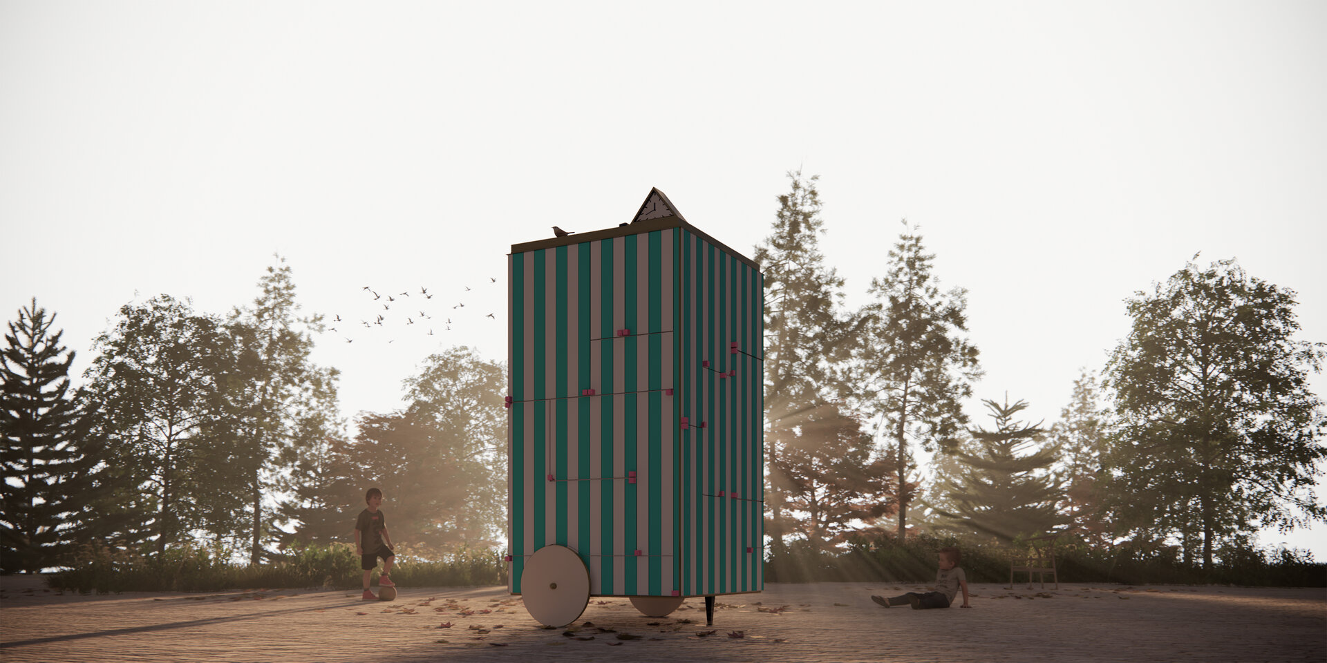 Soluția propusă constă într-un cabinet de dimensiuni reduse, un obiect familiar în conștiința colectivă, ușor de recunoscut. Conceput pentru a satisface nevoile diverse ale comunității din zona salbei de lacuri a Colentinei, acest cabinet își asumă multiple identități, invitând trecătorii să descopere și să exploreze funcțiunile pe care le ascunde.
