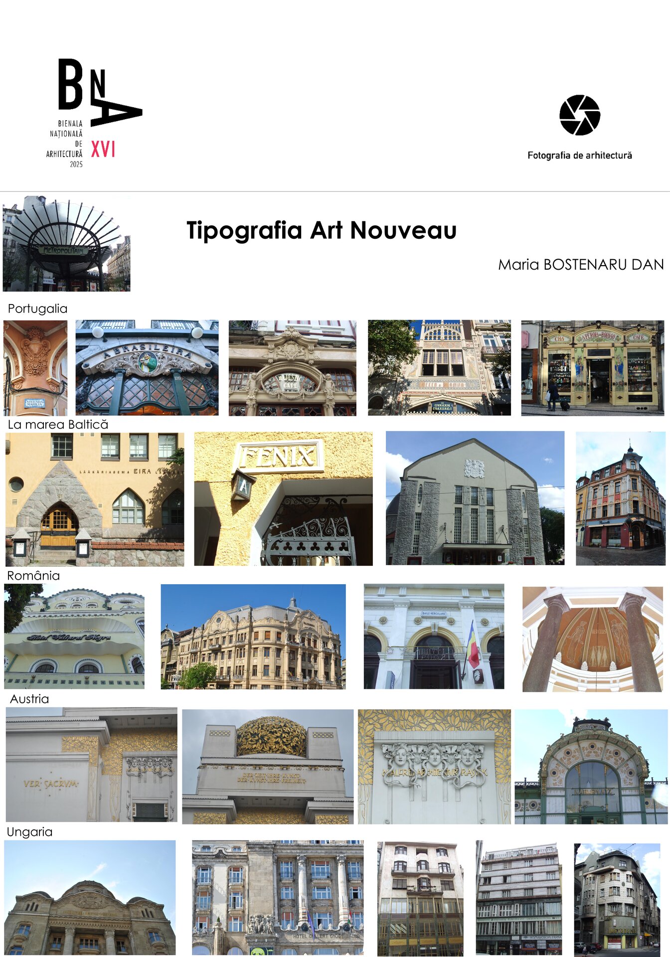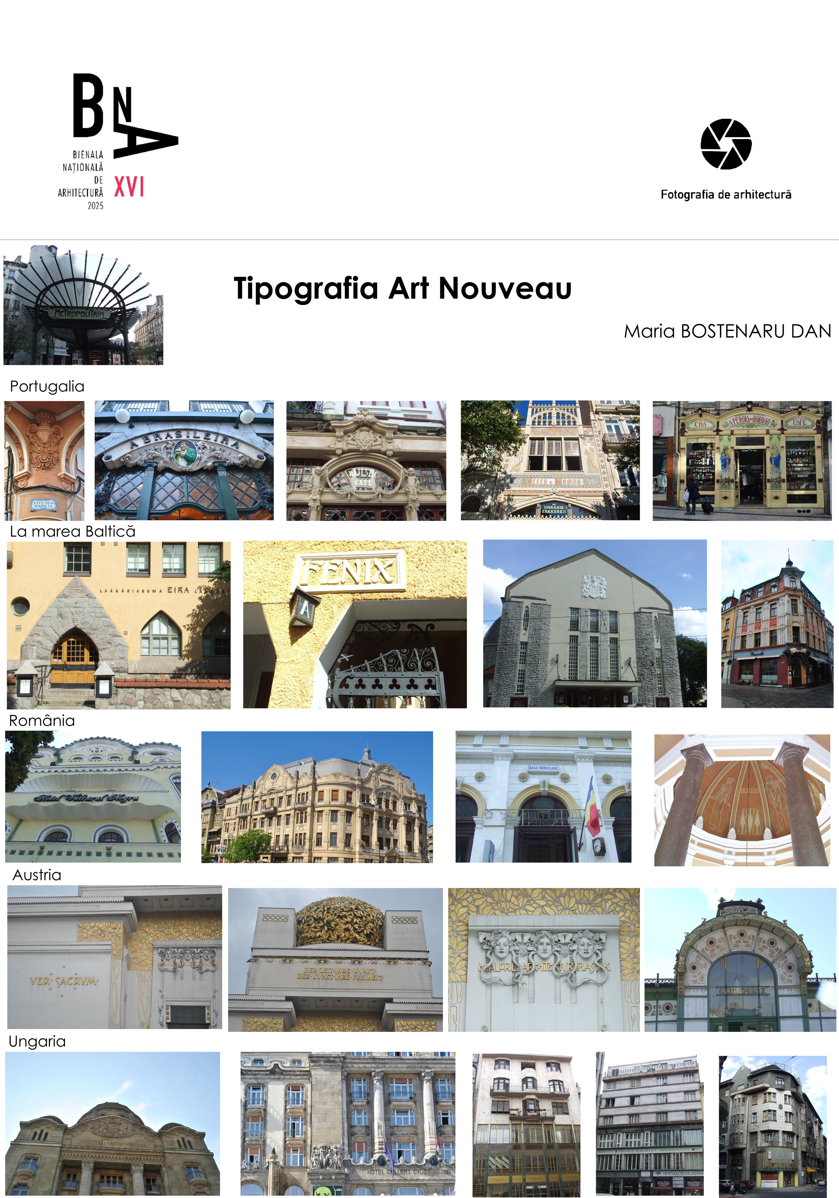 Scrierea Art Nouveau ca parte a clădirilor, în diferite părți din Europa.