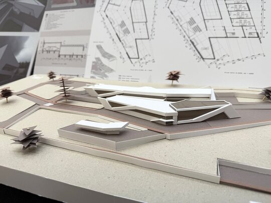 Conceptul propune o ambiție urbană, în care arhitectura nu este doar un cadru fizic, ci și o platformă deschisă către comunitate. Alinierea la linia roșie sugerează o relație cu strada, unde parterul devine o zonă semi-publică, accesibilă, ce poate funcționa ca prelungire a spațiului urban. Prin utilizarea materialelor naturale, a vitrajelor ample și a unei estetici contemporane, clădirea reușește să fie în același timp vizibilă și accesibilă în mediul său.