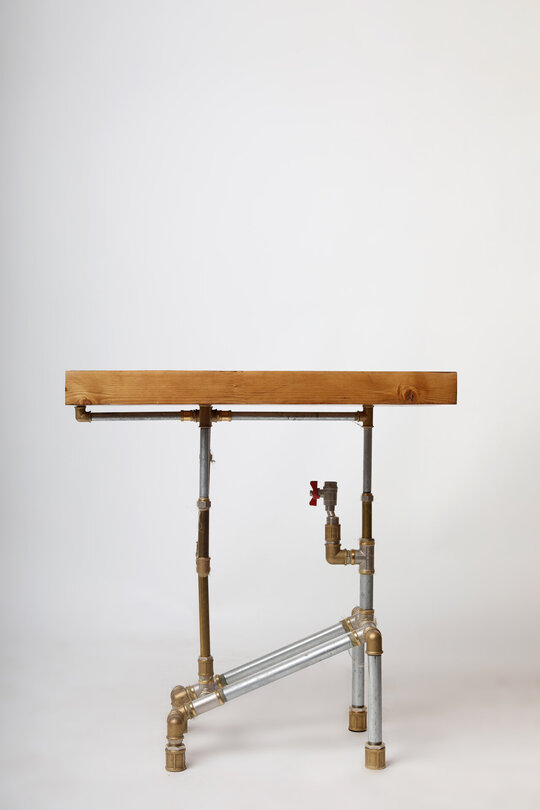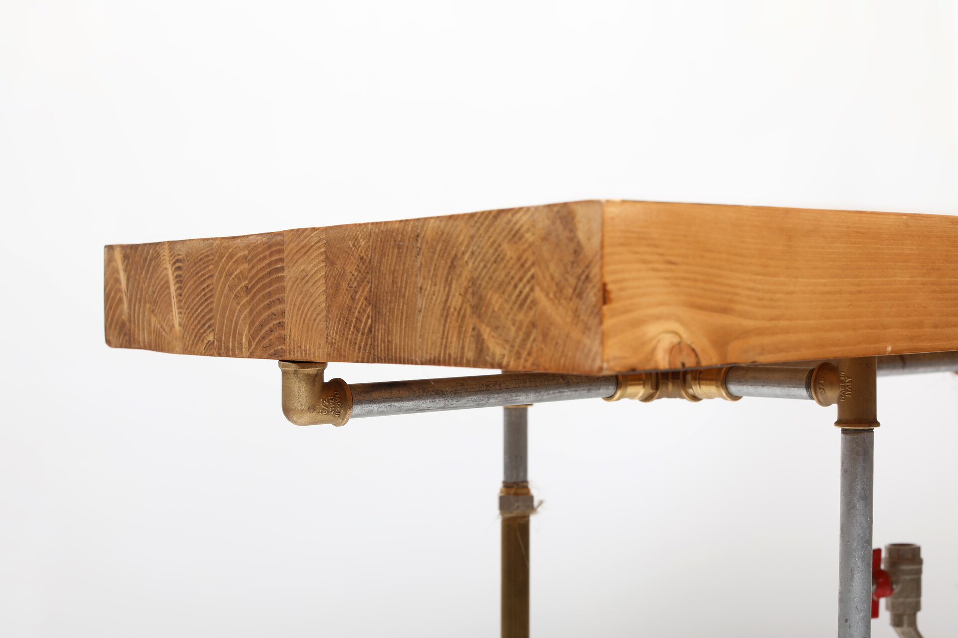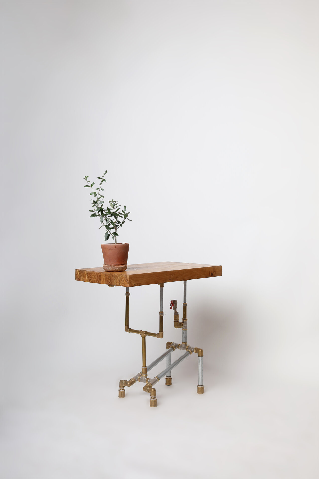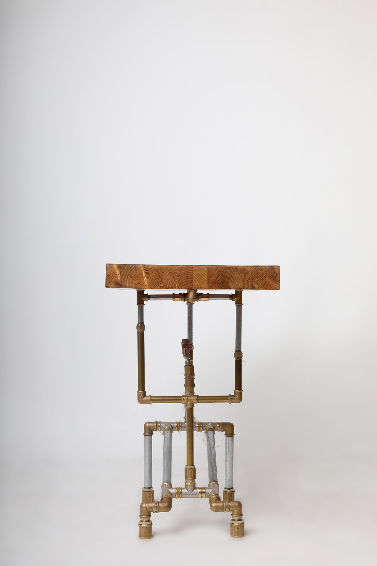 Proiectul este Strâns.legat de una dintre piesele din colecția de obiecte de mobilier realizate în familie, în mijlocul căreia trăim, în micul nostru apartament din inima Bucureștiului și reprezintă o masă cu picioare din fittinguri de alamă și oțel zincat și blat gros de molid îmbinat.
