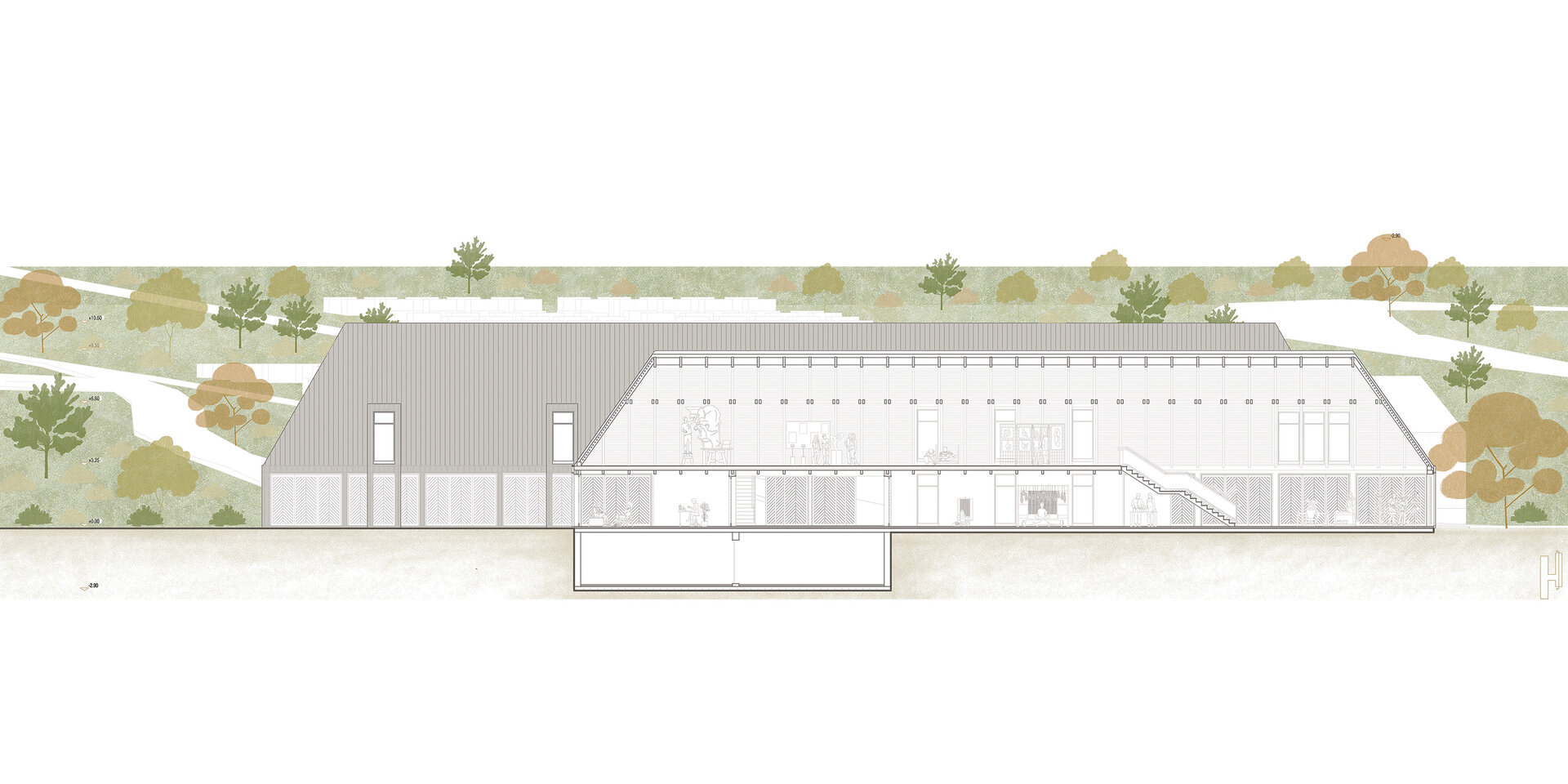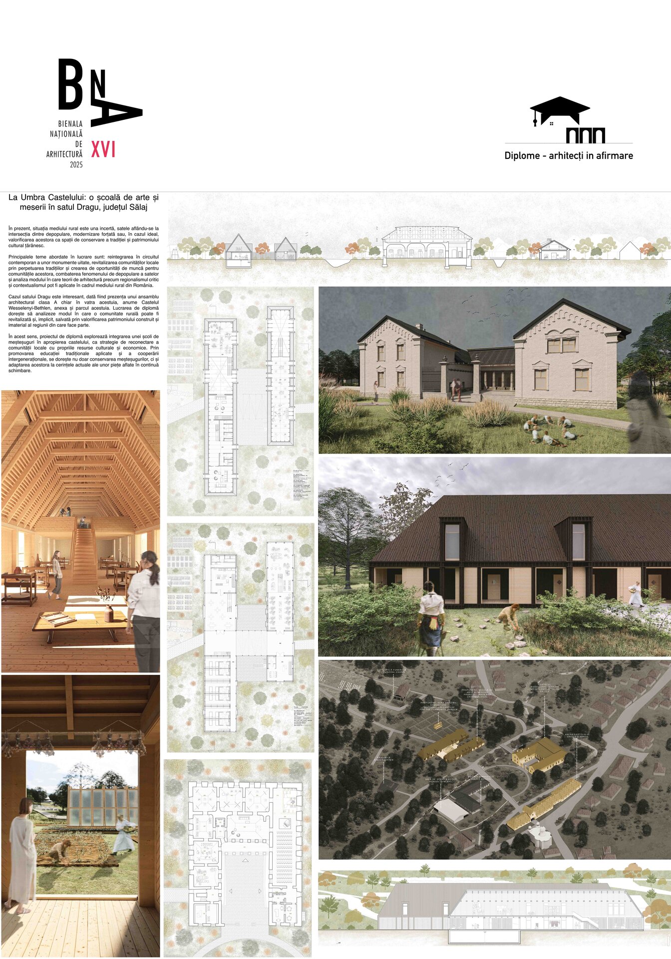 Intervenția propriu-zisă presupune restaurarea ansamblului Wesselenyi-Bethlen prin transformarea castelului într-un muzeu al istoriei și îndeletnicirilor tradiționale din zona Sălajului, respectiv din zona Meseș, urmând ca în viitor să devină un spațiu cultural reprezentativ, atât pentru regiunea din care face parte, cât și la nivel macro. Școala de arte și meserii se poziționează pe terenul adiacent castelului și întregește incinta virtuală formată de ansamblul monumental și școala gimnazială a satului, atât din punct de vedere compozițional, cât și din punct de vedere funcțional. Imaginea obiectului de arhitectură propus caută să studieze felul în care elemente de factură tradițională pot fi preluate și sintetizate într-o manieră contemporană, rezultând o intervenție discretă și adecvată contextulului rural căreia i se adresează.