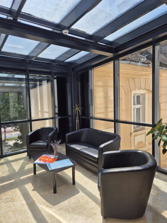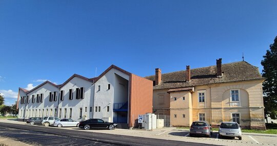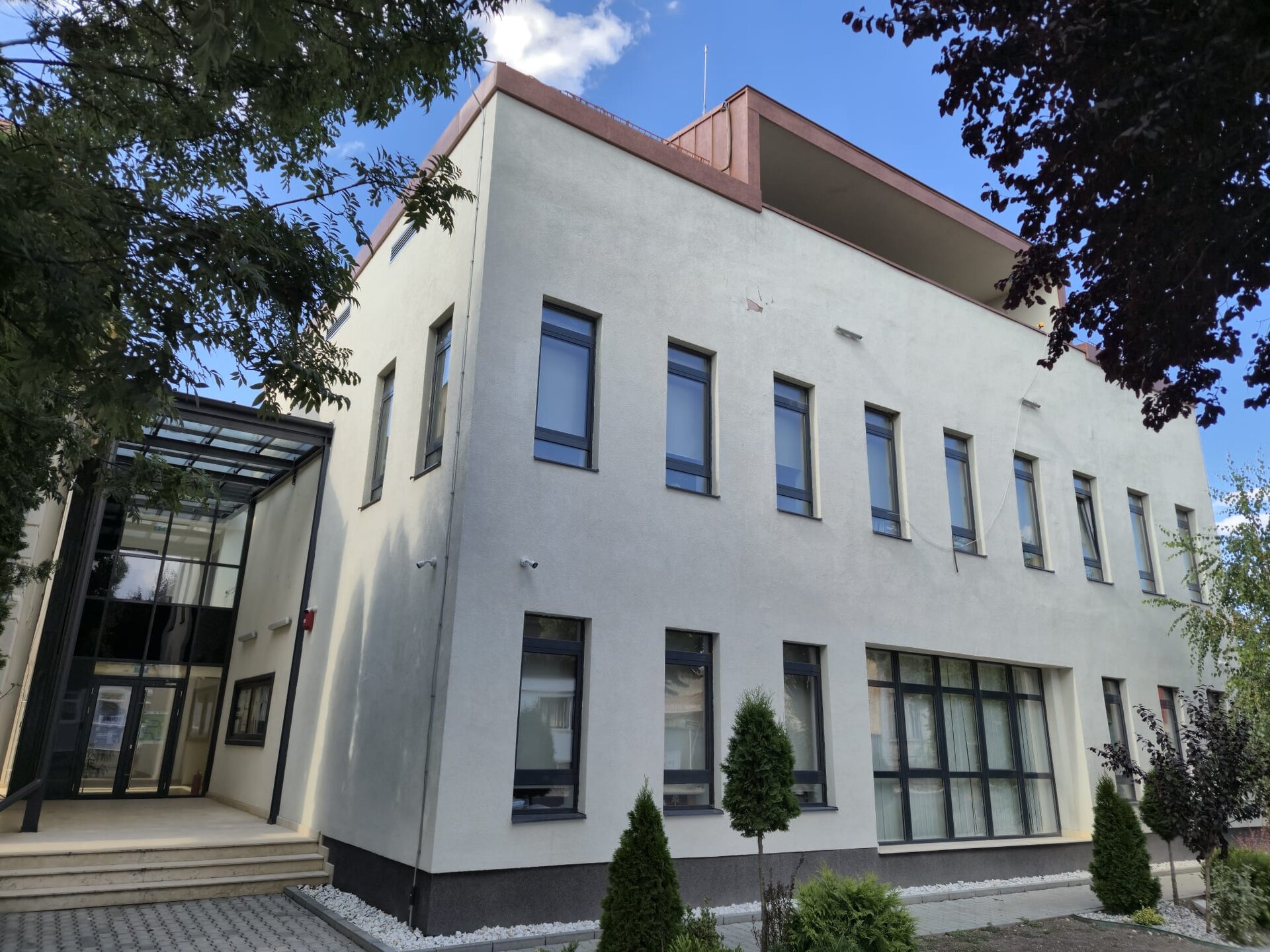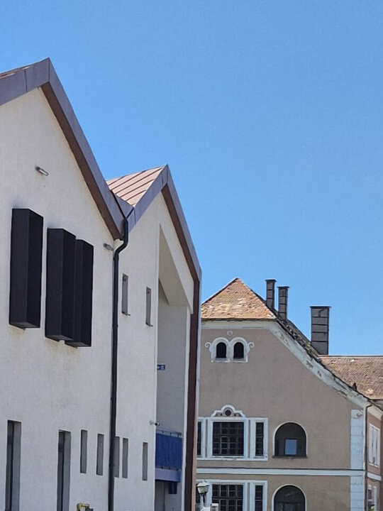 Alaturarea si relationarea cu corpul existent -sediul vechi al Primariei (ce urmeaza sa fie reabilitat si transformat in muzeu) au fost deasemenea definitorii in compozitia spatio-functionala de obiect si ansamblu.