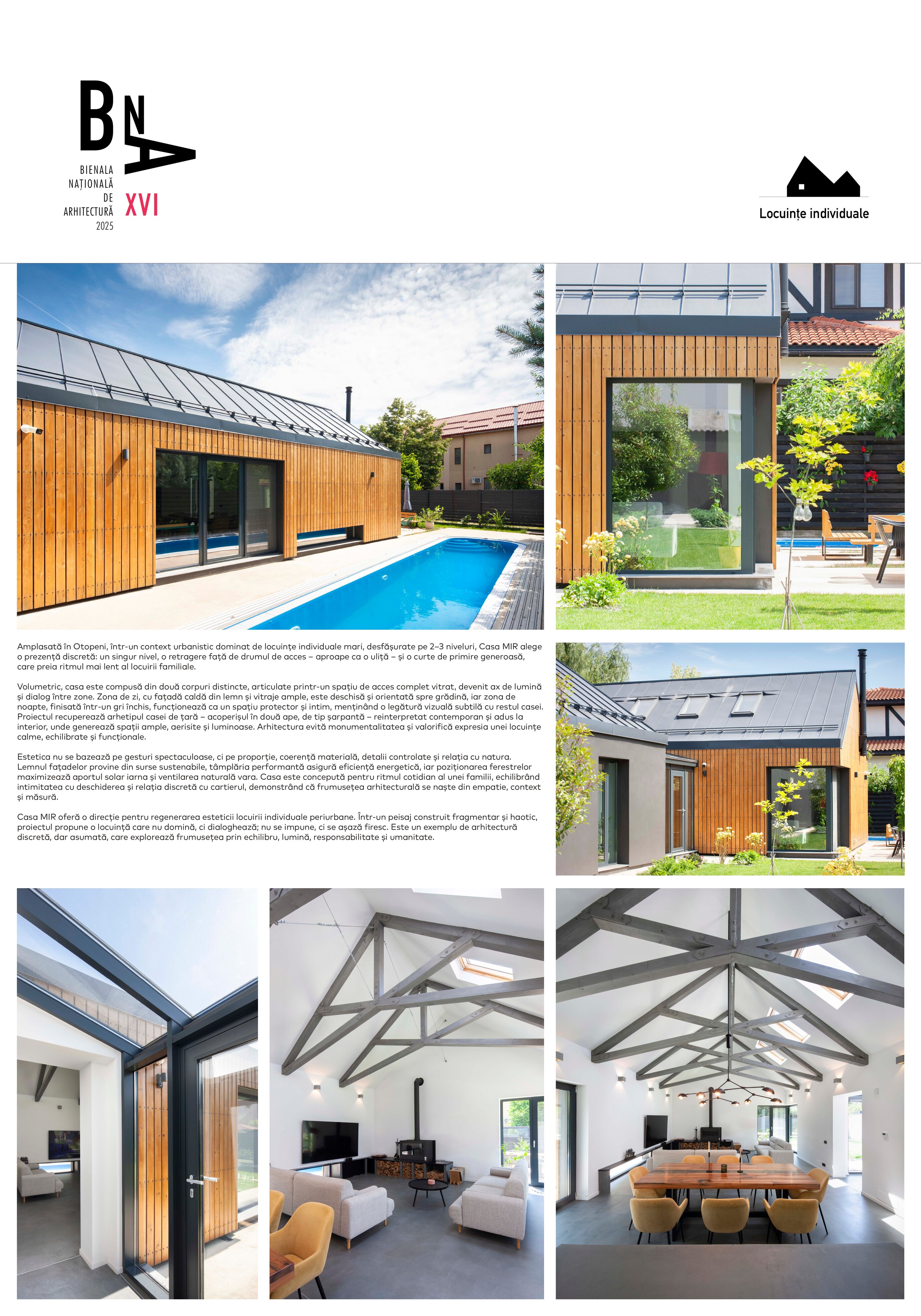 Casa MIR oferă o posibilă direcție pentru regenerarea esteticii locuirii individuale în zonele periurbane ale Bucureștiului. Într-un peisaj construit adesea fragmentar și haotic, proiectul propune o locuință care nu domină, ci dialoghează; nu se impune, ci se așază firesc. Este un exemplu de arhitectură discretă, dar asumată, care explorează frumusețea prin echilibru, lumină, responsabilitate și umanitate.