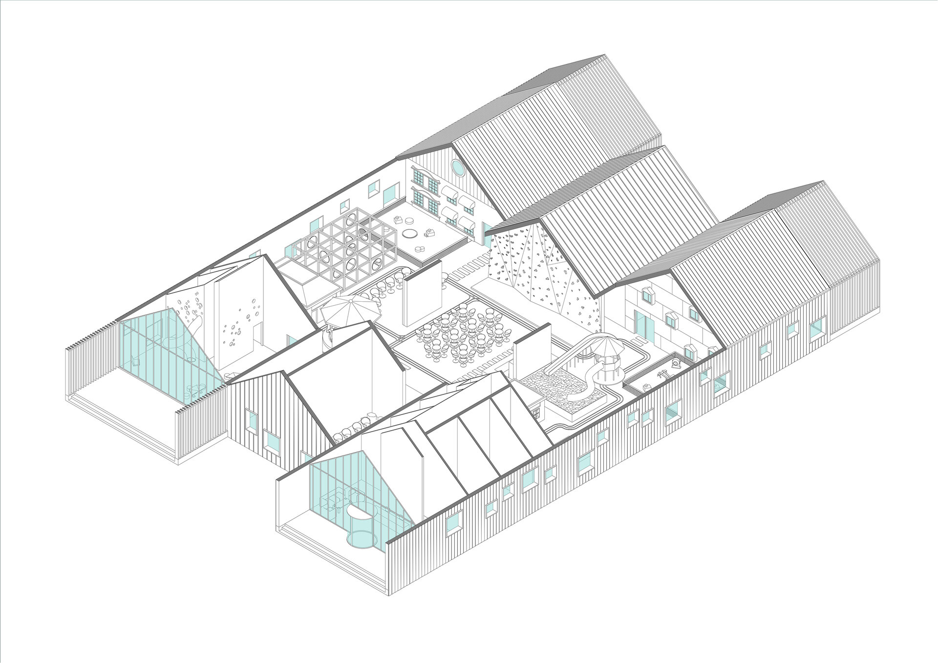 Prin îmbinarea funcțiunilor: loc de joacă, restaurant, cafenea, bar, librărie și giftshop, proiectul devine un adevărat hub comunitar, în care relația copii-părinți este consolidată prin experiențe comune, iar jocul se transformă într-un instrument de dezvoltare personală și socială.
