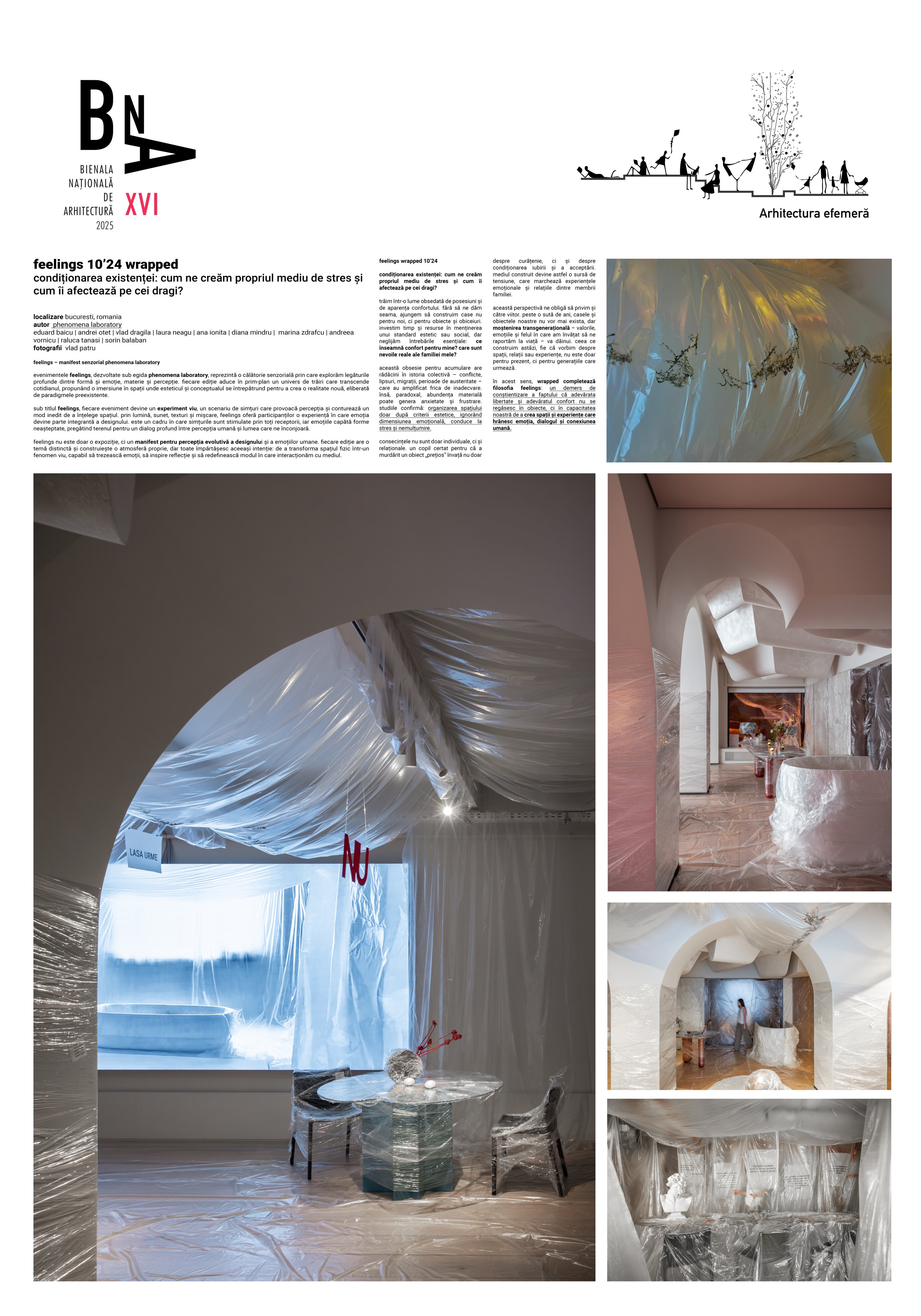 sub titlul feelings, fiecare eveniment devine un experiment viu, un scenariu de simțuri care provoacă percepția și conturează un mod inedit de a înțelege spațiul. prin lumină, sunet, texturi și mișcare, feelings oferă participanților o experiență în care emoția devine parte integrantă a designului. este un cadru în care simțurile sunt stimulate prin toți receptorii, iar emoțiile capătă forme neașteptate, pregătind terenul pentru un dialog profund între percepția umană și lumea care ne înconjoară.