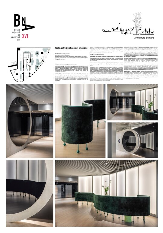 expoziția shapes of emotions reunește obiecte arhitecturale dedicate, încărcate cu simboluri, metafore și teme recurente precum timpul, memoria, relația dintre om și mediu, trăirea ca formă de cunoaștere. aceste obiecte devin catalizatori de stare, purtători de emoție, amintiri vii, extensii ale sinelui.