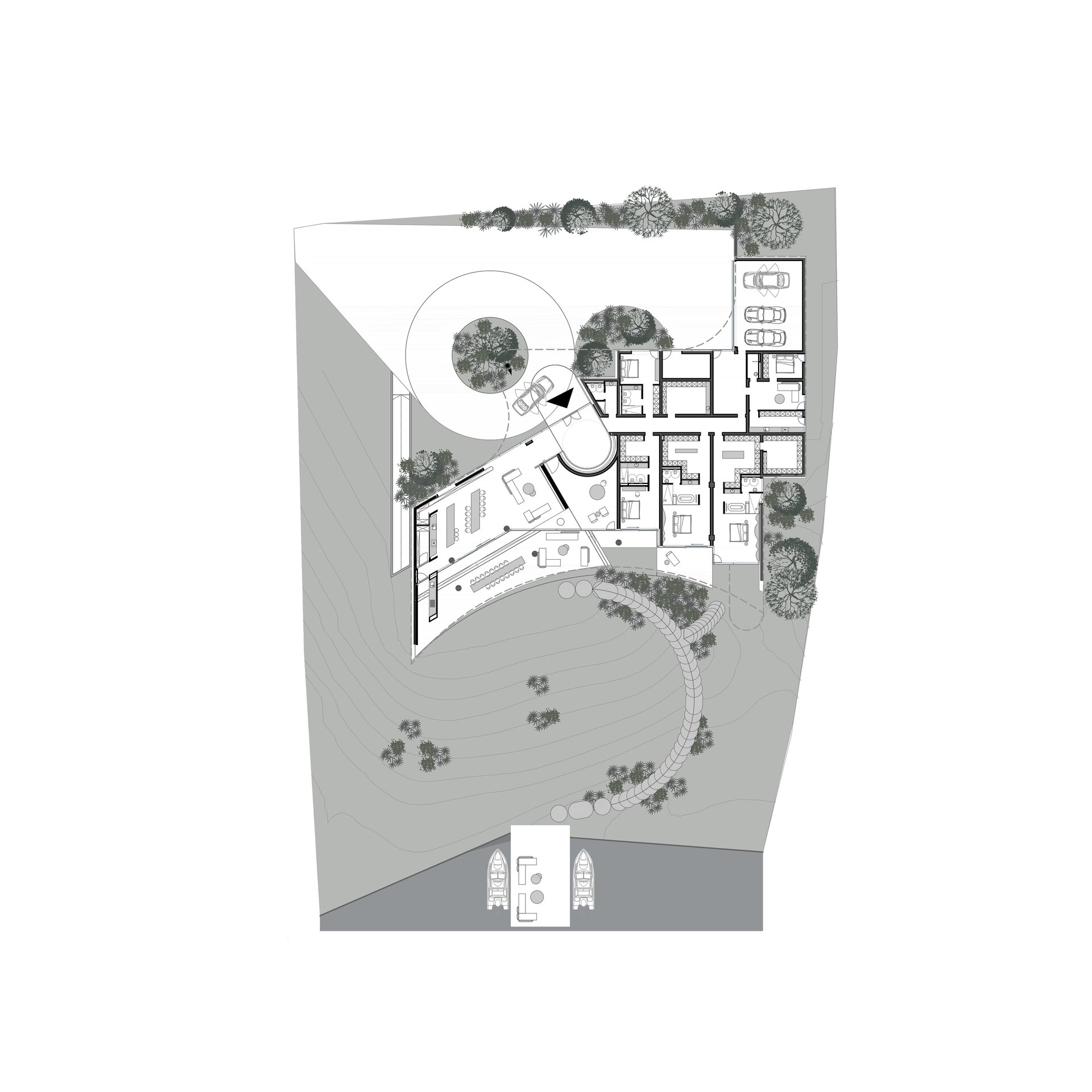 lago da lua îmbrățișează această dualitate prin forme, materiale și atmosferă. volumele solide din piatră evocă forța pământului, în timp ce transparența sticlei și căldura lemnului aduc lejeritate și apropiere de natură. ferestrele ample deschid interiorul către lumină și apă, captând reflexiile soarelui ziua și ale lunii noaptea. astfel, arhitectura devine o oglindă a lacului, un spațiu care respiră odată cu ritmurile naturii.