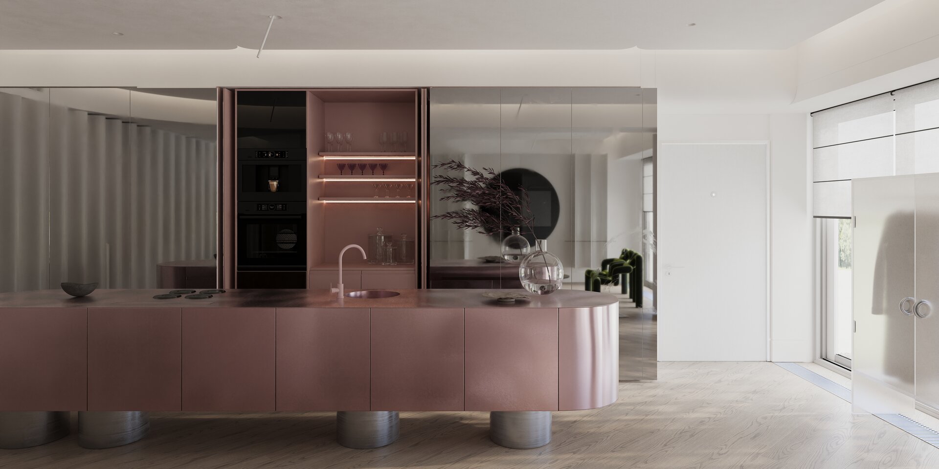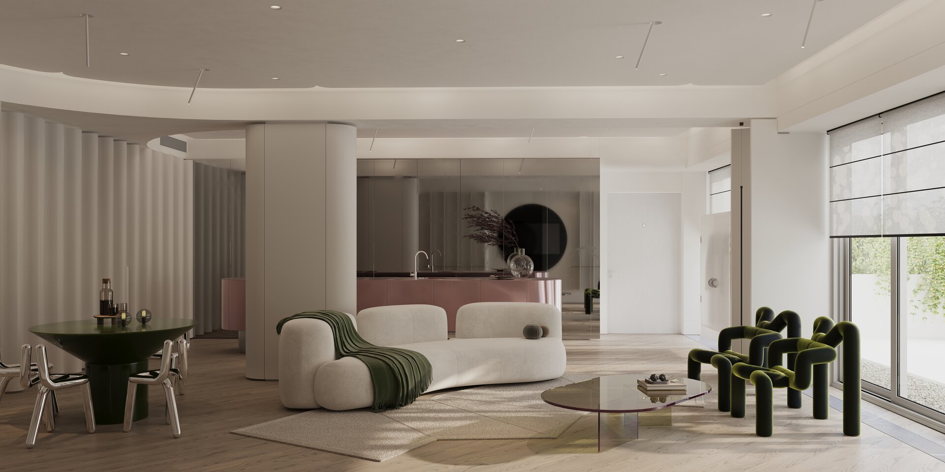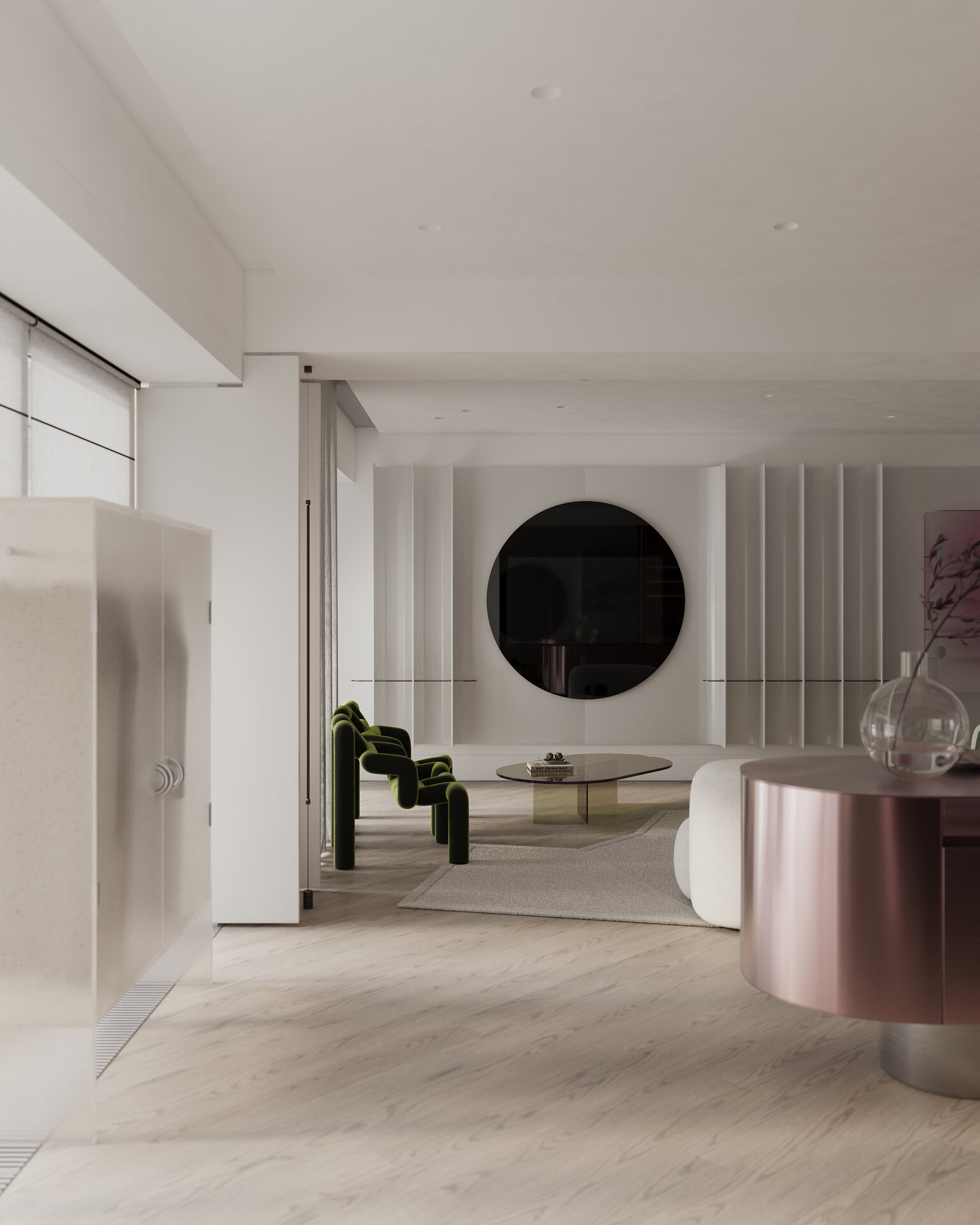 în acest context, conceptul dancing with time definește apartamentul de trei camere ca pe o experiență vie, unde timpul nu este o măsură rigidă, ci un flux care se pliază pe ritmul locuitorilor. fiecare detaliu, fiecare material, fiecare reflexie este parte dintr-o coregrafie subtilă, o împletire a mișcării și a repaosului, a clipelor de intensitate cu cele de liniște interioară. apartamentul devine un partener invizibil care însoțește, modelează și oglindește viața de zi cu zi.