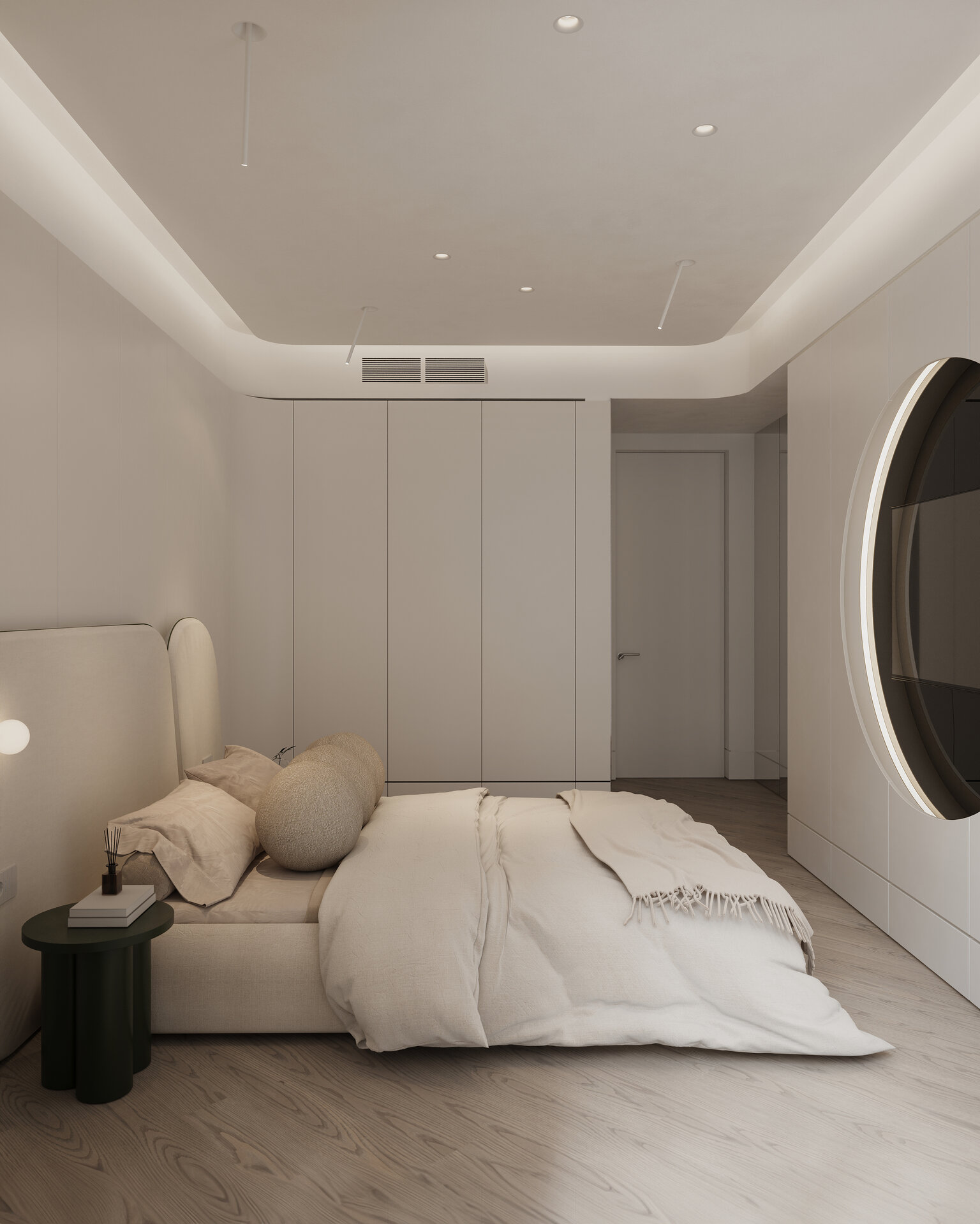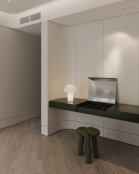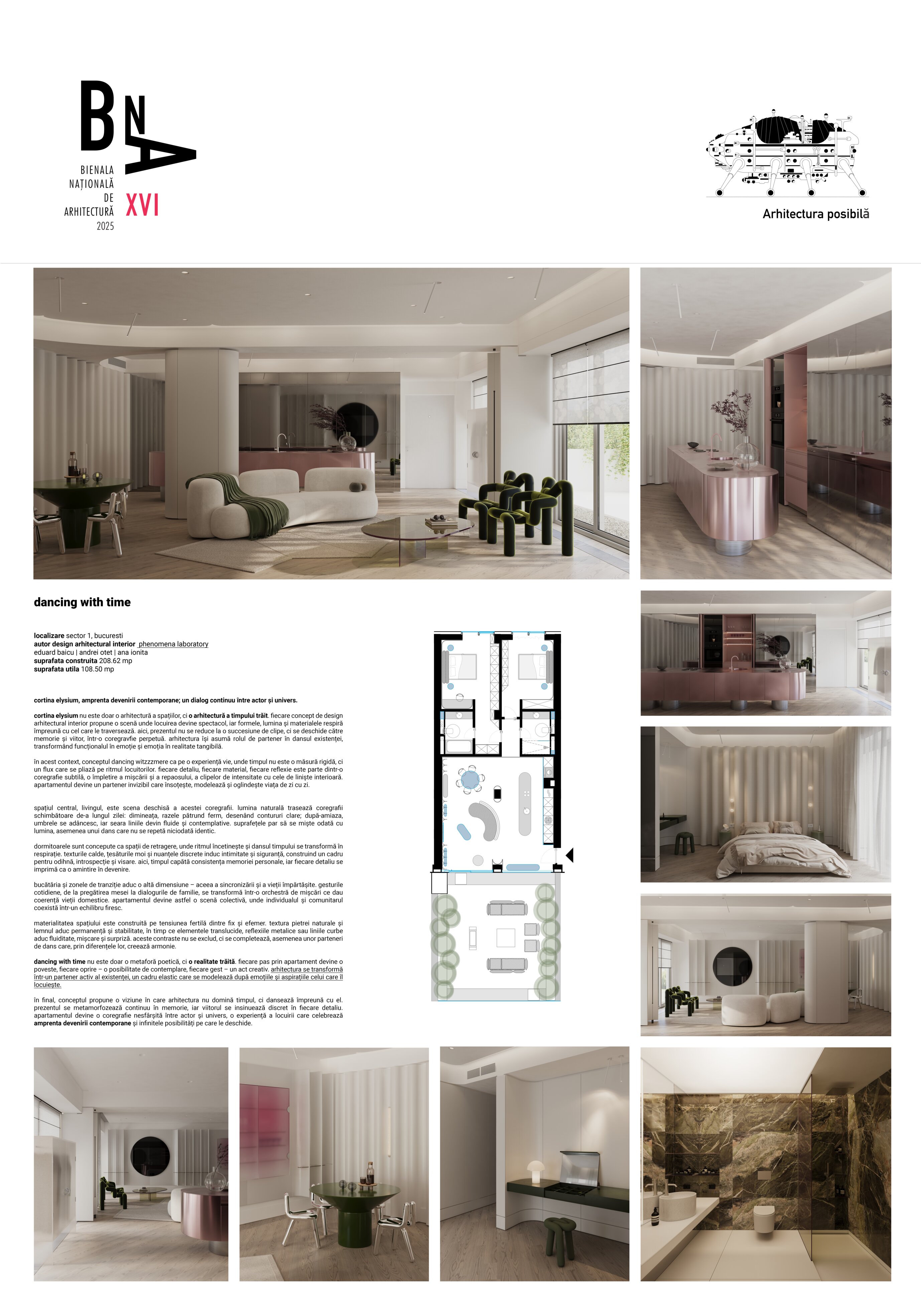 în final, conceptul propune o viziune în care arhitectura nu domină timpul, ci dansează împreună cu el. prezentul se metamorfozează continuu în memorie, iar viitorul se insinuează discret în fiecare detaliu. apartamentul devine o coregrafie nesfârșită între actor și univers, o experiență a locuirii care celebrează amprenta devenirii contemporane și infinitele posibilități pe care le deschide.