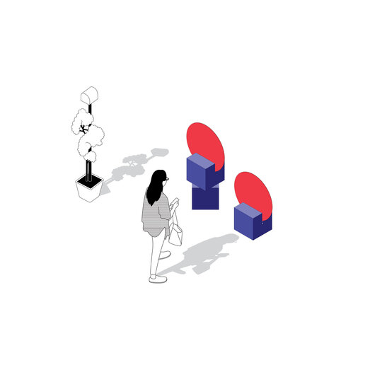 Inspirată de identitatea vizuală ARCUB, soluția transformă elementele bidimensionale în structuri volumetrice, păstrând însă amprenta lor planimetrică.