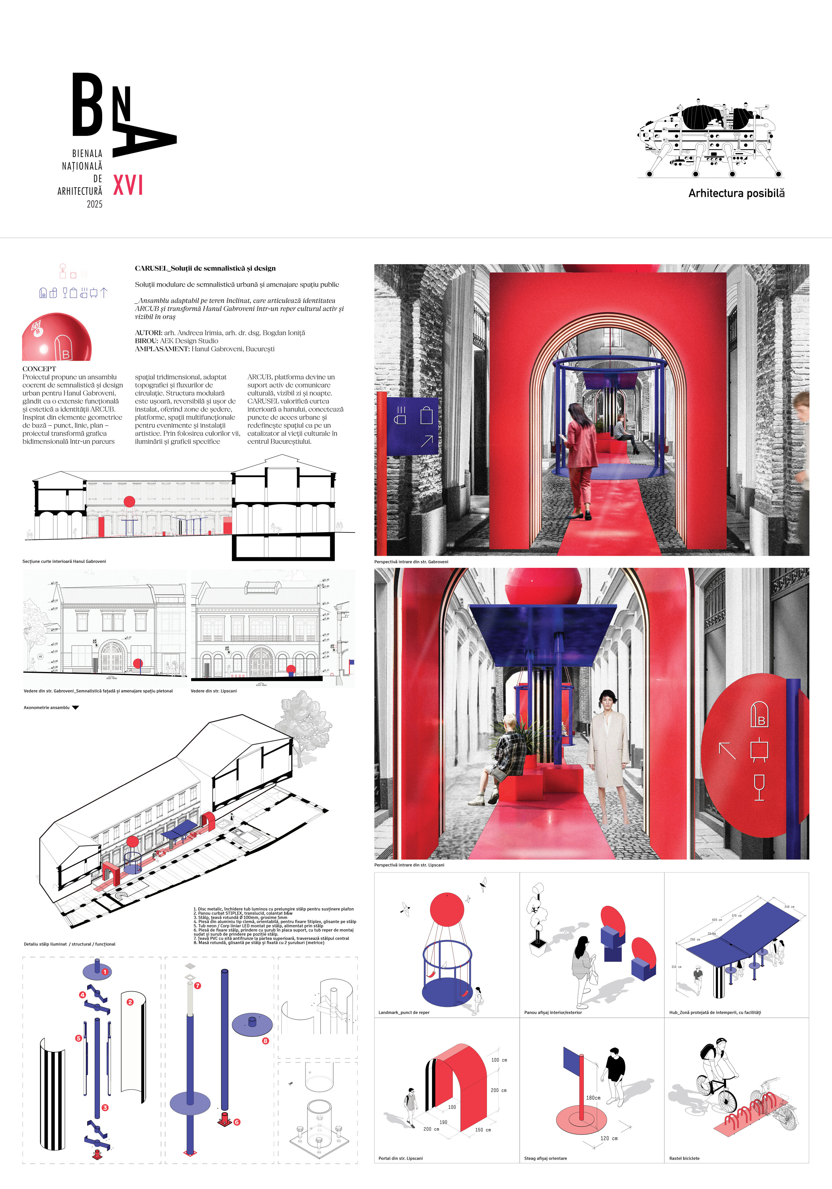 Proiectul CARUSEL propune un set coerent de soluții de semnalistică și design dedicate spațiului cultural Hanul Gabroveni, integrând elemente contemporane în dialog cu identitatea istorică a clădirii.
