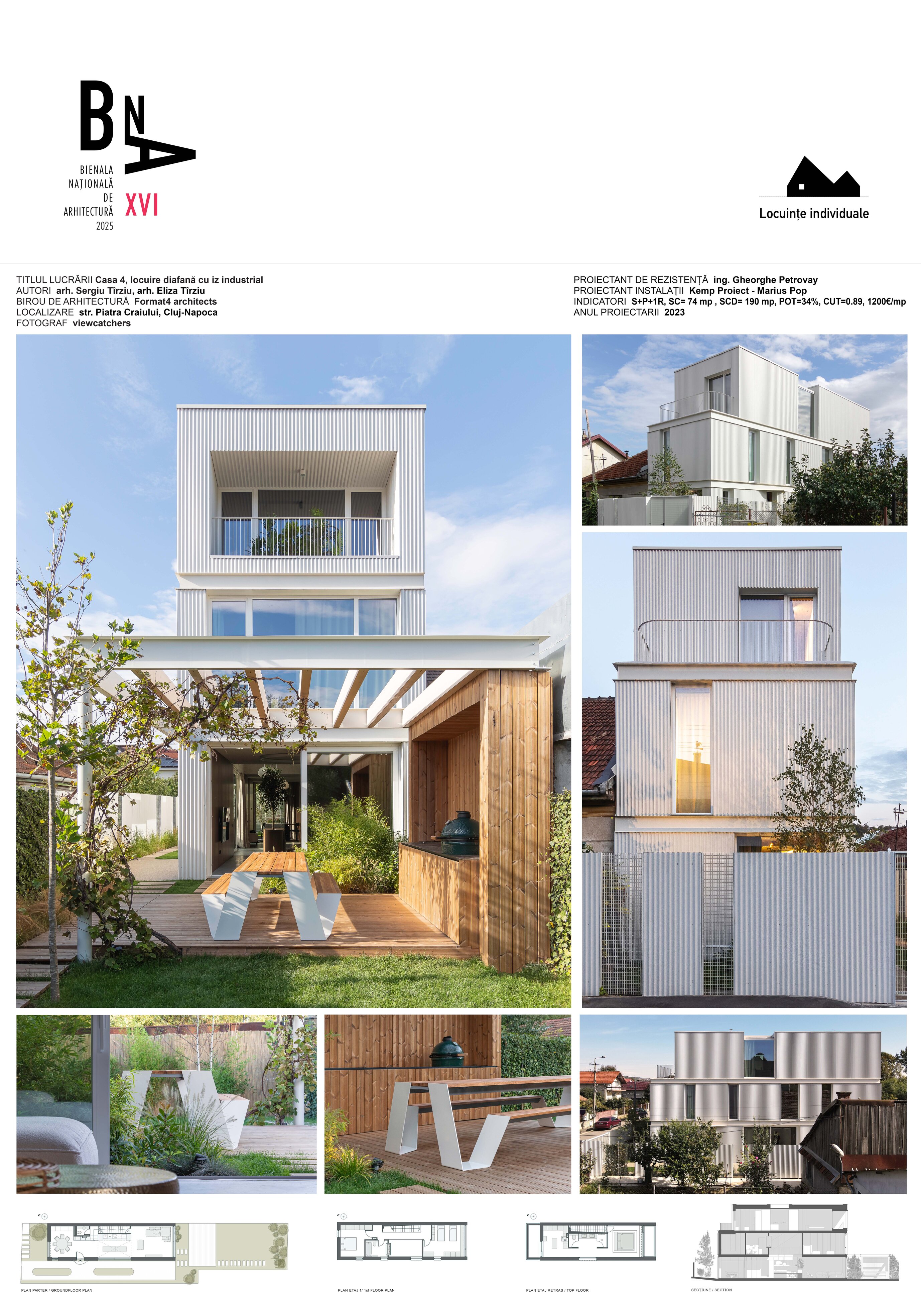 Casa 4 se află în apropierea străzii Metalului, zonă care face trecerea dintre o zonă industrială și o zonă rezidențială în partea nordică a orașului Cluj Napoca. Parcela de 240 mp are o formă alungită, cu front îngust și este mărginită de două locuințe și două ateliere . Proiectul a presupus extinderea și etajarea clădirii existente , care să genereze o arhitectură integrată, care să exprime și să preia din formele, memoria și istoria locului în curs de restructurare. Casa este structurată pe trei niveluri, registre bine exprimate și în arhitectura exterioară.