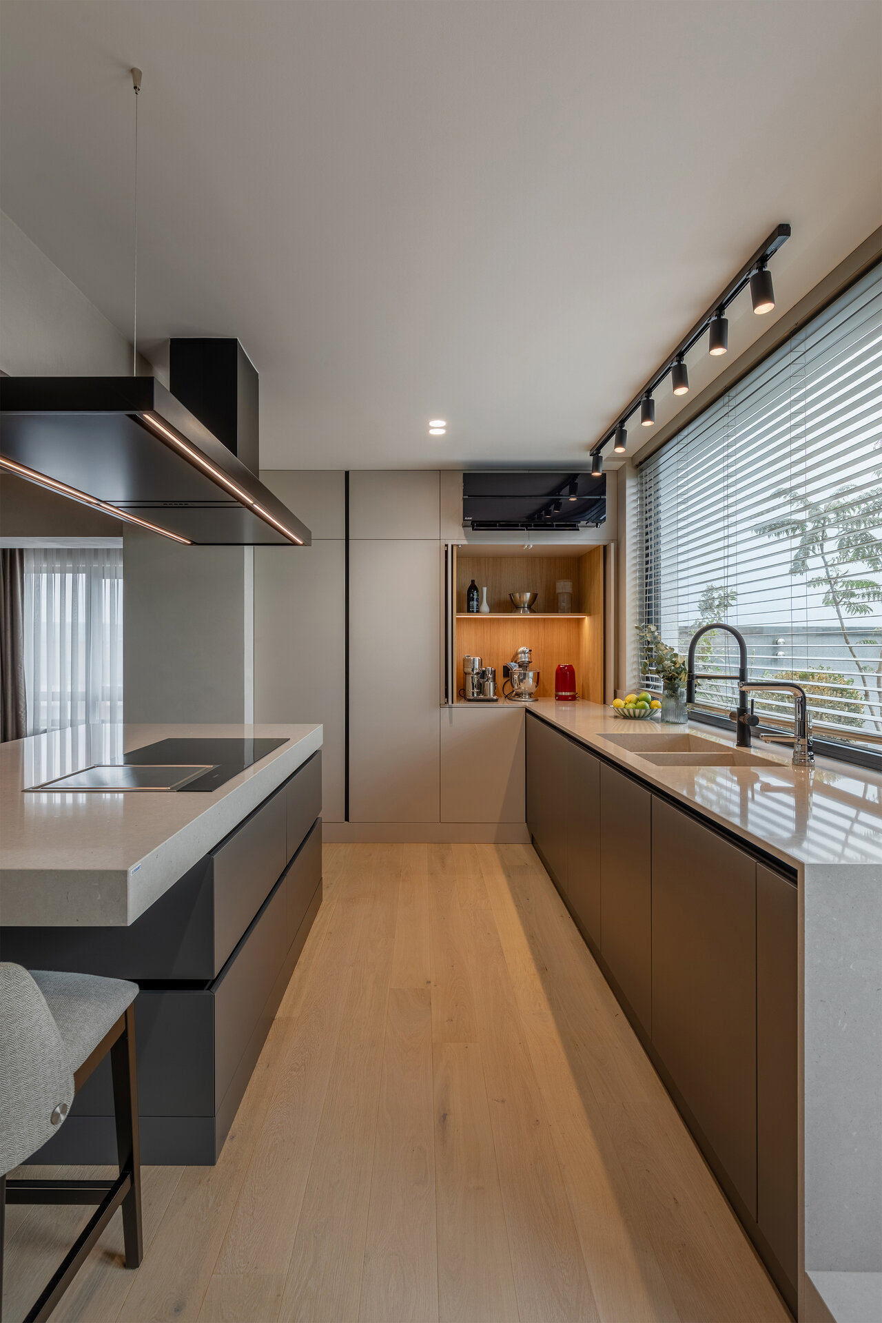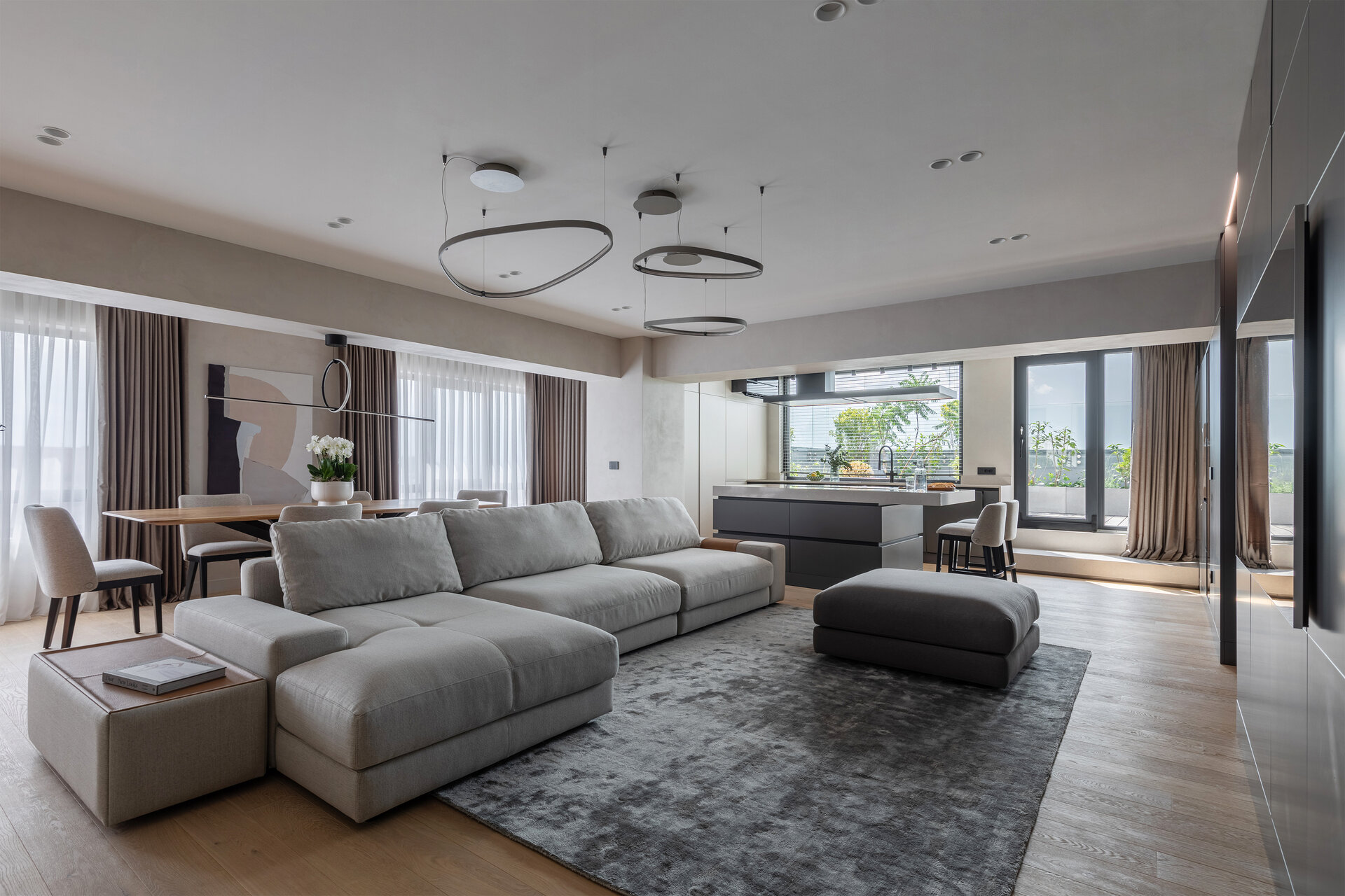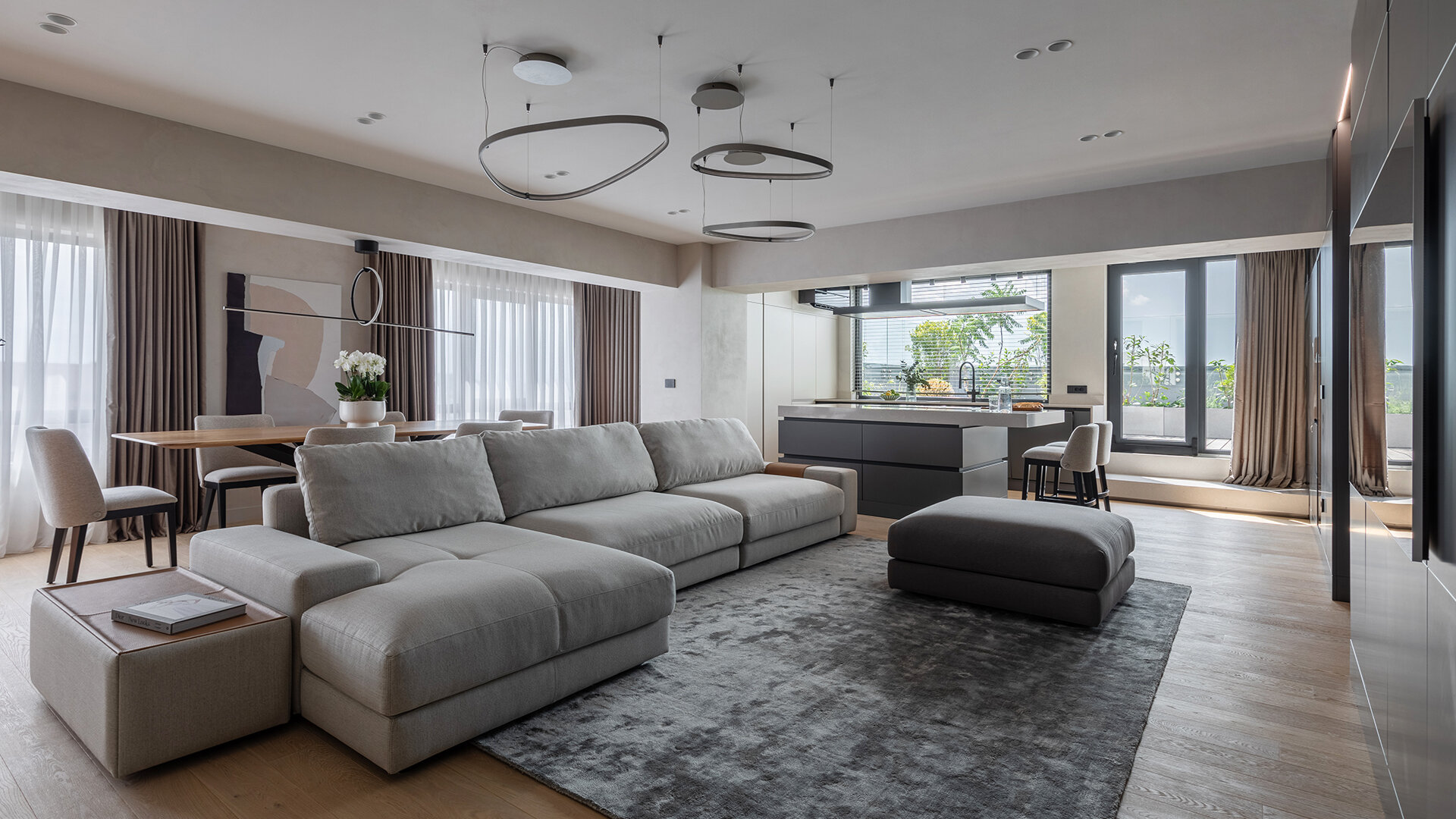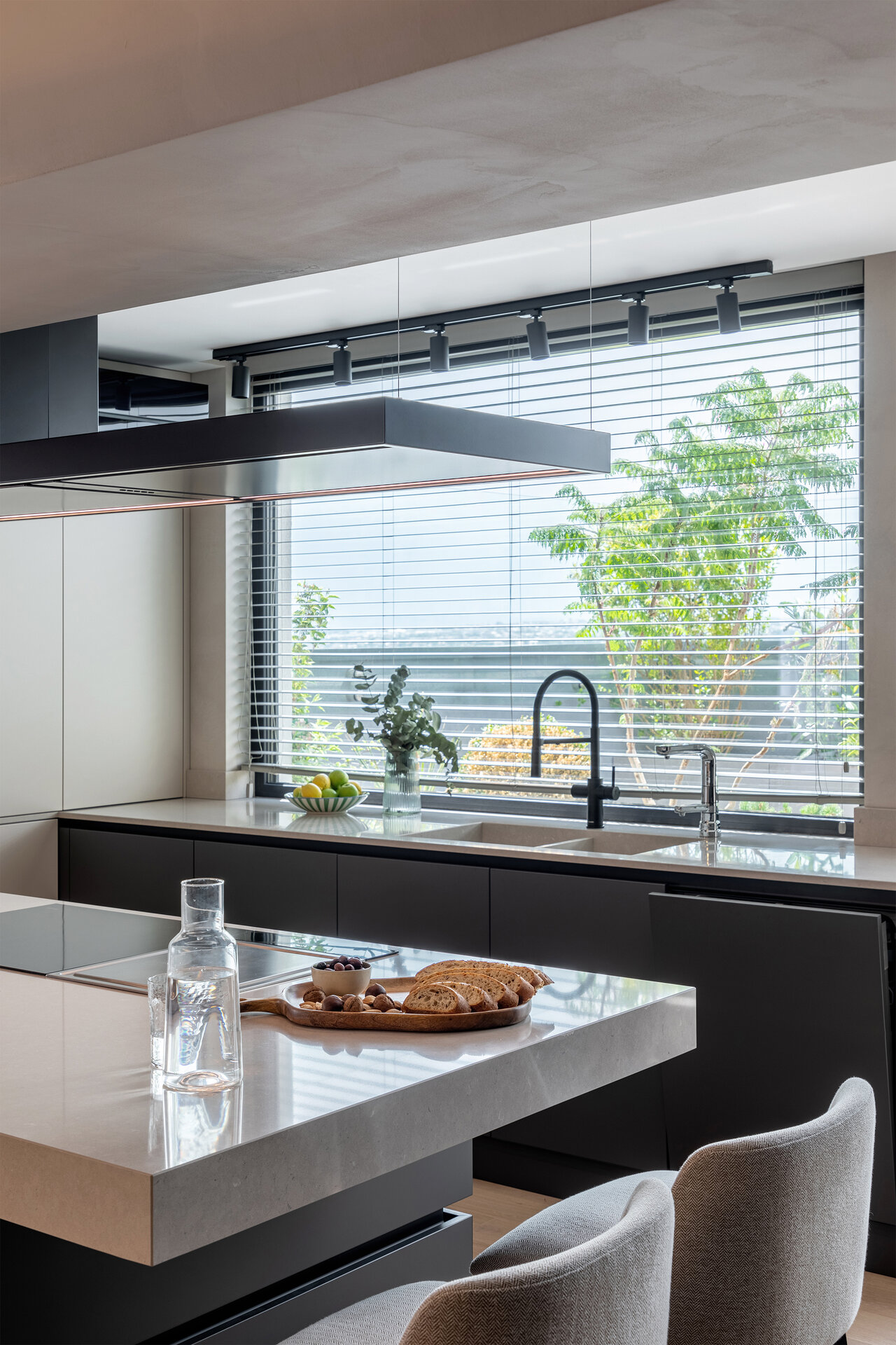 Acest proiect are ca punct de plecare un spațiu existent, a cărui compartimentare am ales să nu o modificăm, ci să căutăm o modalitate de a conecta și unifica spațiile interioare. Ne-am folosit de o serie de gesturi estetice și de o gândire de ansamblu, pornind de la scara macro, până la detalii, pentru a defini un interior curat și luminos, armonios cromatic, cu texturi care se completează și accente care creează dinamică.