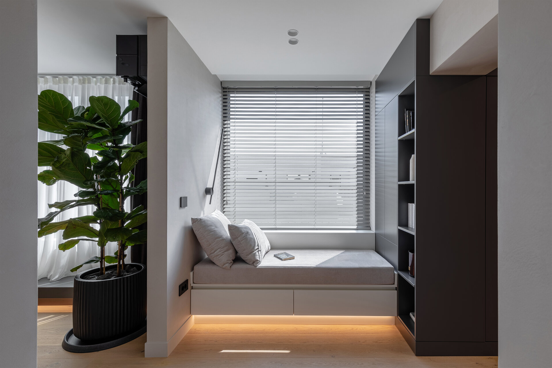 O atenție deosebită am acordat-o luminii, un personaj cheie în dublă ipostază. Spațiul se bucură din plin de lumina naturală și jocul ei pe timpul zilei, ajutat de modul în care l-am gândit și modelat. Seara, începe seria de scenarii în care corpurile de iluminat dau viață și sculptează spațiul, realizeazând tranziția de la atmosfera dinamică la cea intimă, de la accentele clare de lumină la zonele fine și difuze.