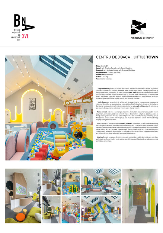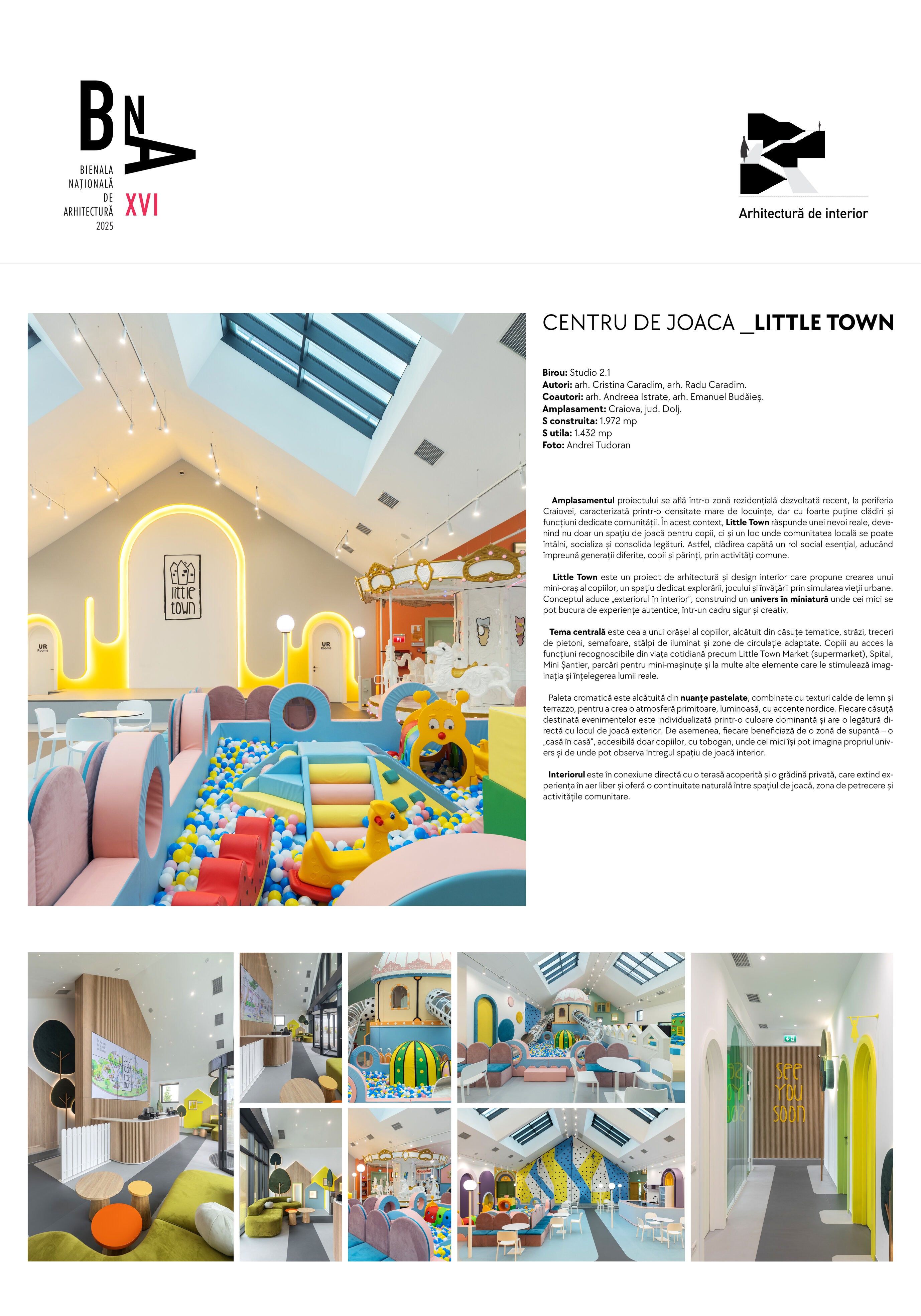 Little Town este un proiect de arhitectură și design interior care propune crearea unui mini-oraș al copiilor, un spațiu dedicat explorării, jocului și învățării prin simularea vieții urbane. Conceptul aduce „exteriorul în interior”, construind un univers în miniatură unde cei mici se pot bucura de experiențe autentice, într-un cadru sigur și creativ.