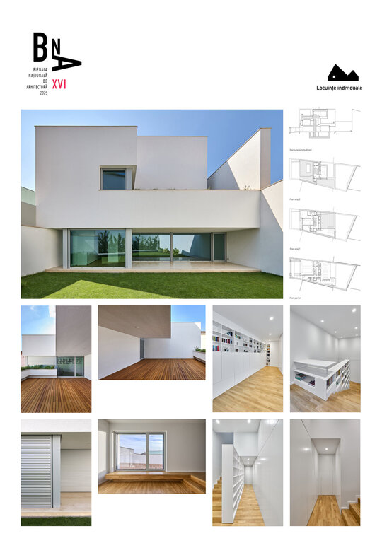 Problema a fost aceea de a compatibiliza constrângerile parcelei cu exigențele unui program funcțional care, deși pentru o familie de două persoane, a devenit în final mare pentru dimensiunile ei, și de a asigura intimitatea spațiilor în raport cu vecinătățile actuale și, în măsura posibilului, viitoare.