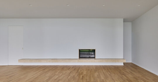 Expresia cromatică este în mod voit restrânsă, singurele materialități acuzate fiind cele naturale ale lemnului (parchet, deck) și travertinului (pardoseli, glafuri) și, ca un complement tehnologic, suprafețele metalice ale tâmplăriei exterioare și elementelor de protecție solară. Interiorul este dominat de albul general al pereților, al plafoanelor și al mobilierul fix – dulapuri înzidite, biblioteci, uși filomuro, placări ale pereților –, un fond neutru căruia, prin texturi și culoare, mobilierul și obiectele decorative ale locatarilor îi vor da viață.