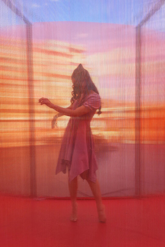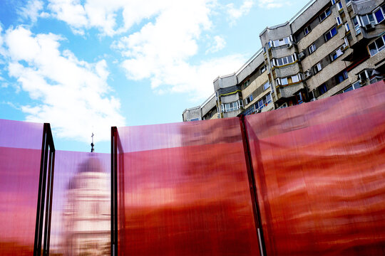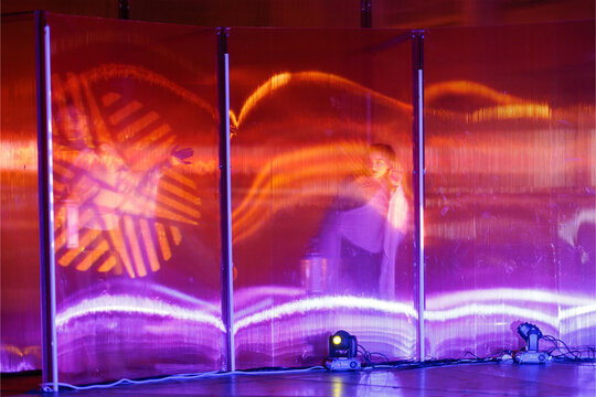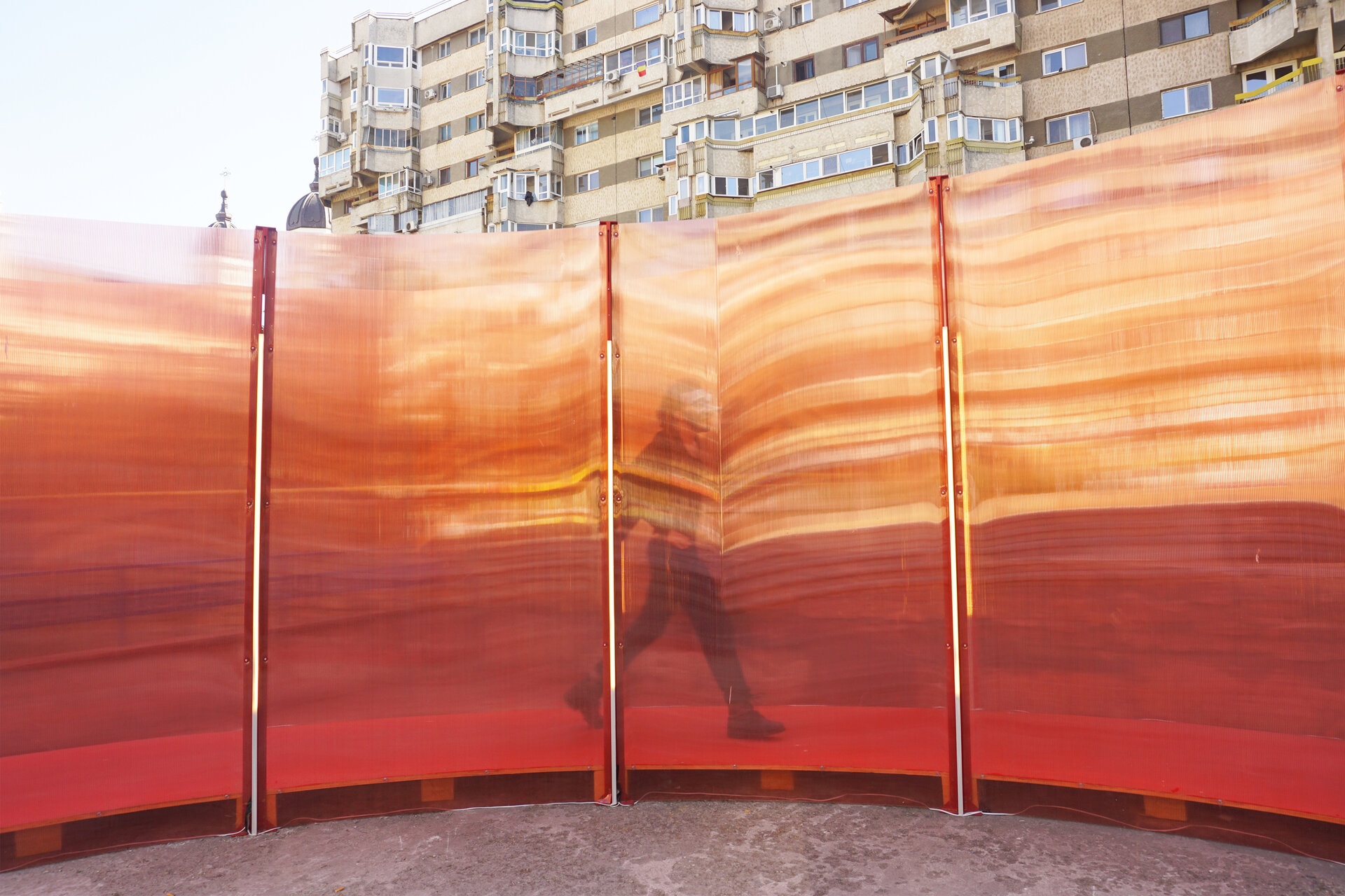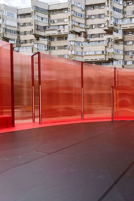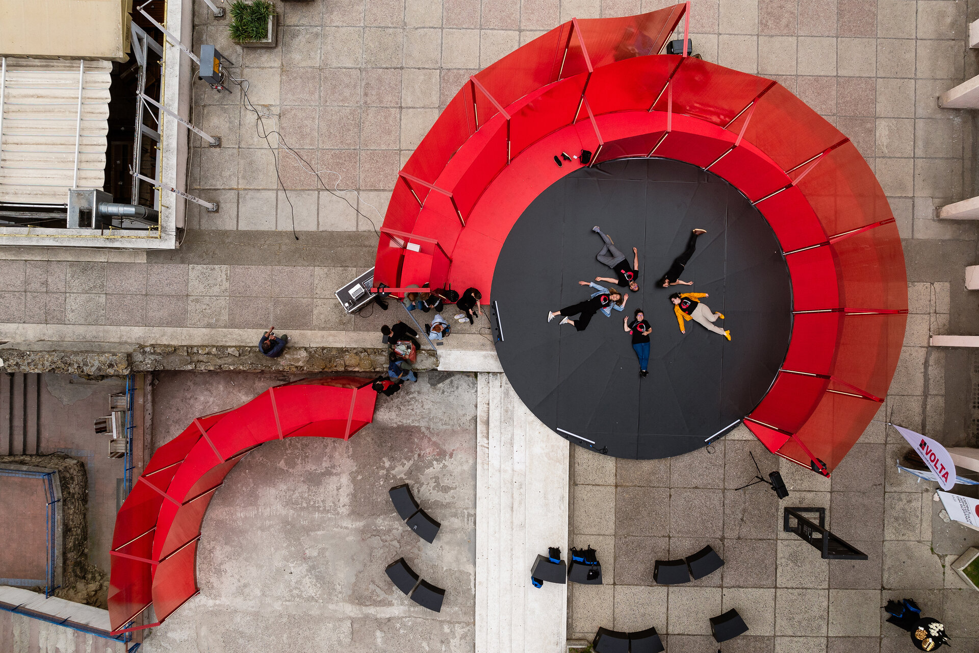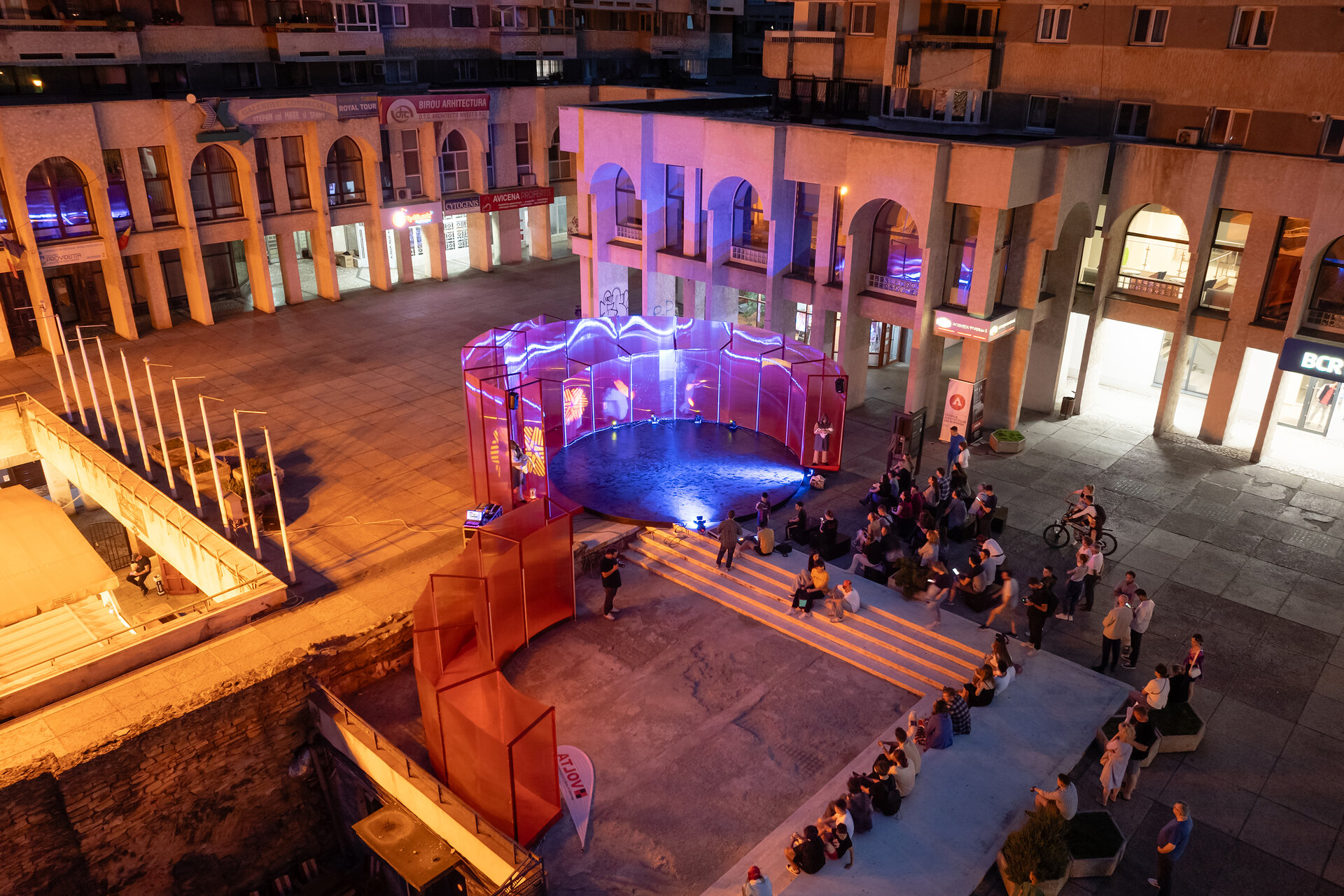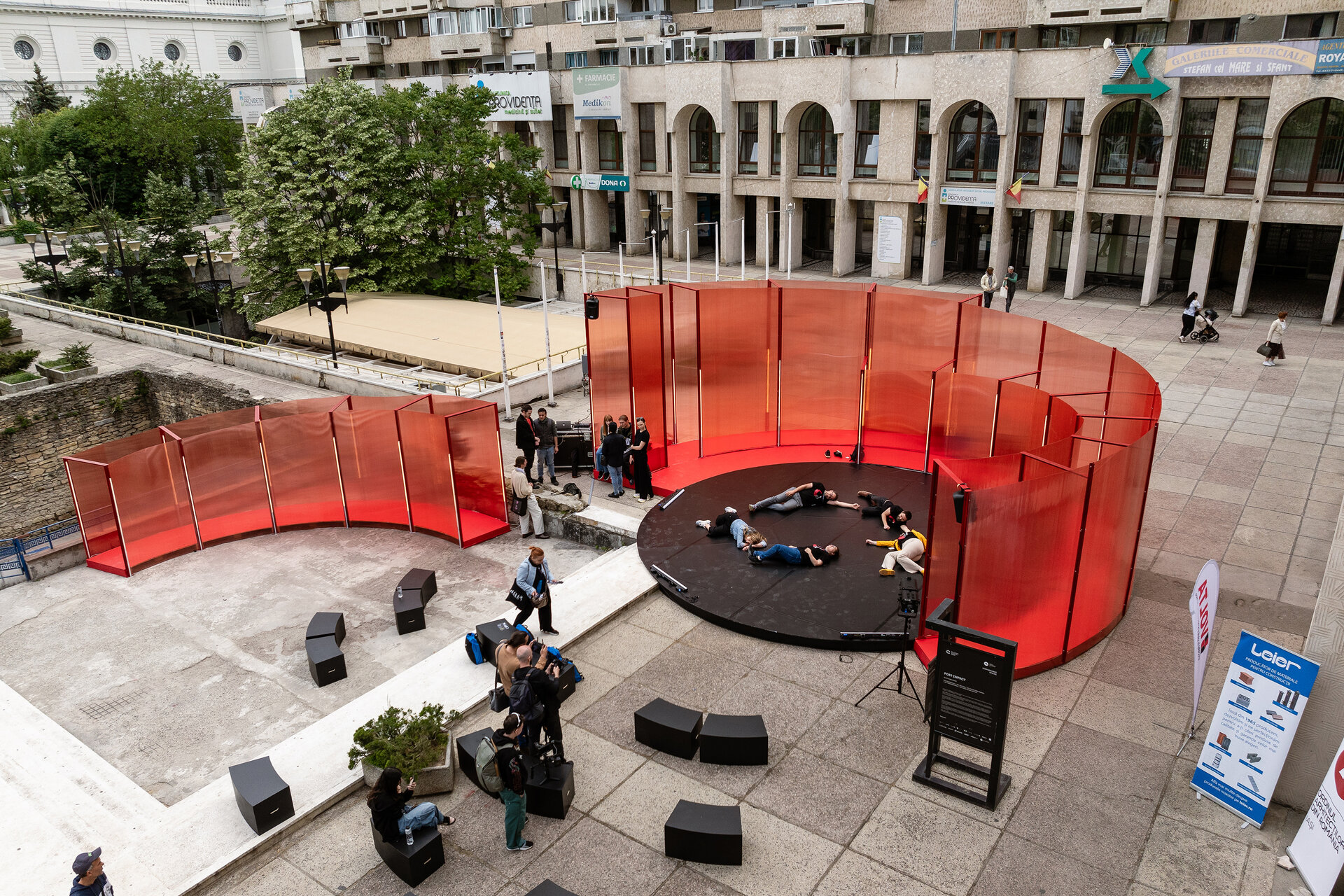 Propunerea reprezintă o stilizare a craterului cometei și a undelor de șoc. Scena, locul de impact, este elementul în jurul căruia se modifică planeitatea solului și se ridică organic cele două culoare roșii care o îmbrățișează, alternând într-o mișcare de creștere și descreștere. Cadrul, compus din scena amplă, circulară (7.5m diametru) și toate elementele dispuse radial, are ca scop conturarea unei prezențe puternice, expresive, cu impact și vizibilitate către publicul larg.