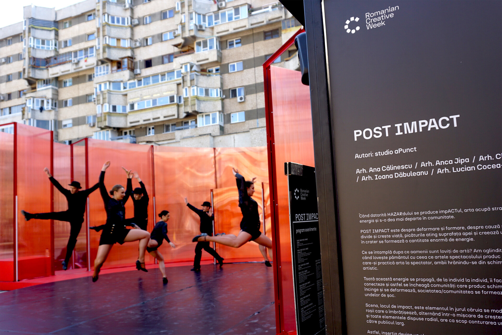 Pe scena POST IMPACT au performat studenți ai facultăților de teatru și coregrafie din țară, oamenii din comunitate au experimentat spațiul atât pe timp de zi cât și noaptea, parcurgându-l sau dansând fără ca (aproape) nimeni să-i vadă, iar copiii au alergat, s-au jucat și au dansat, însuflețind locul în cele două săptămâni de Romanian Creative Week.
