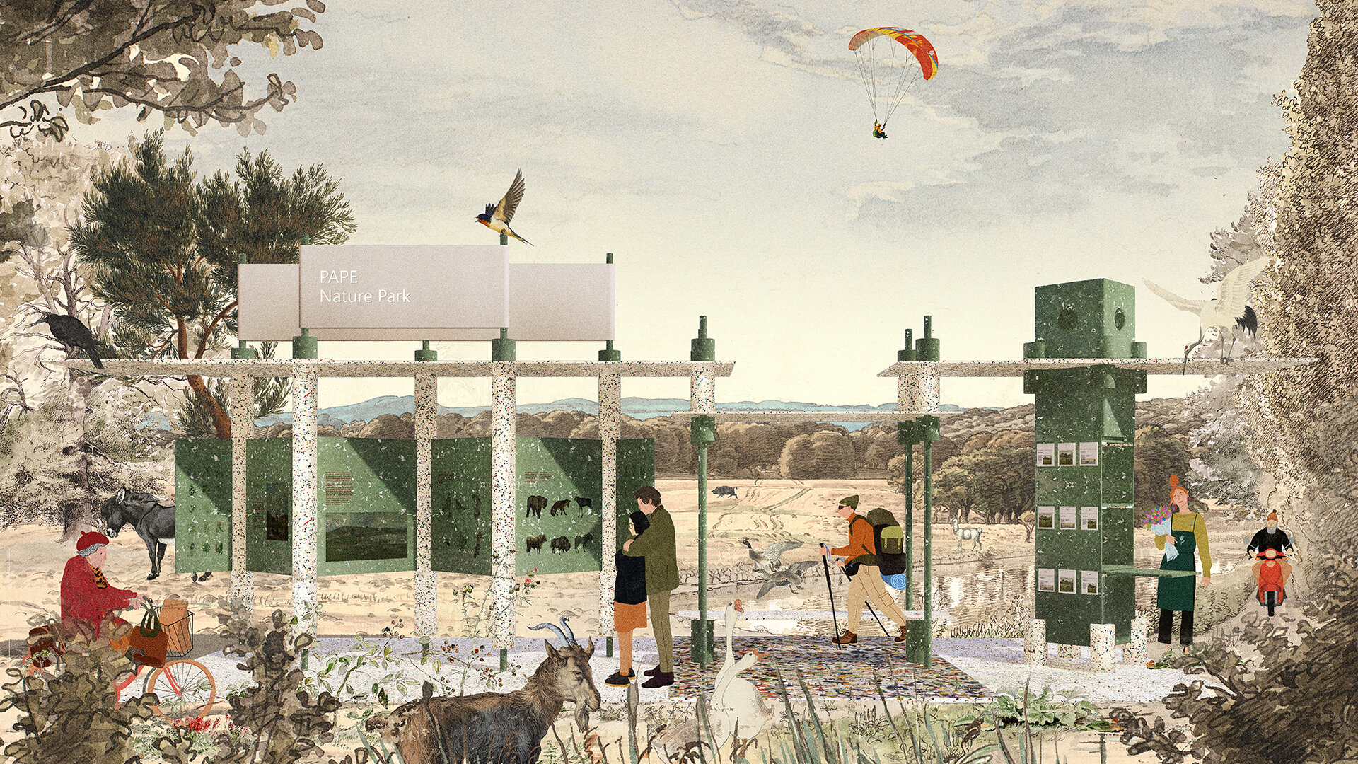 Proiectul Polyvert a obținut Mențiune onorifică în cadrul concursului internațional de arhitectură Pape Info Point, 2025, pentru a crea un punct de informare destinat Parcului Natural Pape din Letonia, care să sprijine ecoturismul și conservarea, integrându-se armonios în peisaj și având un impact minim asupra mediului.
