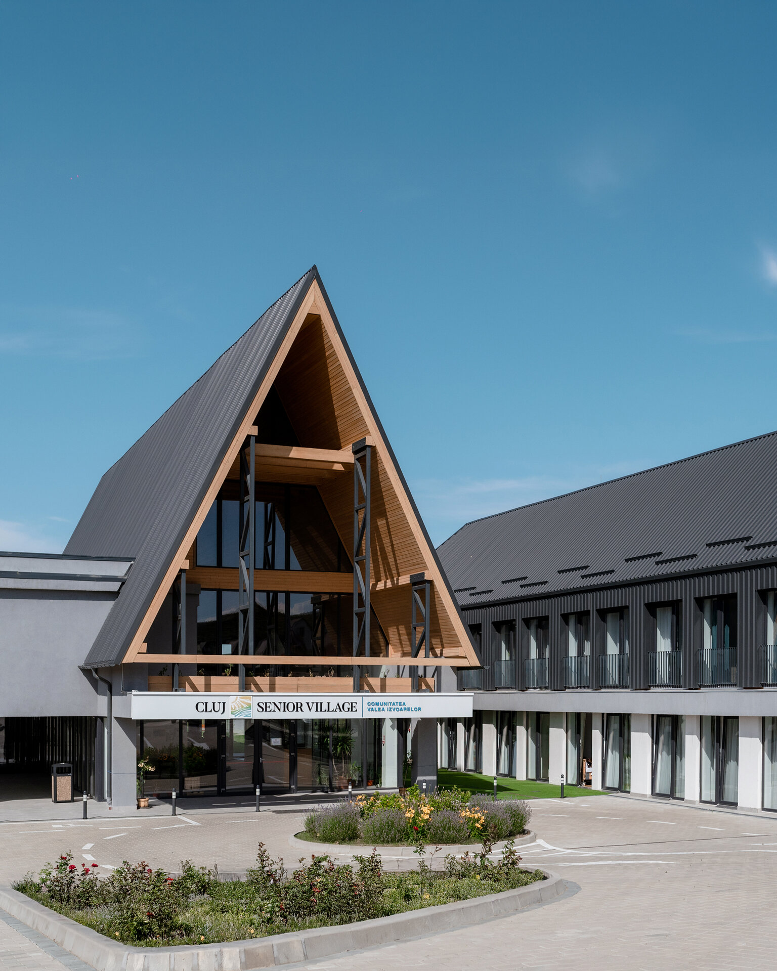 Situat într-un cadru natural generos din Cluj, ansamblul se desfășoară pe un teren de aproximativ 10.800 mp, într-o compoziție clară, aerisită și coerentă. Conceptul pornește de la ideea unei arhitecturi prietenoase, recognoscibile, cu proporții umane și o estetică temperată. Volumetria redusă, acoperișurile tradiționale, texturile minerale ale tencuielii și detaliile din lemn contribuie la integrarea firească în peisajul înconjurător.