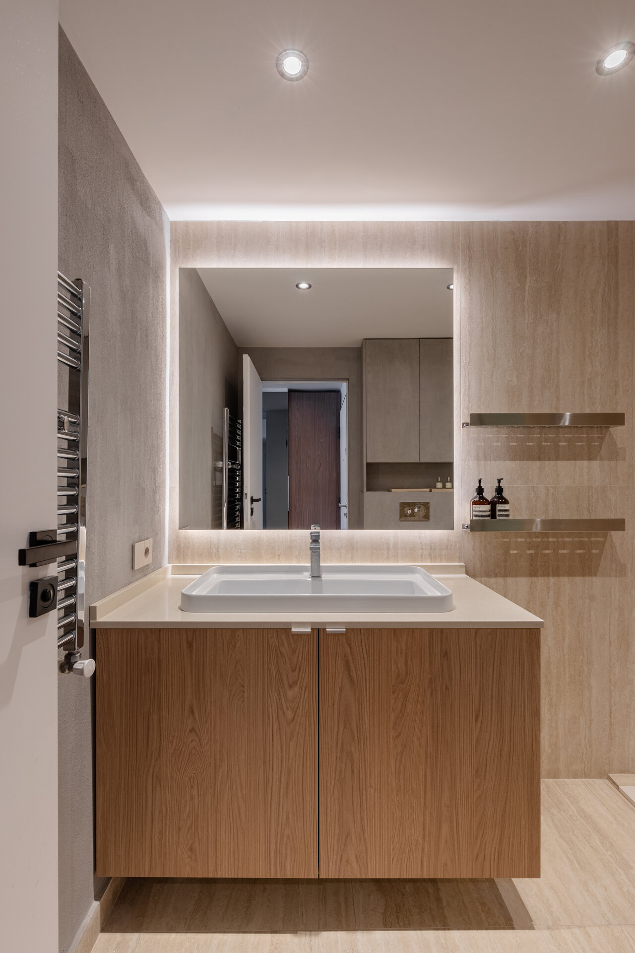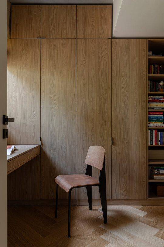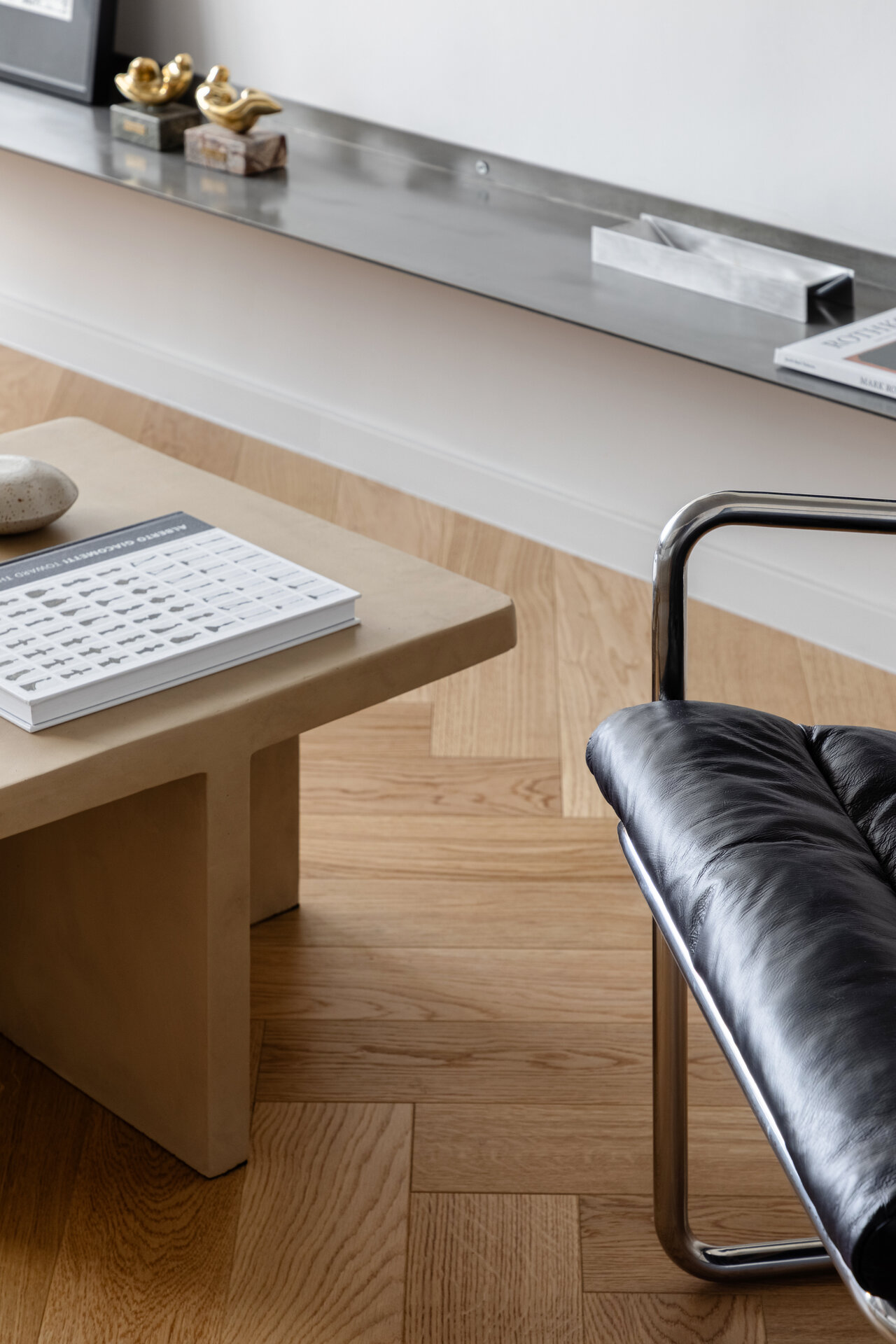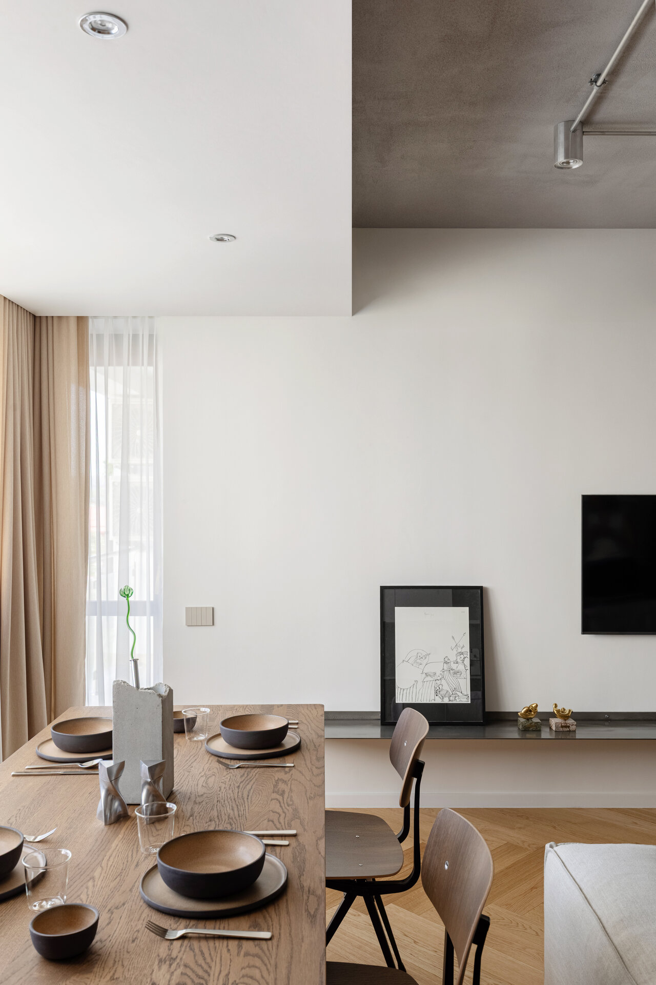 Al doilea punct este descris de influențele japandi, pe care le regăsim punctual inserate în mobilierul custom, generând simplitatea detaliilor. Iar al treilea punct este umbrela sub care cele două puncte de mai sus se adăpostesc: modernismul, care lasă deoparte orice decor inutil. De aici, orice idee a fost supusă acestei judecăți generate de concept, astfel luarea deciziilor a fost simplă, iar rezultatul este unul aliniat atât cu dorințele beneficiarului, cât și cu o estetică simplă, dar cu sens.