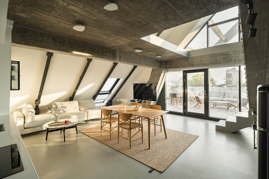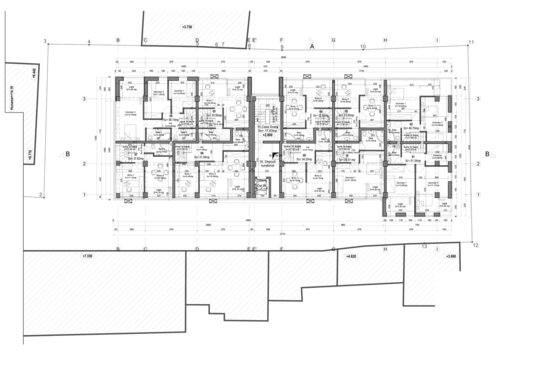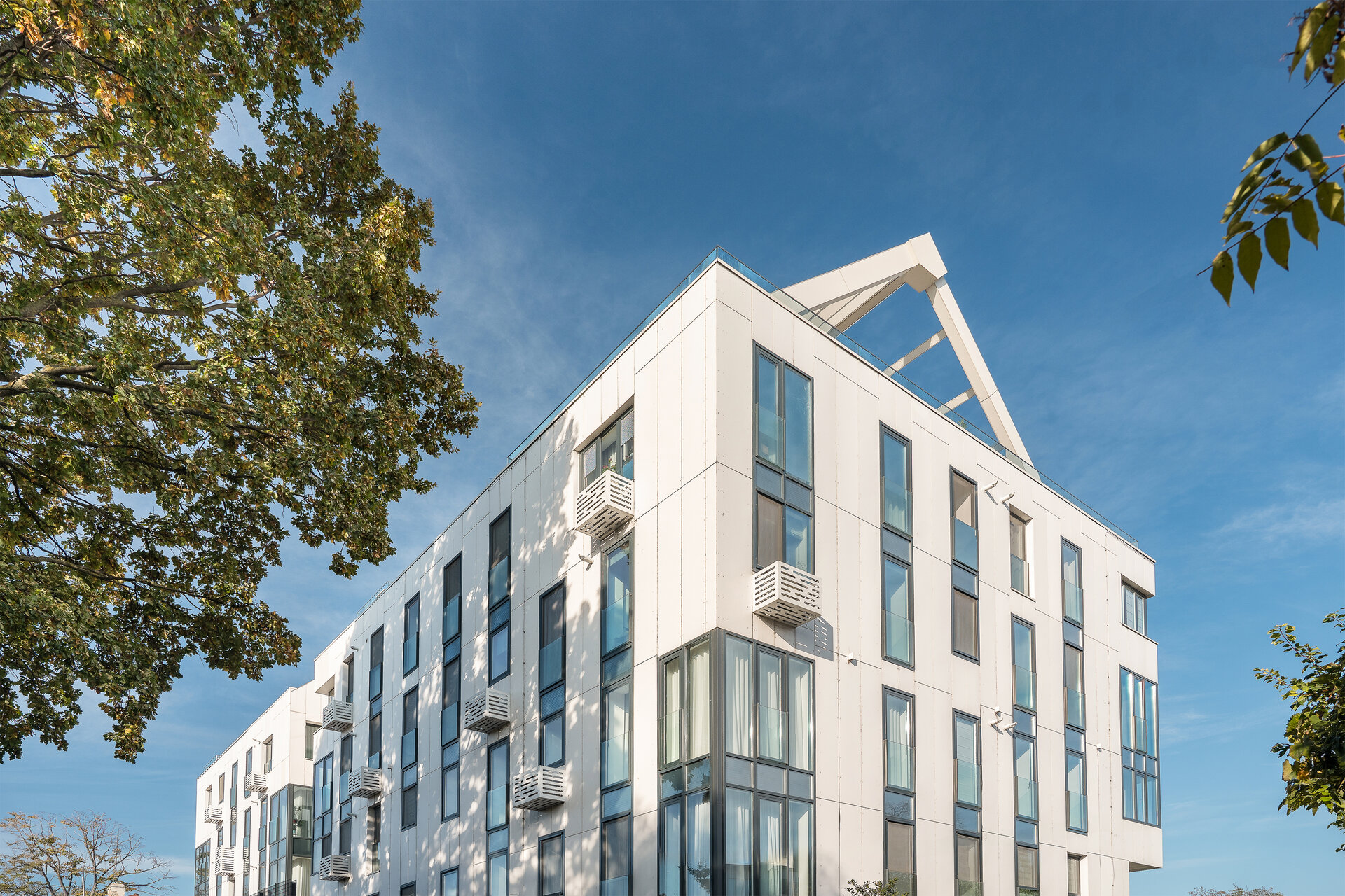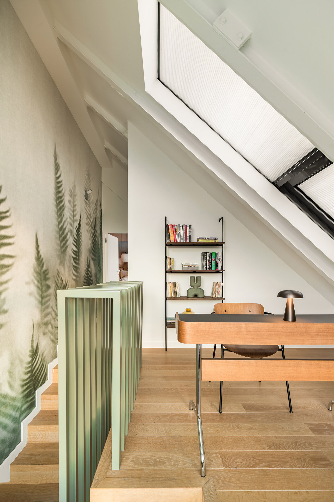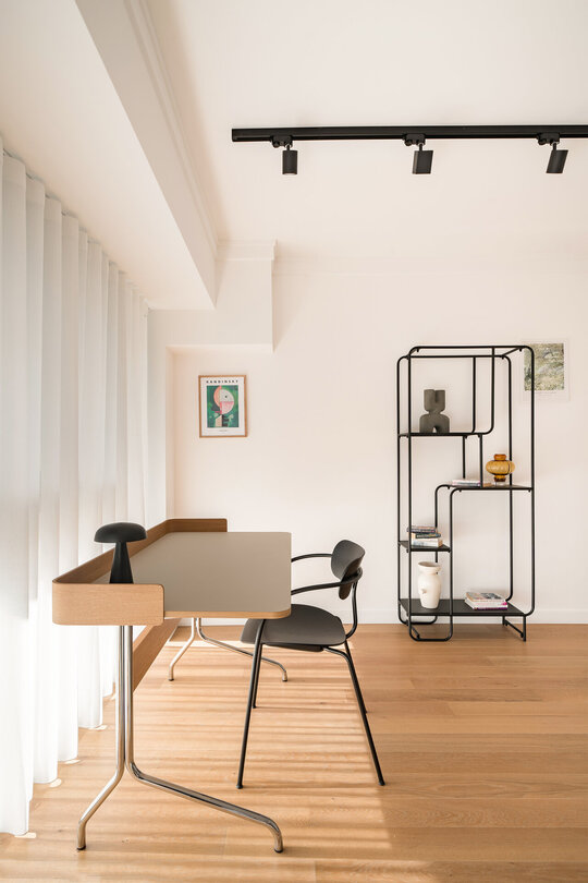 Apartamentele operate în sistem de booking au o amenajare minimală, tavane de beton aparent, pardoseli din rășină epoxidică sau lemn lamelar, placaje de tablă de cupru pe pereți și mobilier din metal.