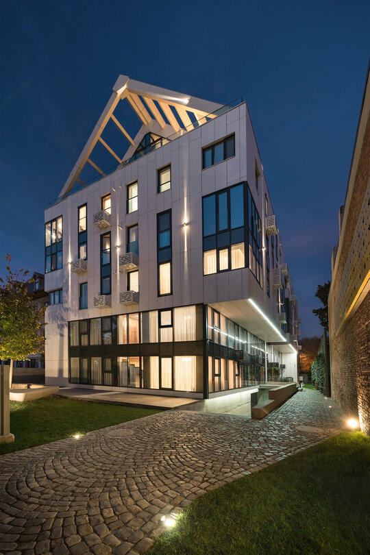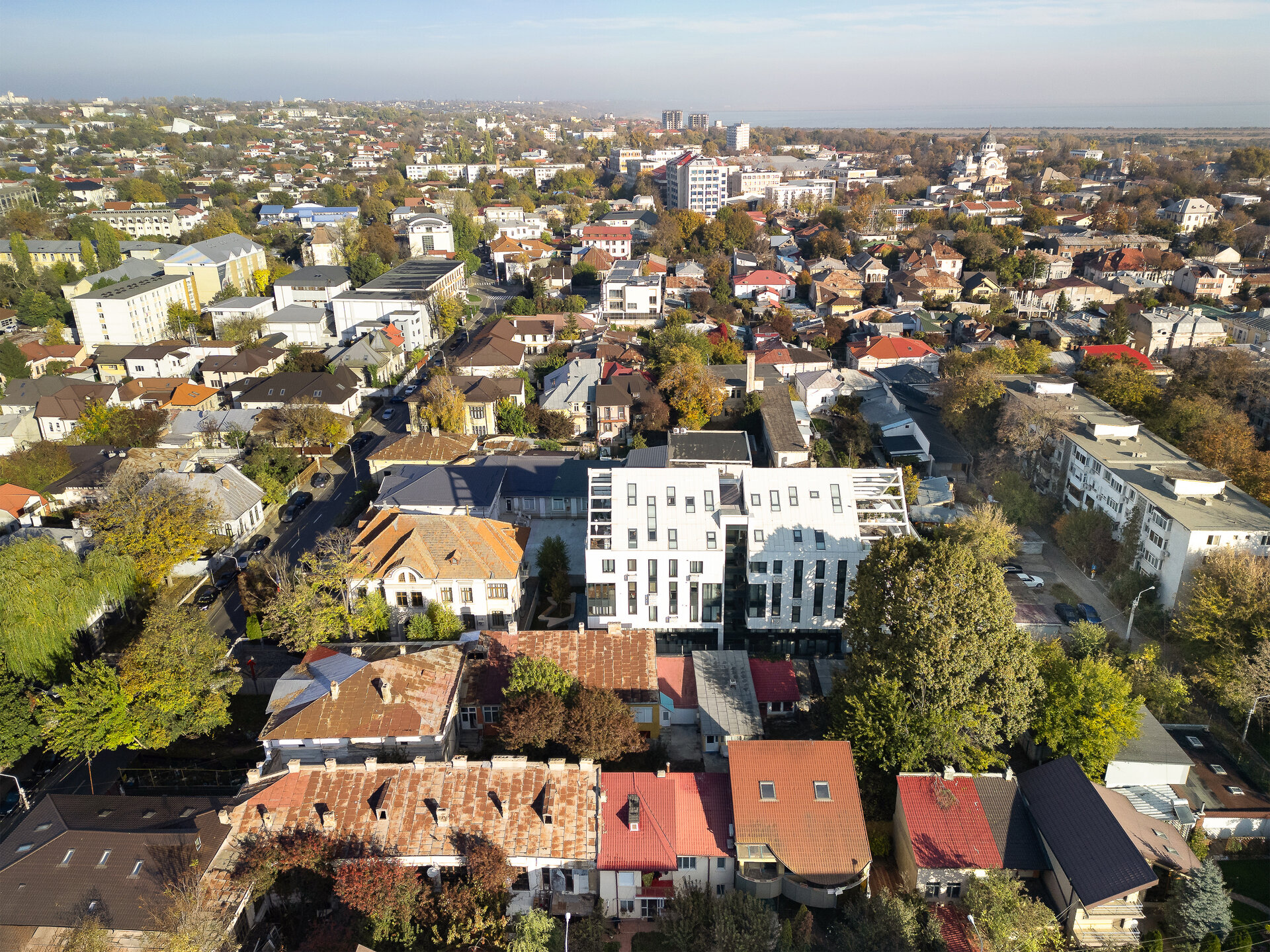 Imobilul propus, prin volumul său compact și cromatică unitară, prin relația între transparență și opacitate, prin acuratețea detaliilor, reprezintă o inserție discretă dar emblematică în zonă. Un semn de „alb” în percepția ochiului fotografic al trecătorului.