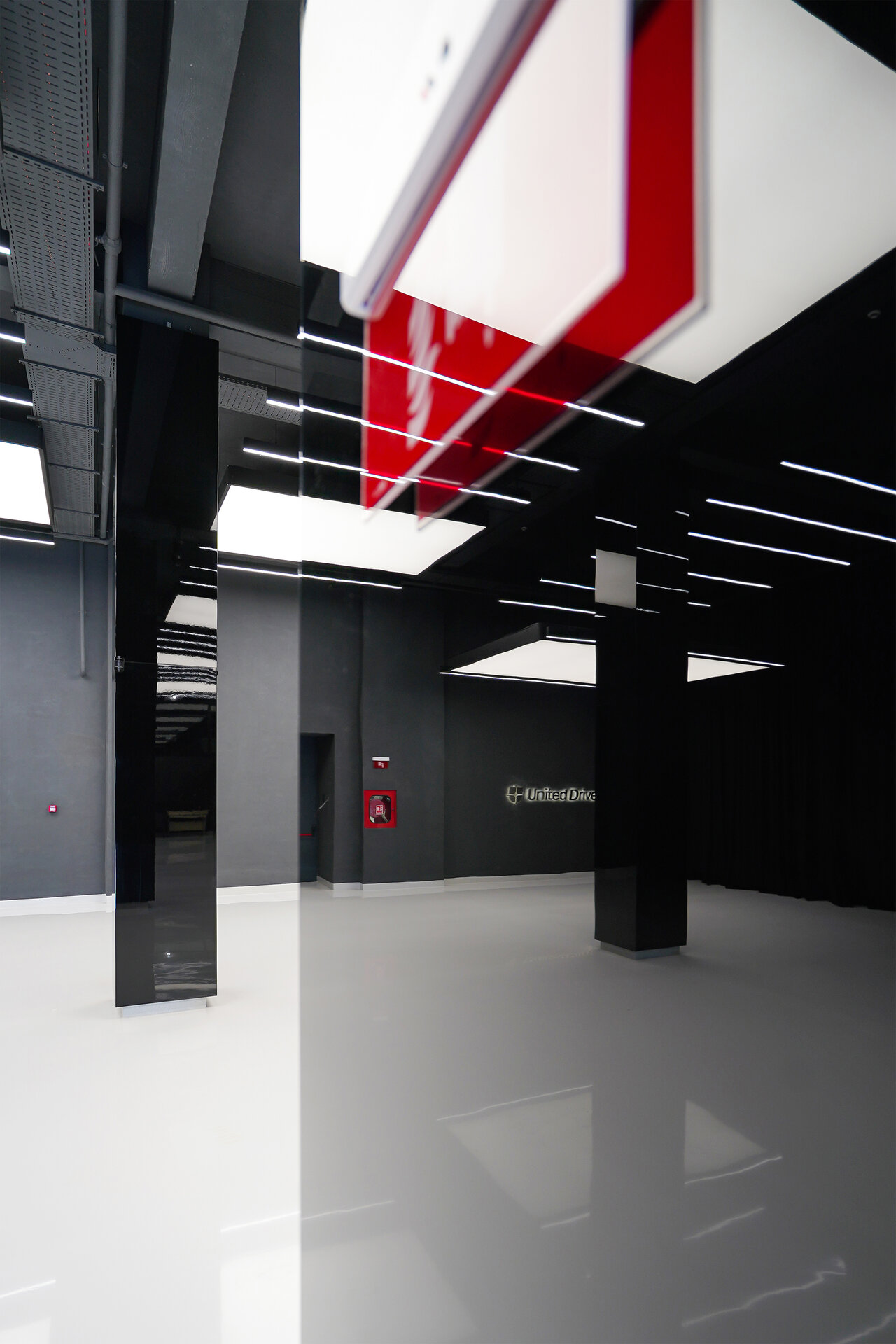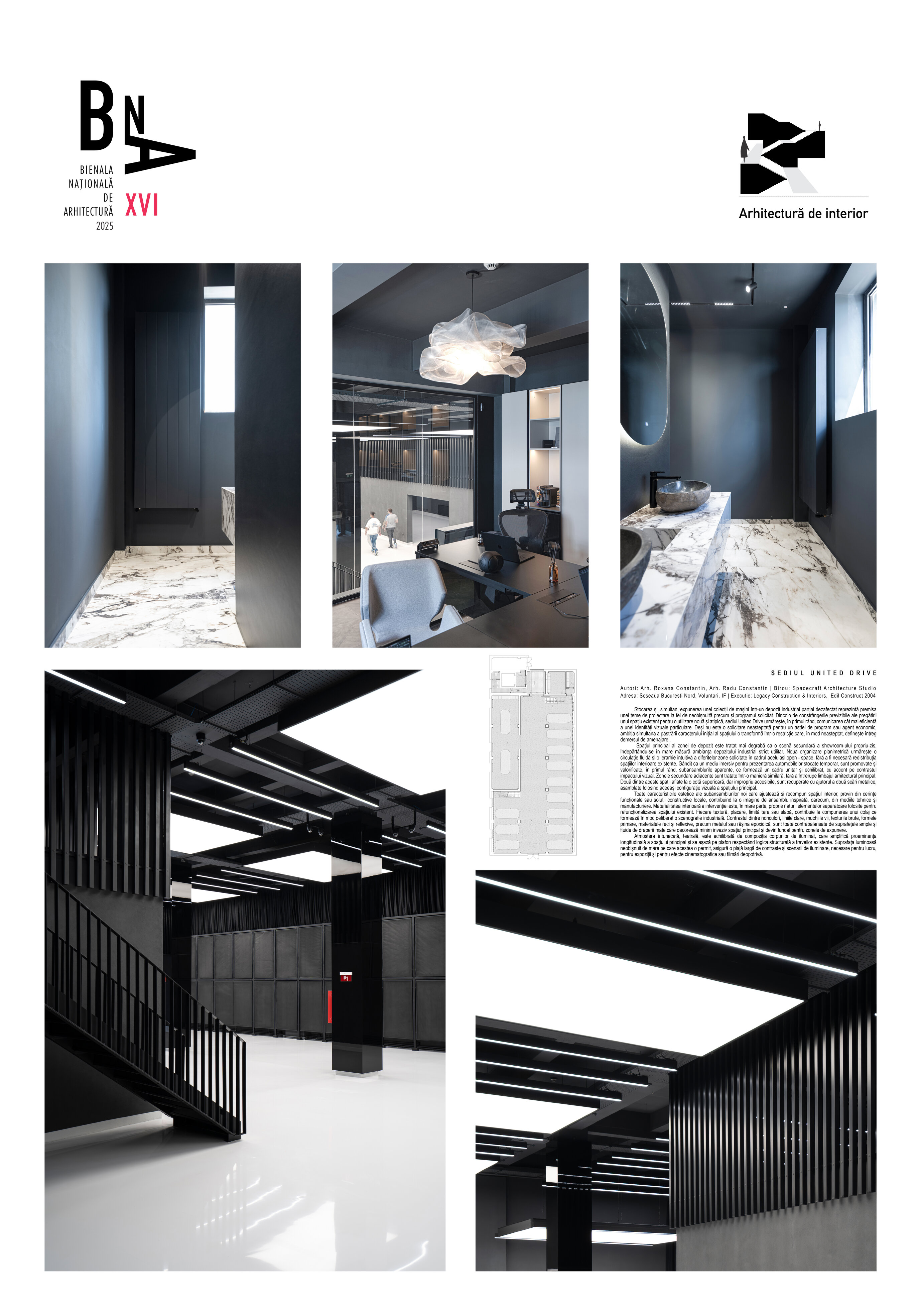 Stocarea și, simultan, expunerea unei colecții de mașini într-un depozit industrial parțial dezafectat reprezintă premisa unei teme de proiectare la fel de neobișnuită precum și programul solicitat. Dincolo de constrângerile previzibile ale pregătirii unui spațiu existent pentru o utilizare nouă și atipică, sediul United Drive urmărește, în primul rând, comunicarea cât mai eficientă a unei identități vizuale particulare. Deși nu este o solicitare neașteptată pentru un astfel de program sau agent economic, ambiția simultană a păstrării caracterului inițial al spațiului o transformă într-o restricție care, în mod neașteptat, definește întreg demersul de amenajare.
