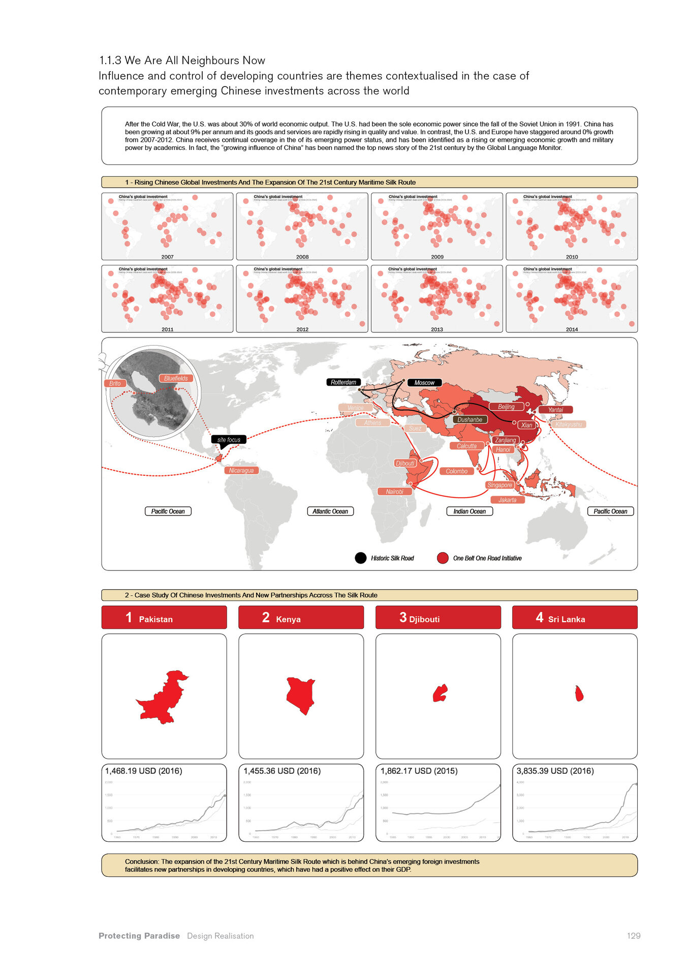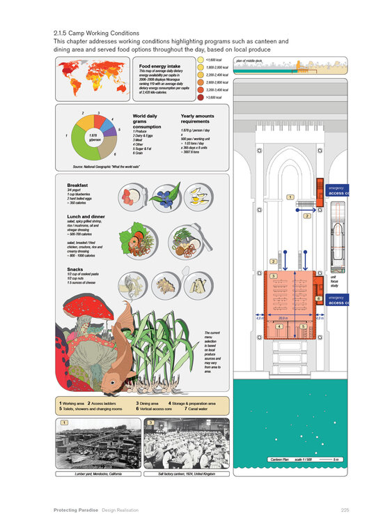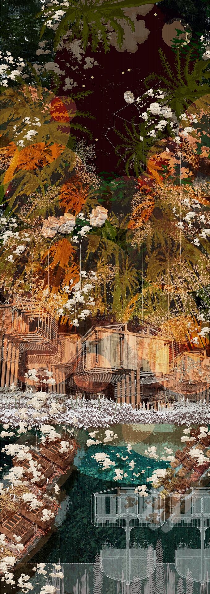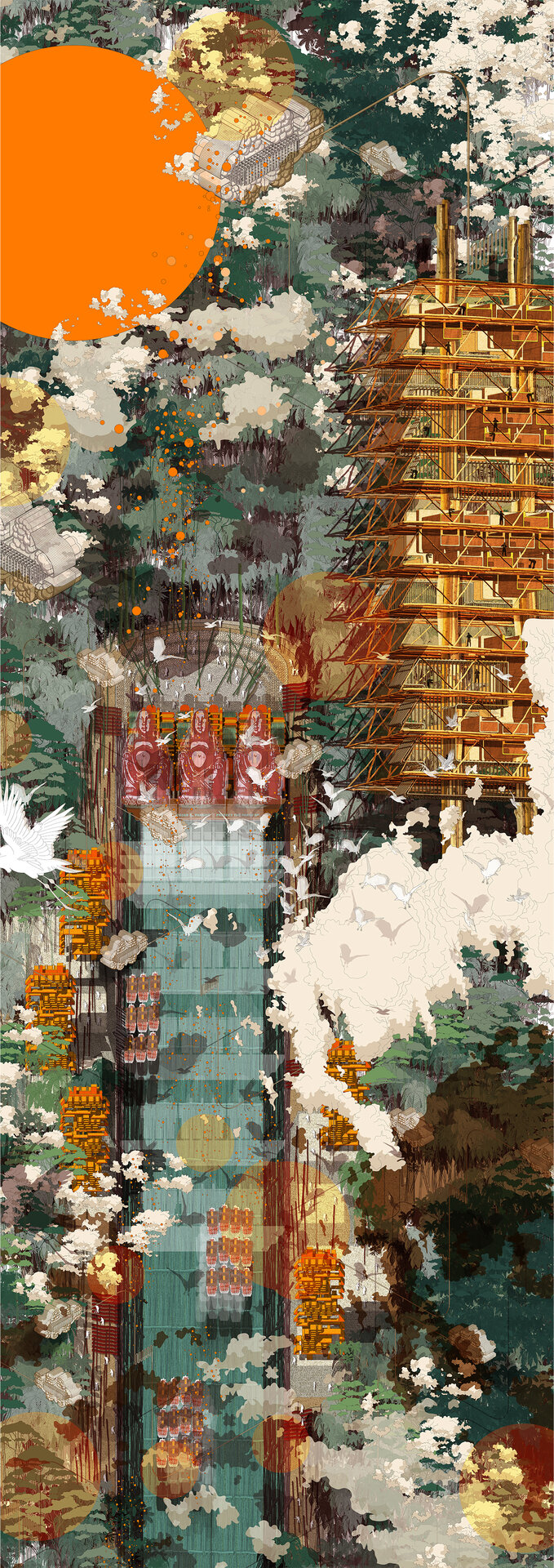 Inspirat de romanul clasic chinezesc Călătorie spre Vest (Wu Cheng’en sec. al XVI-lea), unde eroii luptă pentru a proteja cerurile, proiectul explorează cum pacea, egalitatea și libertatea pot deveni instrumente democratice de proiectare pentru a proteja Paradisul – cea mai extinsă pădure tropicală din America Centrală. Protecting Paradise: The Embassy of Environmental Philanthropy interpretează un acord diplomatic și economic bilateral între China și Nicaragua, apărut în contextul extinderii „Noului Drum Maritim al Mătăsii” din secolul XXI. Această „ambasadă” simbolică cultivă protecția mediului, autoritatea etică și încrederea politică, propunând o alternativă sustenabilă la infrastructura canalului inter-oceanic din Nicaragua – una dintre cele mai controversate investiții ale ultimului deceniu. Proiectul aduce în prim-plan o critică geopolitică a investițiilor răsăritene în țările în curs de dezvoltare, propunând în schimb practici de protecție ecologică și responsabilitate socială. Turiștii și comunitățile locale se întâlnesc într-un cadru guvernat de cinci principii ale coexistenței pașnice: prietenie, pace, egalitate, liniște și libertate. Masterplanul funcționează ca o investigație spațială: valorifică modul în care aceste principii pot fi aplicate la diferite scări – de la protecția peisajului la organizarea comunităților. Operațiunile de săpare a canalului devin, paradoxal, ocazia de a regândi resursele: pământul excavat și pădurile defrișate sunt reutilizate pentru a crea noi programe sustenabile – locuințe, spații productive și infrastructuri ecologice. Astfel, Paradisul nu rămâne doar în zona ficțiunii arhitecturale, ci devine un scenariu critic și o narațiune a construirii. El demonstrează că marile infrastructuri globale pot fi reimaginate nu ca gesturi de distrugere, ci ca moșteniri etice și ecologice, capabile să lase în urmă păduri și lacuri reziliente.