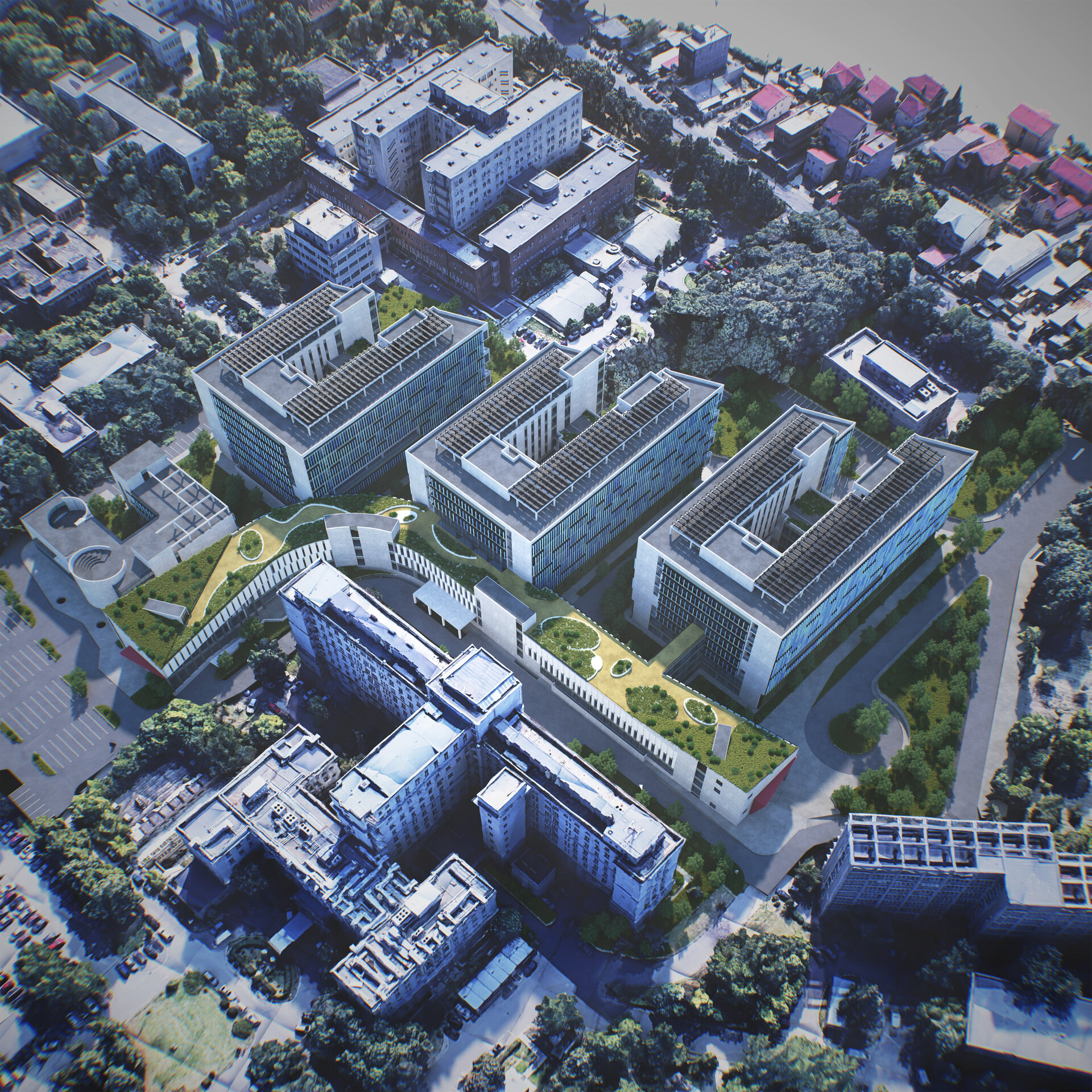 „Platforma medicală Fundeni” cuprinde 3 mari institute medicale dezvoltate succesiv și adiționat nucleului inițial al Institutului Clinic Fundeni (corp A) construit după proiectul arhitectei Henrieta Delavrancea – Gibory în 1957 pentru patologie digestivă, neurologică și urologică. Asimilarea patologiei cardiace, a dus la apariția Institutului de Urgență Cardiovasculară „C. C. Iliescu” prin corpul B proiectat în 1970 de arhitectul E. Machedon la Institutul Proiect București, și apoi la adiționarea Institutului Oncologic spre sud-est proiectat de SC Carpați, autor arhitecta Silvia Măldărescu. Dovada acestor legături funcționale o reprezintă realizarea tunelului de conexiuni subterane care leagă cele 3 instituții între ele cu anexele logistice din nord-estul amplasamentului. Suprafața generoasă a platformei de peste 500.000 mp a dus la apariția a peste 50 de construcții anexe, care au făcut dificilă orice inserție, în vederea dezvoltării investiționale recent propuse.