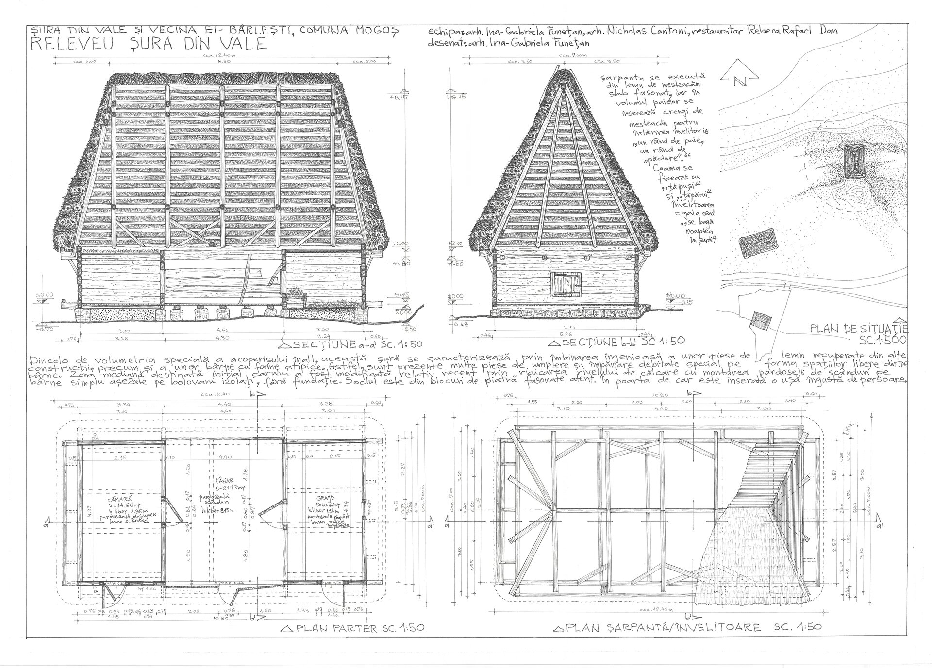 Proiectul a reunit 21 de participanți – arhitecți cu experiență în restaurarea monumentelor istorice, restauratori, ingineri, istorici, etnologi, studenți, precum și o echipă de televiziune (TVR București). Împreună, aceștia au desfășurat o cercetare de teren complexă, cu rezultate notabile: 34 de șuri, 2 găbănașe și o casă au fost cartate pe traseul de 44 km dintre satul Cotorășți (com. Râmeț) și Mogoș (com. Mogoș), situate la altitudini cuprinse între 671 m și 1114 m. Întreg demersul s-a desfășurat într-un peisaj natural spectaculos – Cheile Râmețului și platoul Tarcău, care se suprapune armonios peste cel cultural și etnografic.