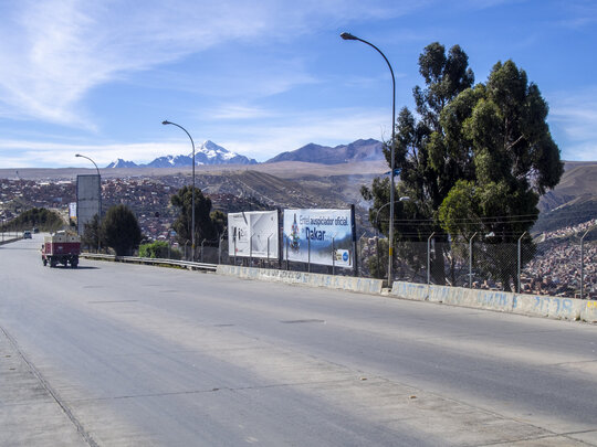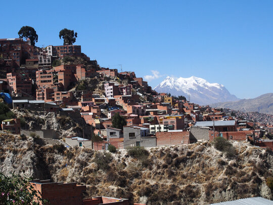 2 – 2016, Muntele Illimani (6400m) se ridică în fundalul peisajului dramatic al orașului La Paz, Bolivia