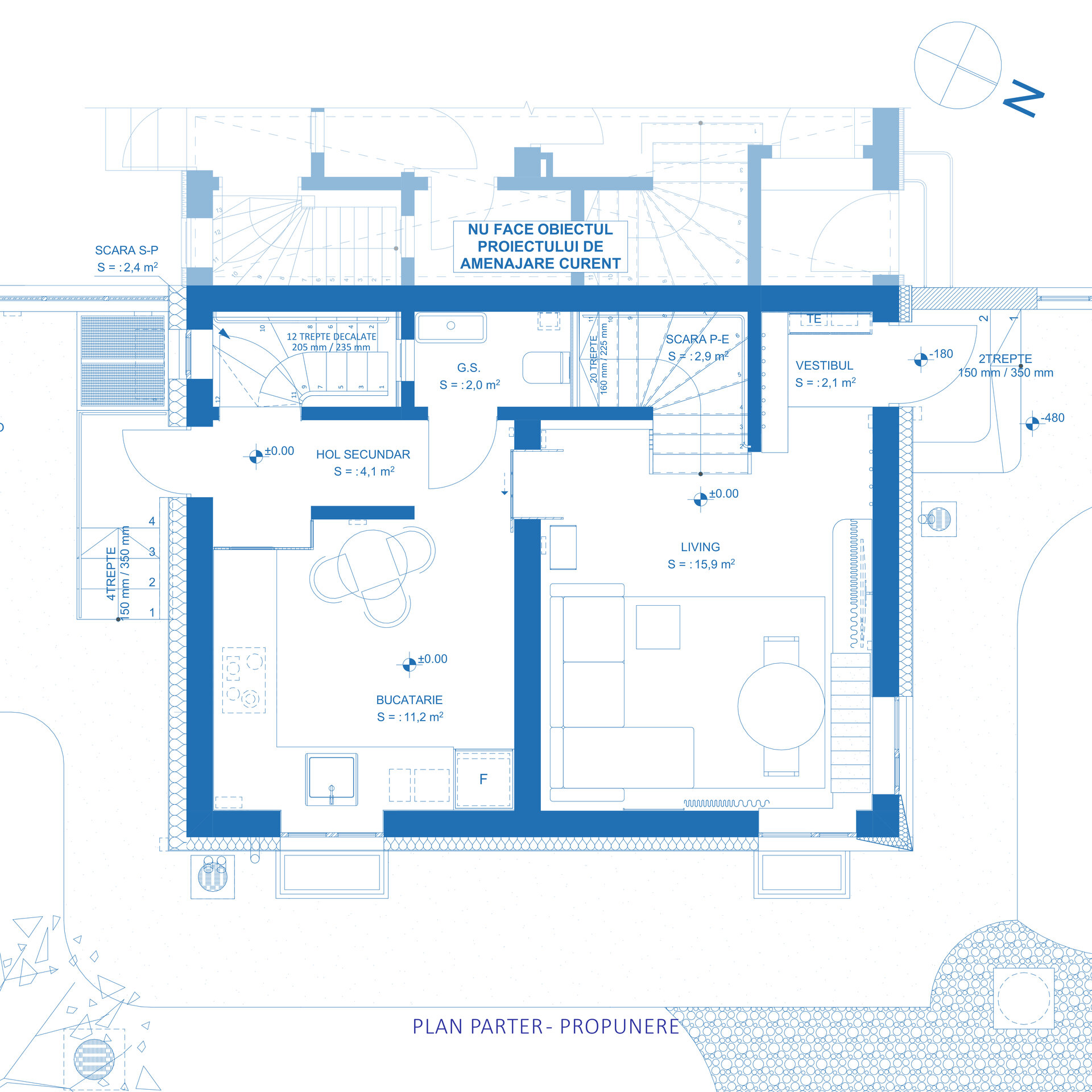 Prin acest proiect, ne-am propus transformarea locuinței într-un spațiu funcțional și fluid, eliberat de elementele care îngreunau utilizarea sa intuitivă. Lumina naturală a devenit un instrument esențial în redefinirea atmosferei interioare. Deși dimensiunile camerelor nu puteau fi extinse fizic, am urmărit să creăm percepția unor spații mai ample și aerisite. În acest sens, am mărit suprafețele vitrate și am consolidat relația dintre interior și grădină, aducând natura mai aproape de viața de zi cu zi.