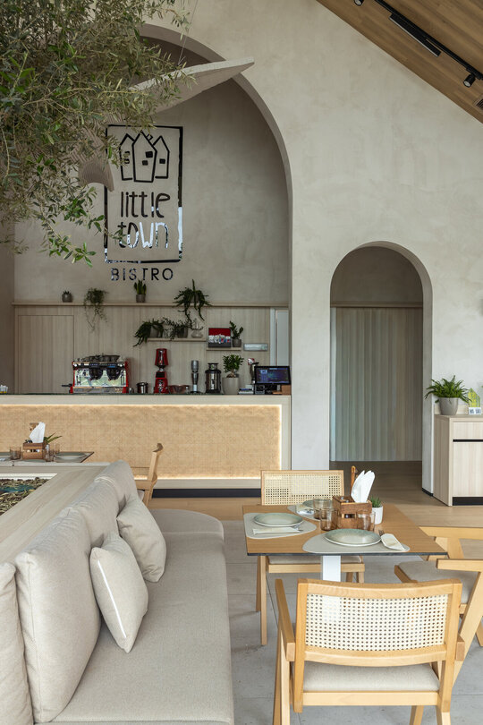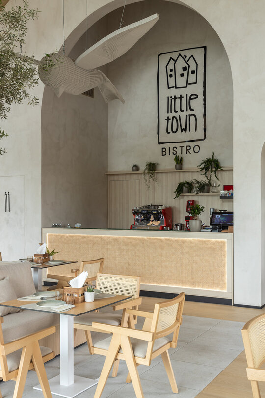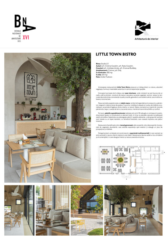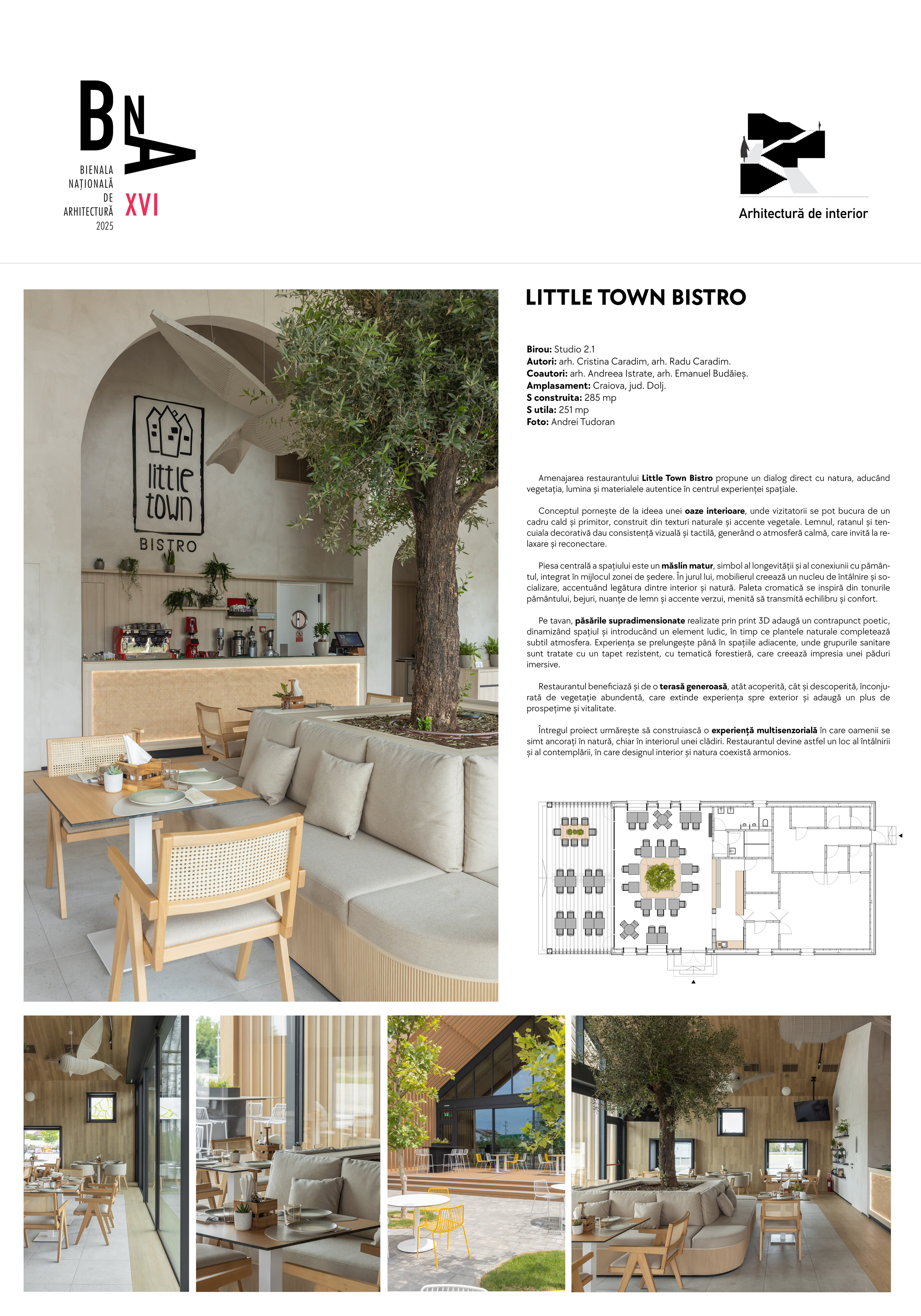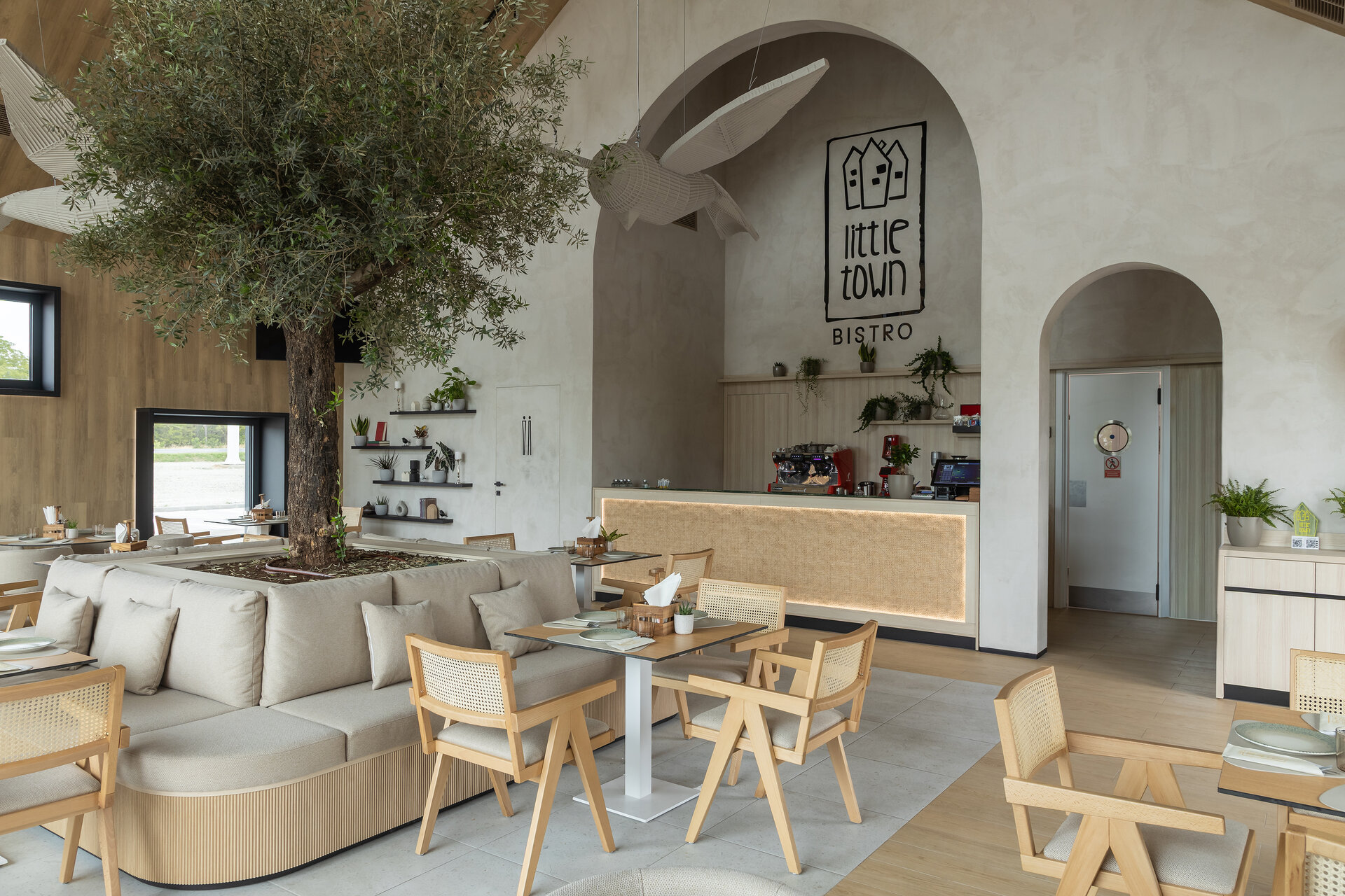 Amenajarea restaurantului Little Town Bistro propune un dialog direct cu natura, aducând vegetația, lumina și materialele autentice în centrul experienței spațiale.