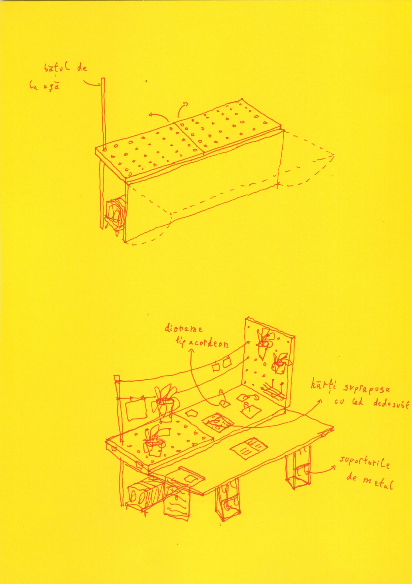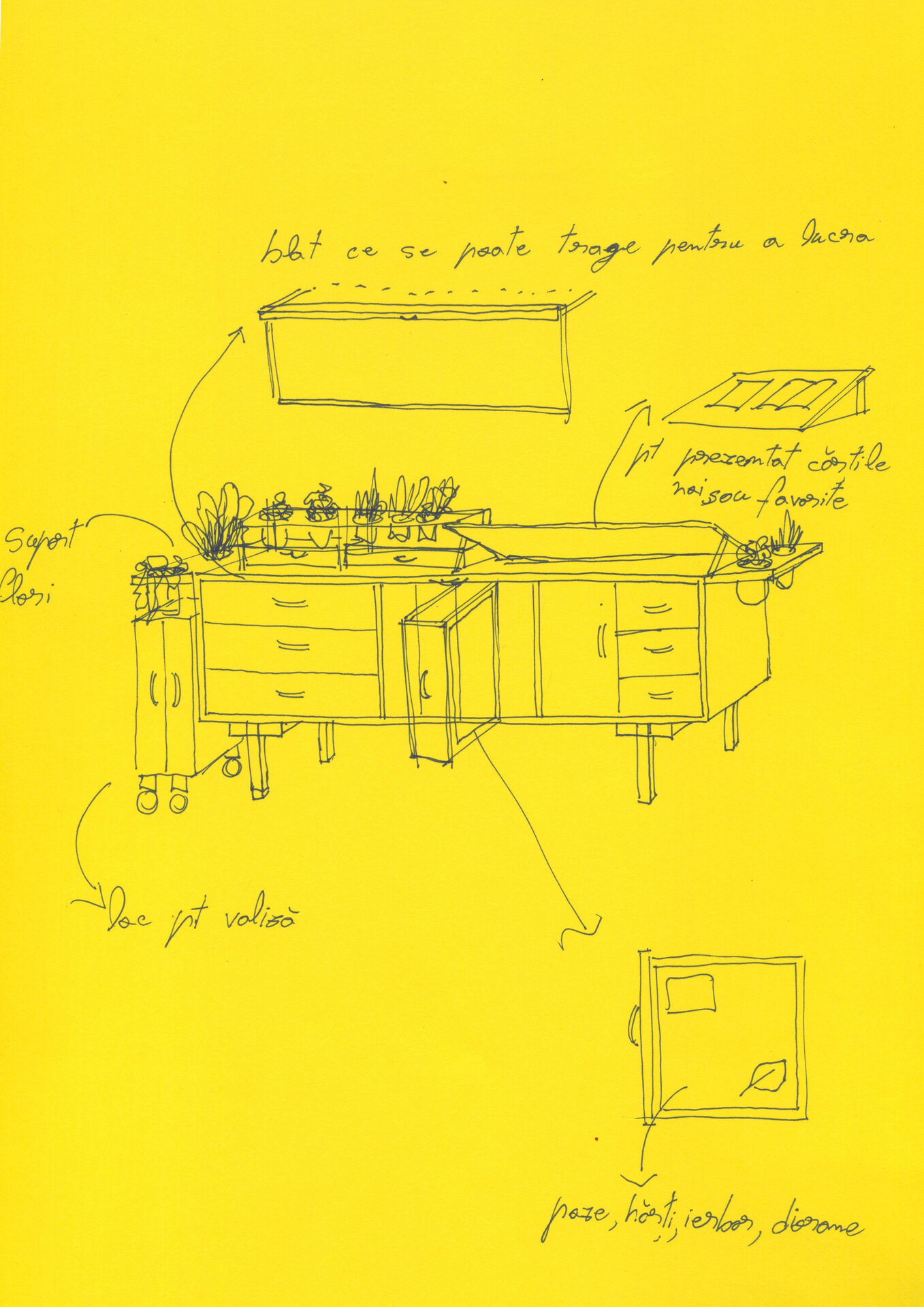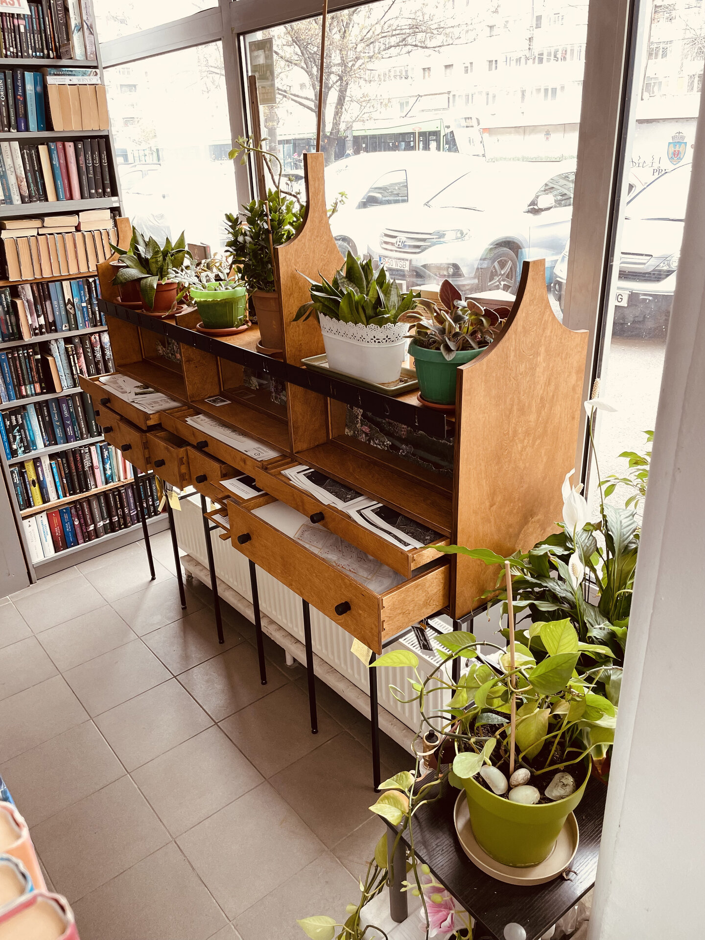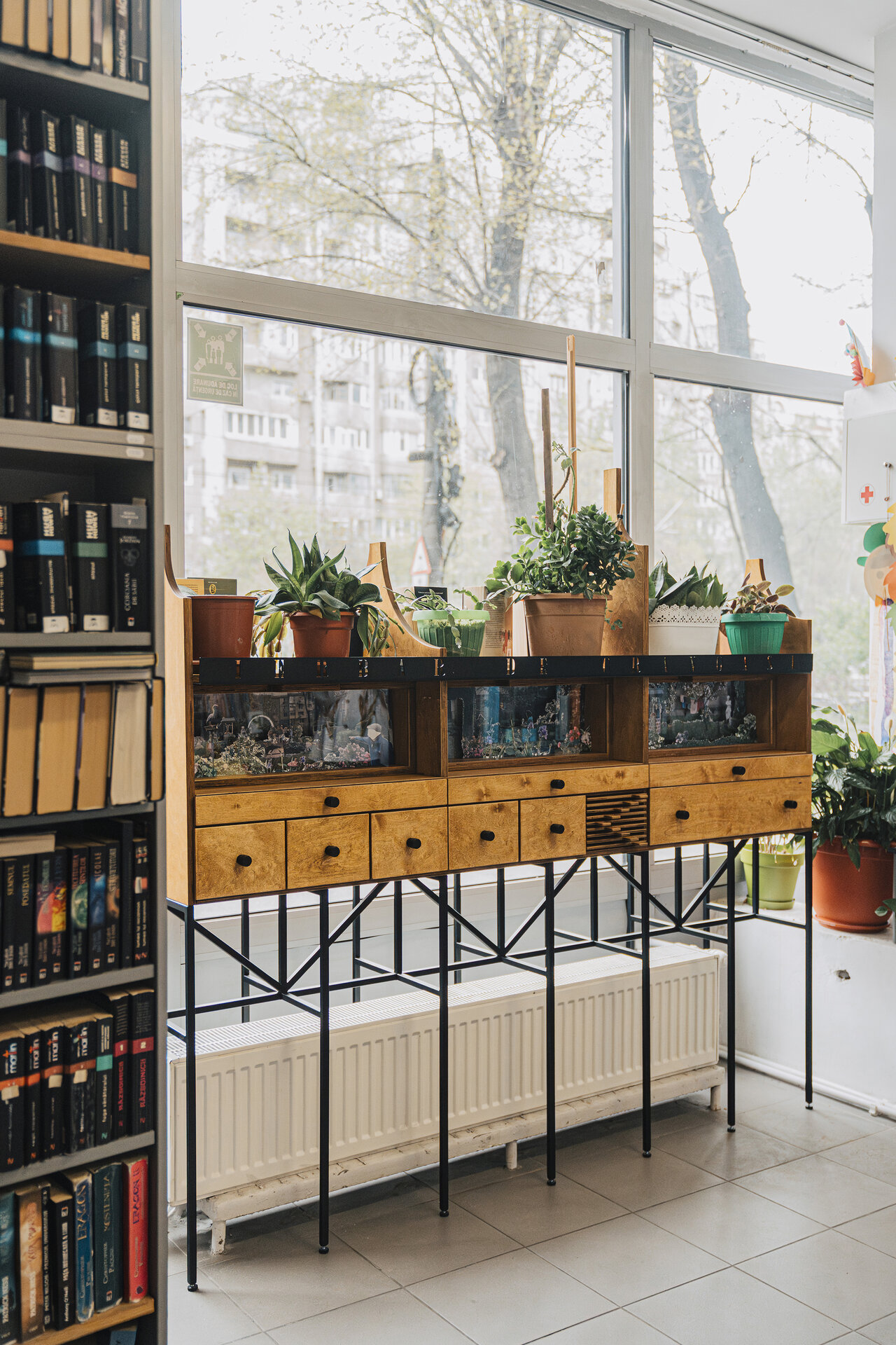 Una din caracteristicile filialelor locale ale BMB este dimensiunea redusă, care face ca de cele mai multe ori spațiile interioare ale bibliotecilor de cartier să fie neîncăpătoare și pline de mobilier. Posibilitățile de amplasare ale Ierbarului au fost astfel destul de reduse, în urma discuțiilor dintre echipă și bibliotecară stabilindu-se ca loc potrivit zona dinspre fațada de sticlă spre stradă, peste calorifer. Amplasarea lângă fațadă a permis și proiectarea acestuia pentru a răspunde celor două situații: la interior Ierbarul expandează printr-o multitudine de sertare care dezvăluie povești, istorii, desene, hărți și imagini ale practicilor spațiale informale din cartier, iar spre stradă permite amplasarea de cărți pentru atragerea unor noi utilizatori.