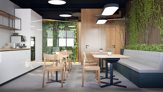 Conceptul urmărește aplicarea principiilor standardului WELL, punând în centrul designului calitatea vieții celor care folosesc spațiul. Calitatea aerului este asigurată prin ventilație eficientă și integrarea plantelor, confortul vizual este atent calibrat printr-un iluminat care susține ritmul circadian, iar acustica este tratată astfel încât spațiul să permită atât concentrare, cât și colaborare. Mobilierul ergonomic, selecția responsabilă a materialelor și accesul la lumină naturală contribuie la crearea unui spațiu care susține sănătatea fizică și mentală a utilizatorilor.