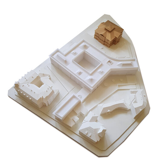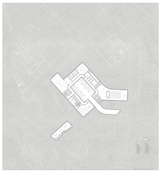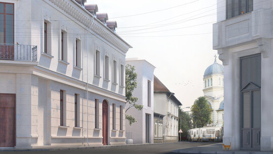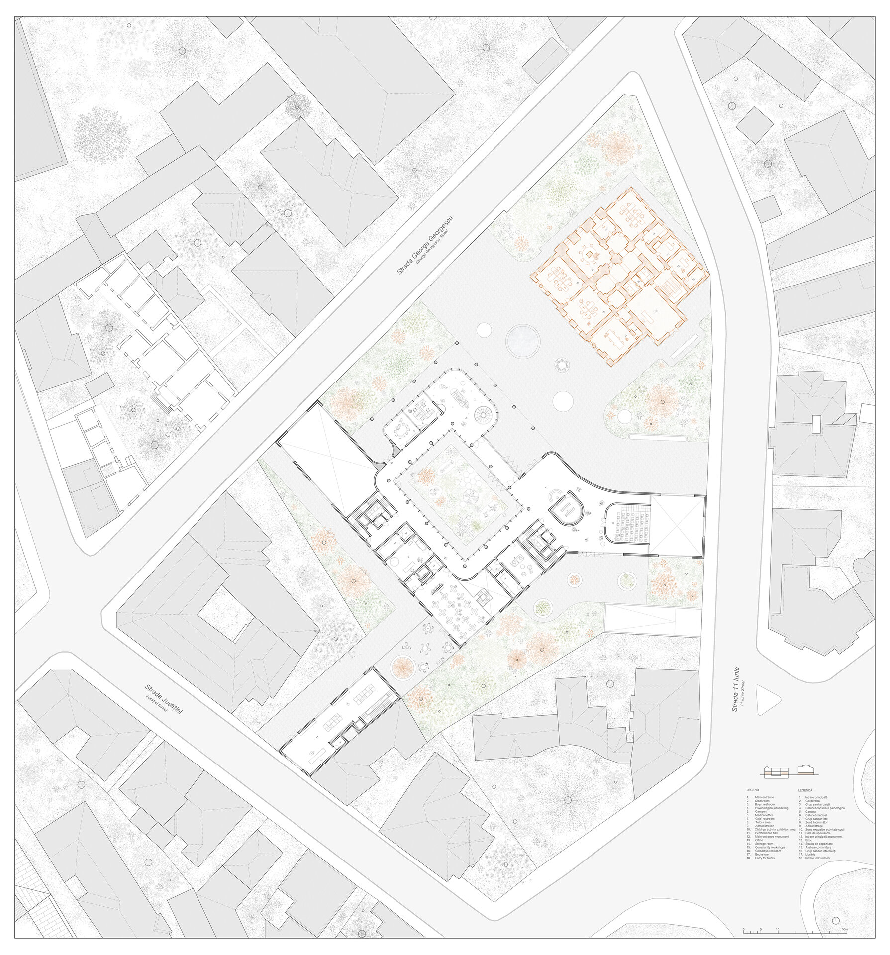 Astfel, subiectul proiectului de diploma se axează pe revalorificarea monumentului istoric, prin propunerea unei extinderi care sa reîntregească țesutul destructurat și care prin funcțiunea atribuită să readucă aminte de valoarea cultural-istorică și de caracterul educațional al locului. Volumul propus se raporteaza la cele trei strazi la care are deschidere, creand un spatiu liber intre sine si monument, articuland un spatiu public oferit comunitatii, care la anumite ocazii se poate conecta fizic cu spatiul curtii interioare.
