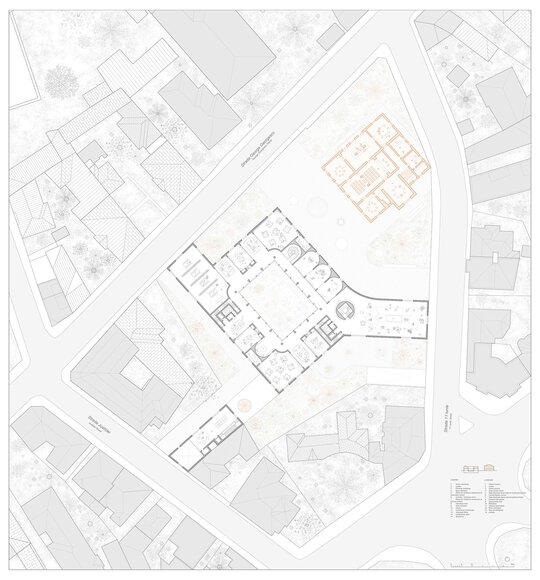 Extinderea se racordeaza intr-o maniera respectuoasa la existent, ceea ce o face evidenta fiind culoarea alba, fiind singura intr-un tesut cu edificii colorate. Noua funcțiune propusă, anume centru de zi pentru copii, se raportează atât la trecut, cât și la prezent, încercând a ajuta comunitatea existentă. Constituirea acestui Seminar, a avut ca premise tocmai dorința Mitropolitului Nifon de a ajuta tinerii proveniți din familii cu venituri insuficiente, care nu își permiteau accesul la o educație oportună. Pe lângă intenția de a ajuta copiii în vederea stopării abandonului școlar, precum și a însușirii educației ca factor elementar în dezvoltarea unei societăți înzestrate, proiectul oferă, în același timp, și spații dedicate comunității. Așa cum este expus și în recomandările internaționale, implicarea rezidenților în salvarea zonelor istorice, precum și în reintegrarea în viața urbană este esențială. Însușirea unui loc de către populația existentă a fost întotdeauna un deziderat care a făcut dintr-un spațiu uitat, un punct de plecare important în regenerarea urbană. Astfel, proiectul isi doreste sa redea caracterul educativ al arterei, care acum pare sa fie uitat, singura cladire care functioneaza in prezent fiind Colegiul National Mihai Eminescu.