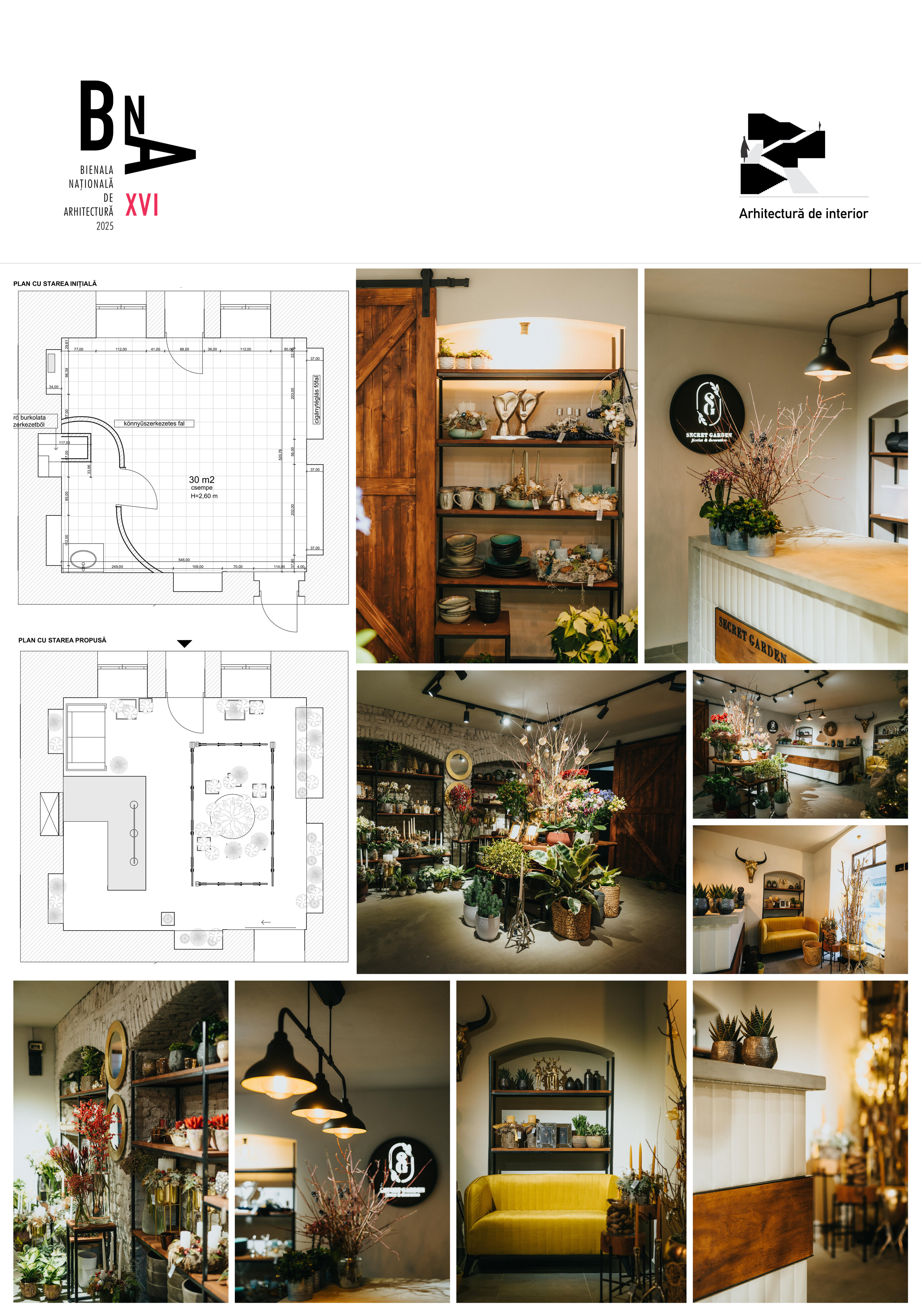 Una dintre cele mai mari provocări în procesul de proiectare a fost suprafața existentă de doar 30 m², care a necesitat o utilizare multifuncțională a spațiului: acesta trebuia să găzduiască prezentarea produselor, activitatea de aranjamente florale, ambalare și vânzare.