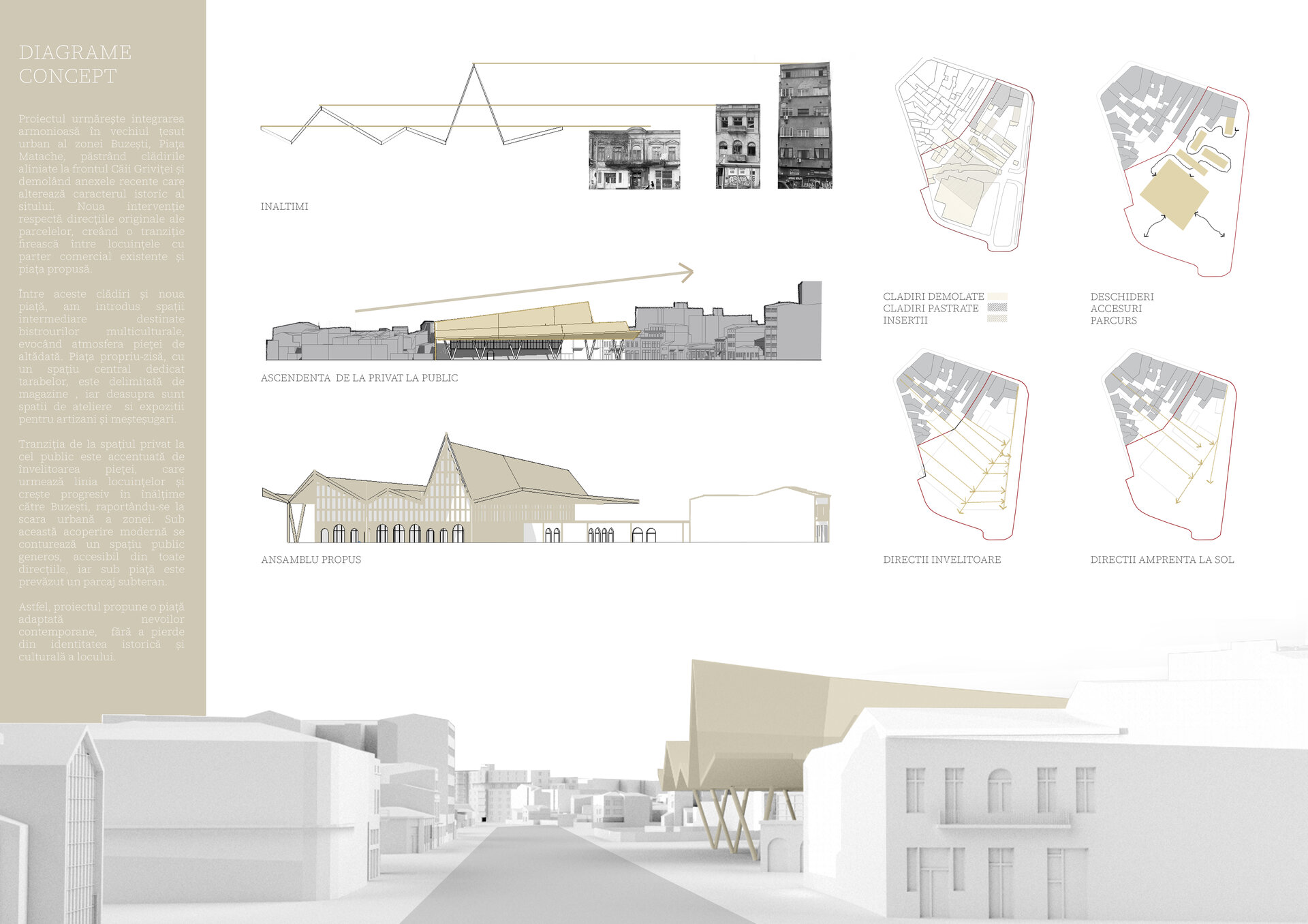În această atmosferă tensionată, situl fostei Piețe Matache devine un teren de reflecție și responsabilitate arhitecturală. Ridicată între 1887 și 1899, hala specifică arhitecturii industriale de la sfârșitul secolului al XIX-lea, a fost vreme de decenii un reper nu doar comercial, ci și identitar. Ea aduna producători, artizani și cumpărători, transformându-se într-un adevărat nod al vieții comunitare. Demolarea din 2013 nu a însemnat doar dispariția unui spațiu de comerț, ci și pierderea unui fragment de patrimoniu semnificativ, care garanta continuitatea urbană și memoria colectivă a cartierului Buzești–Grivița.
