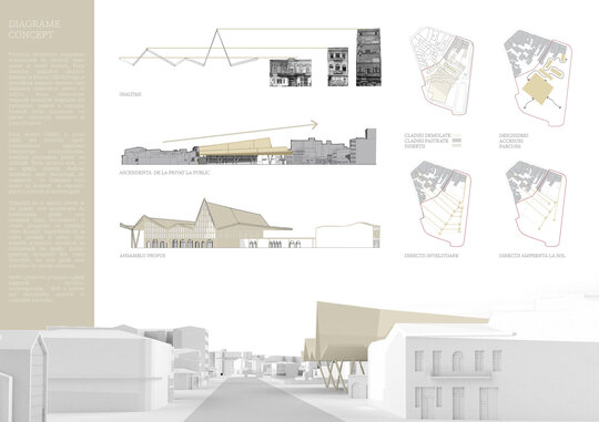 Propunerea de revitalizare nu caută să umple simplu un gol urban, ci să construiască un recviem arhitectural. Este o încercare de a reinterpreta limbajul industrial al fostei hale, de a recupera fragmentele de memorie materială și de a le transpune într-o structură adaptată prezentului. Noile funcțiuni – spații comerciale, ateliere de artizanat, zone culturale și expoziționale – nu sunt doar utilitare, ci gândite pentru a susține un organism urban viu, deschis și flexibil, care să ofere comunității un nou punct de referință.