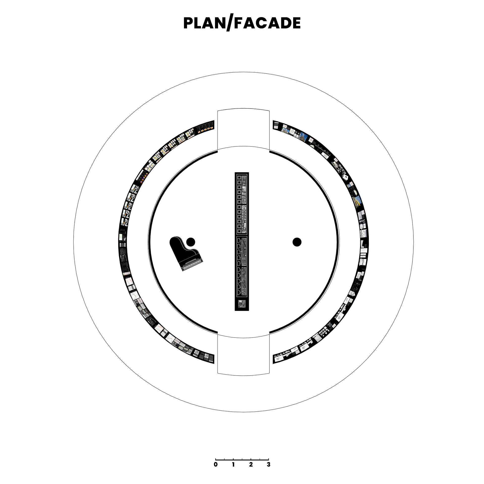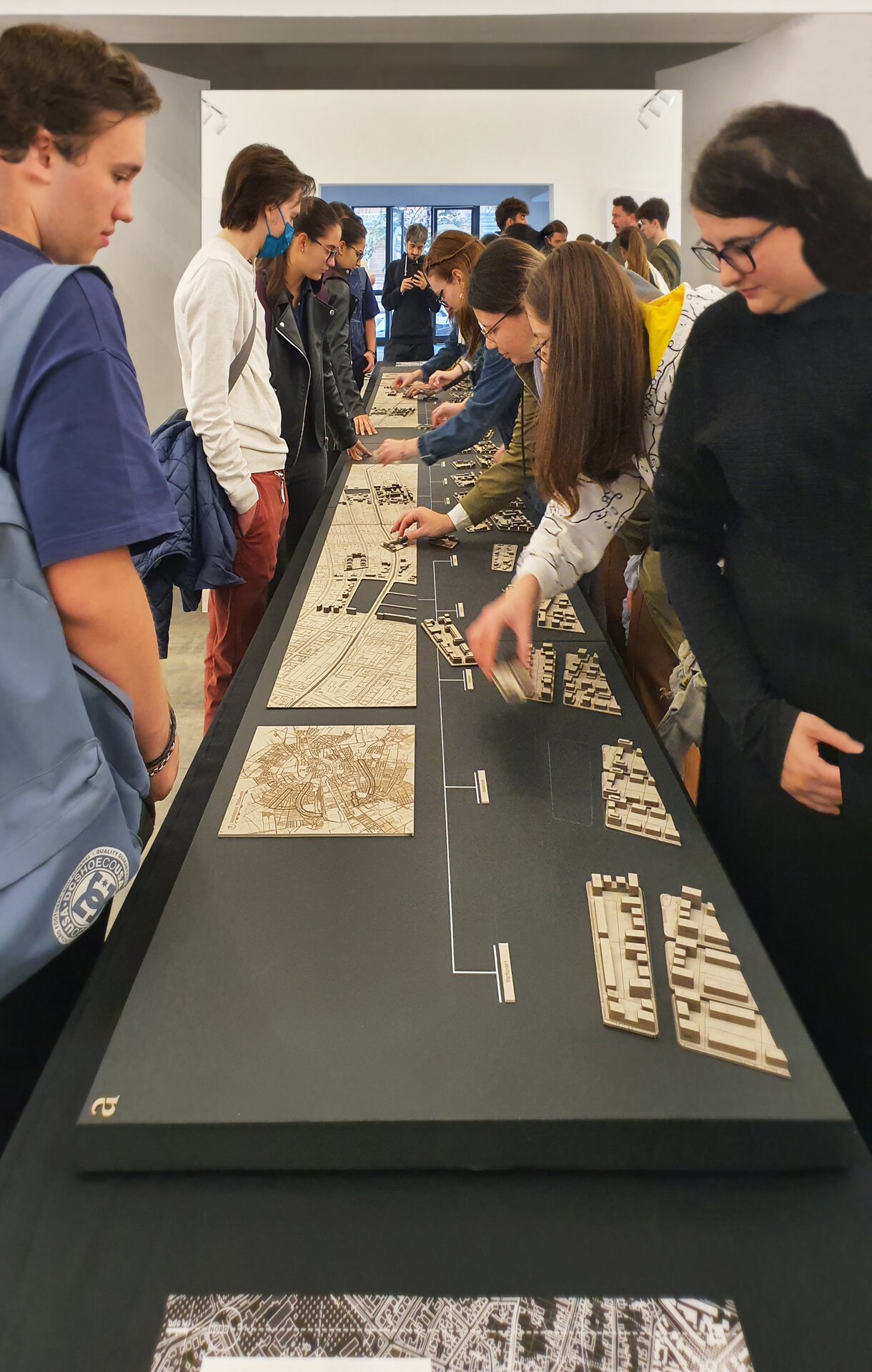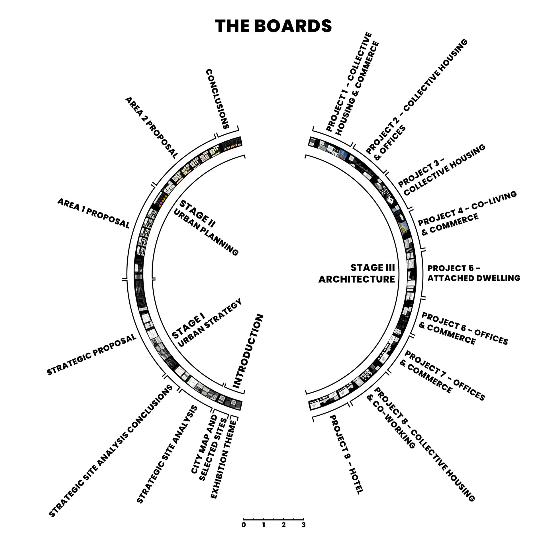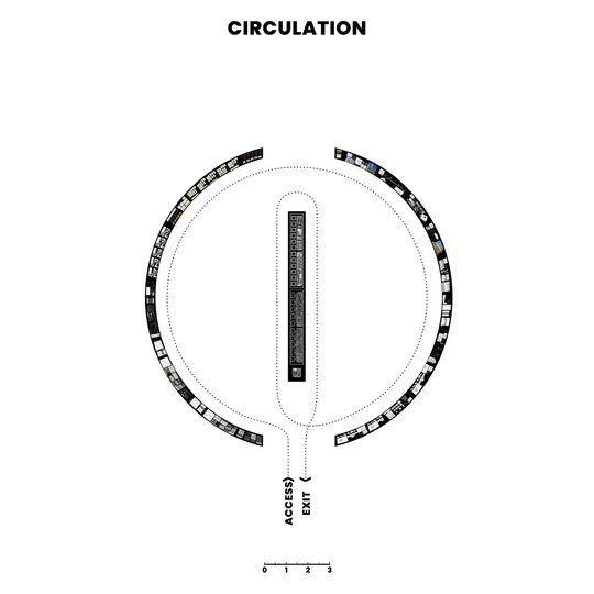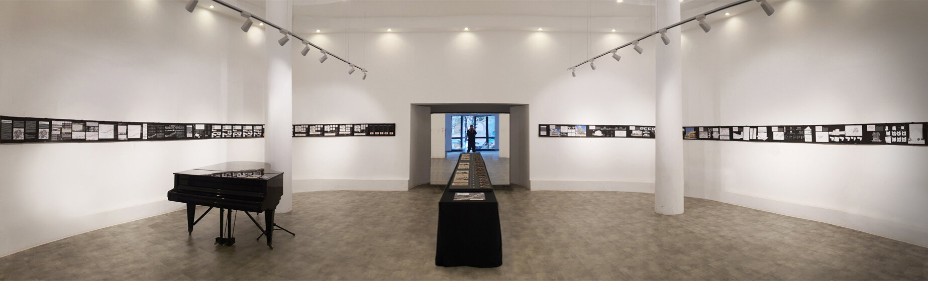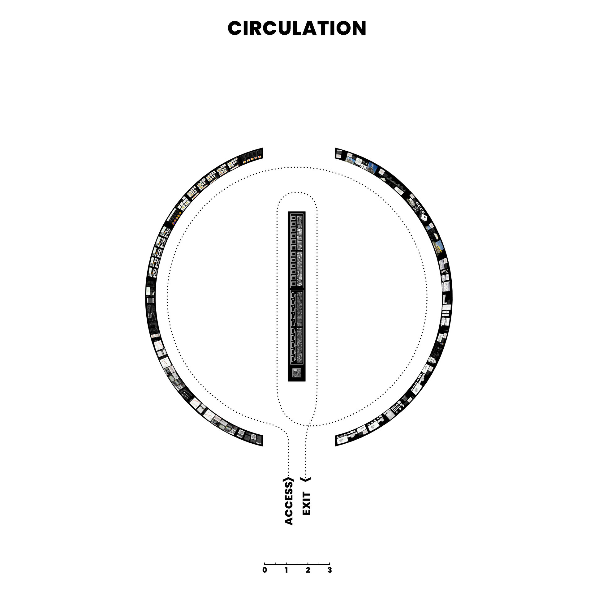 Conceptul amenajarii expozitiei reflecta tema abordata in cadrul proiectului, elemente urbane liniare, prin dualitatea rolului de separator si îmbinare. Planse continue de 20m împart spatiul si conduc vizitatorii catre masa de 8m, oglindita pentru a accentua coridorul urban. Vizitatorii însusi sunt separati si apoi reuniti prin interactiunea cu macheta ce ilustreaza o selectie a variantelor posibile de implementare.