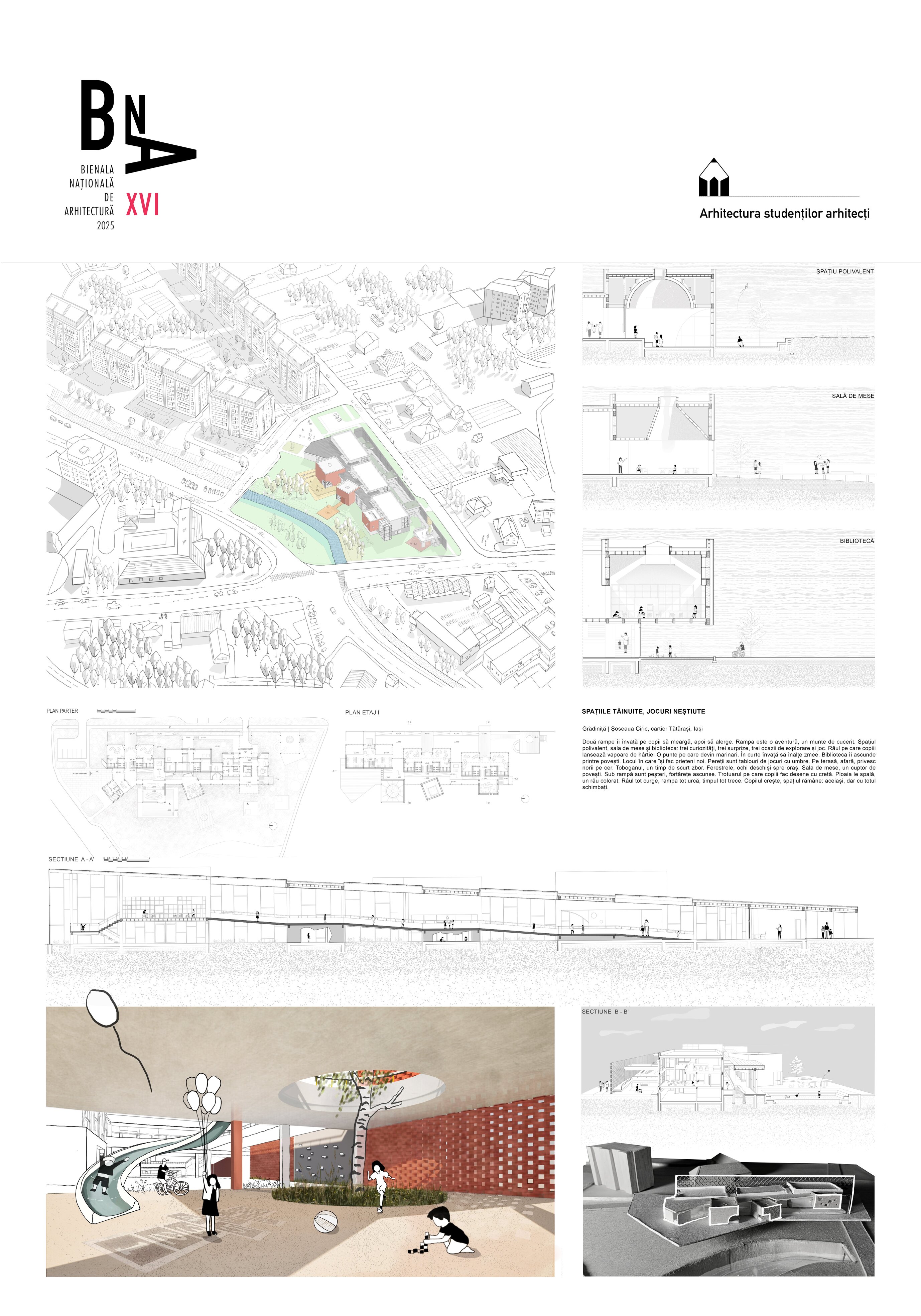 Ce devine locul când e privit doar de jos în sus? Spațiul se transformă într-un semn de întrebare, o ghicitoare, o curiozitate fără răspuns. În grădiniță, spațiul este o posibilitate: se redeschide, mereu, spre noi moduri de a fi explorat.