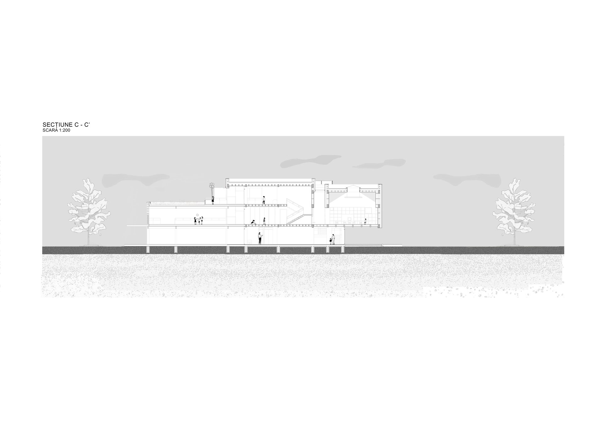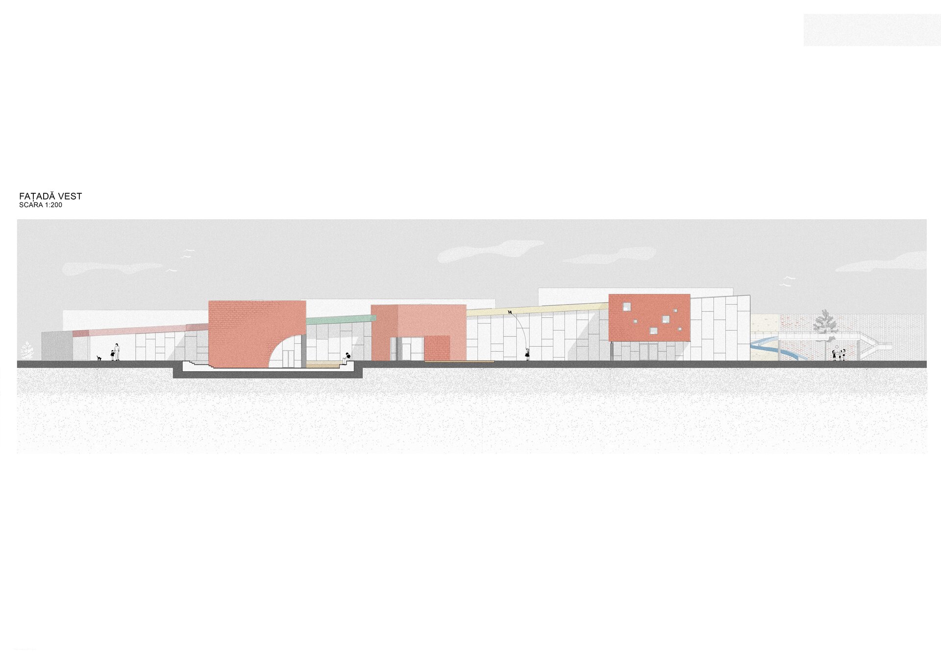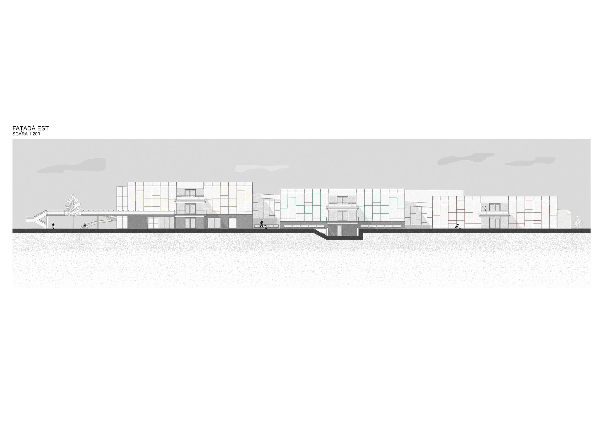 Cele două rampe, exceptând atribuțiile lor obișnuite de a asigura deplasarea pe verticală și accesibilitatea, creează pauze în parcurs, spații destinate jocului.