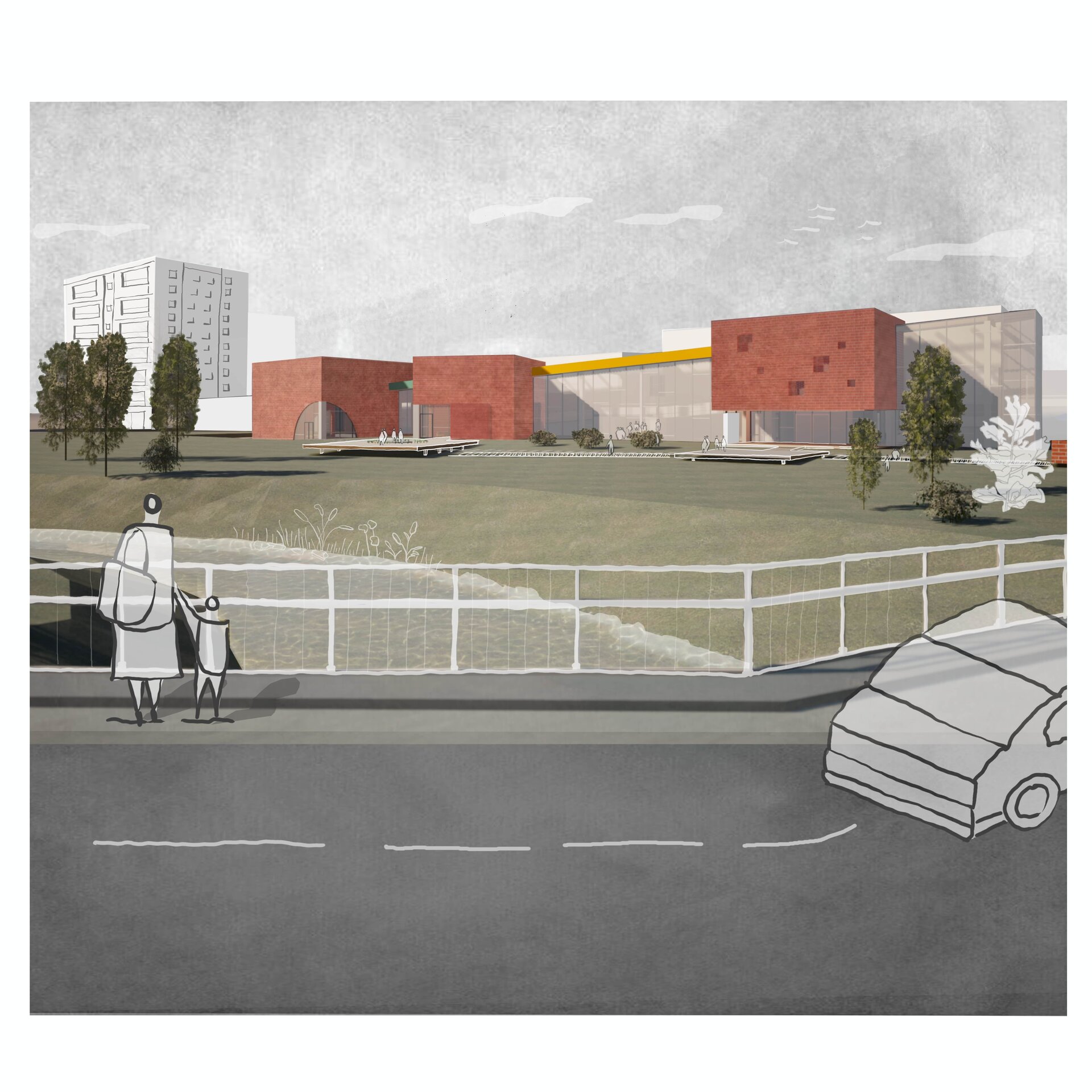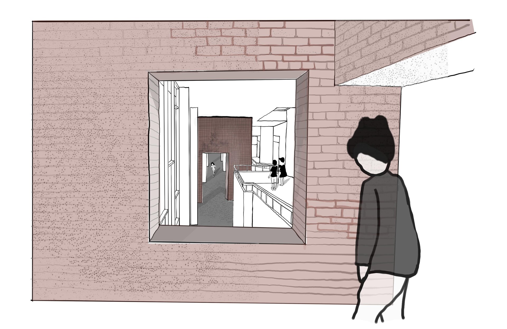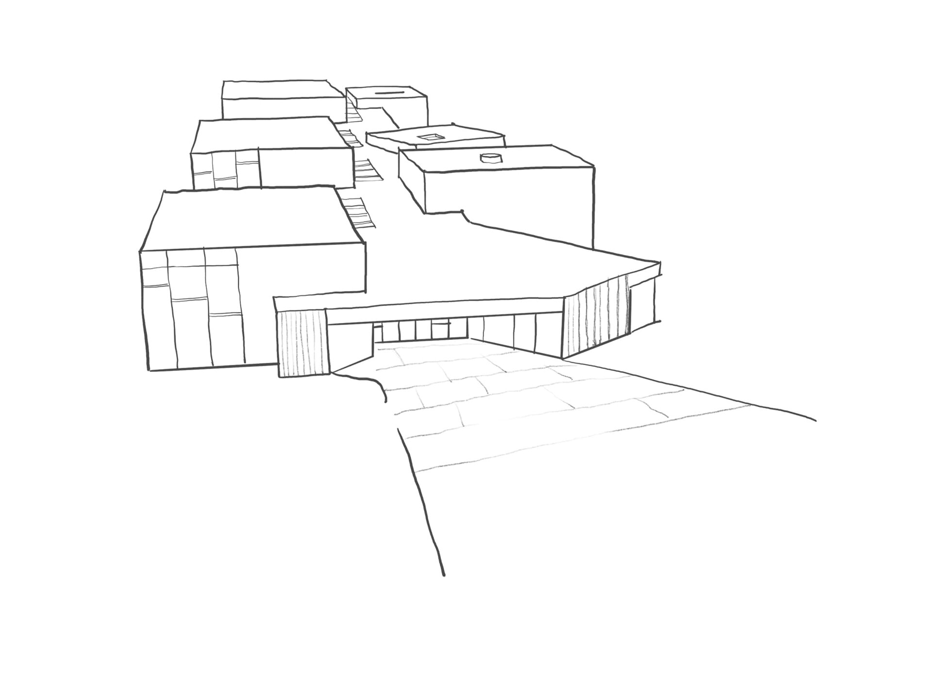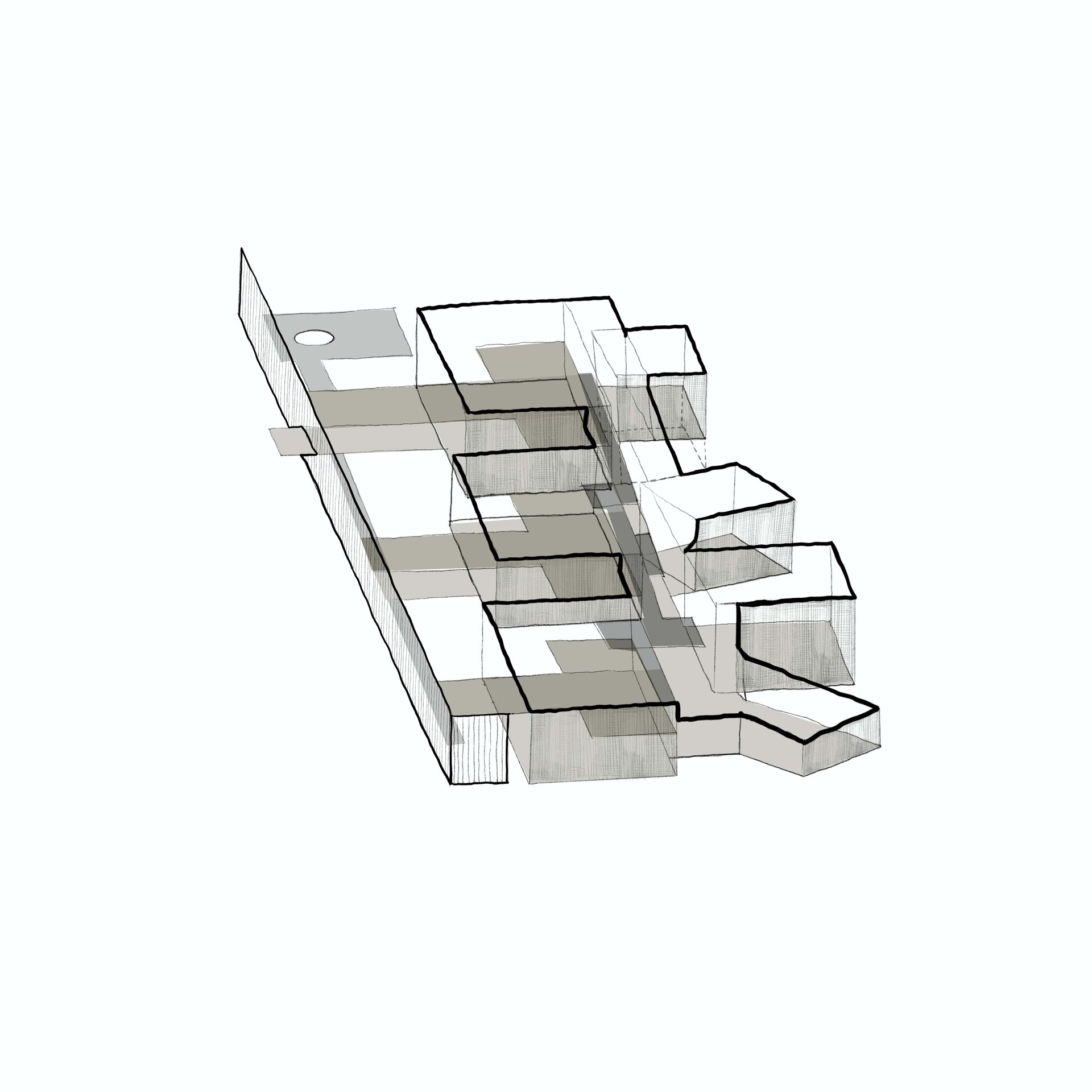 Cele două rampe, exceptând atribuțiile lor obișnuite de a asigura deplasarea pe verticală și accesibilitatea, creează pauze în parcurs, spații destinate jocului.
