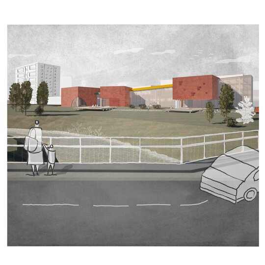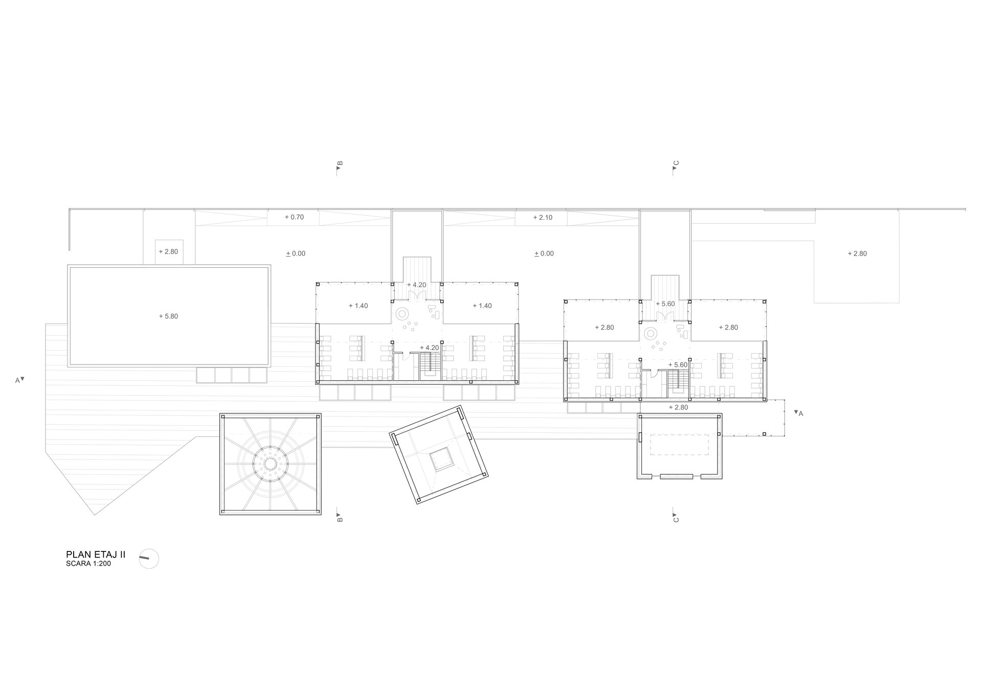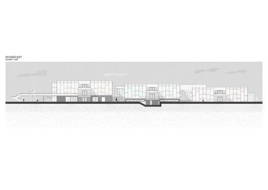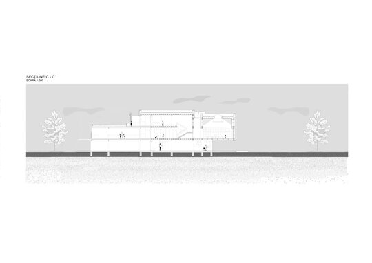 Sala polivalentă se evidențiază, ierarhic, prin gabarit, este acoperită de o boltă semisferică, luminată zenital. Se deschide, la exterior, către un amfiteatru în aer liber.