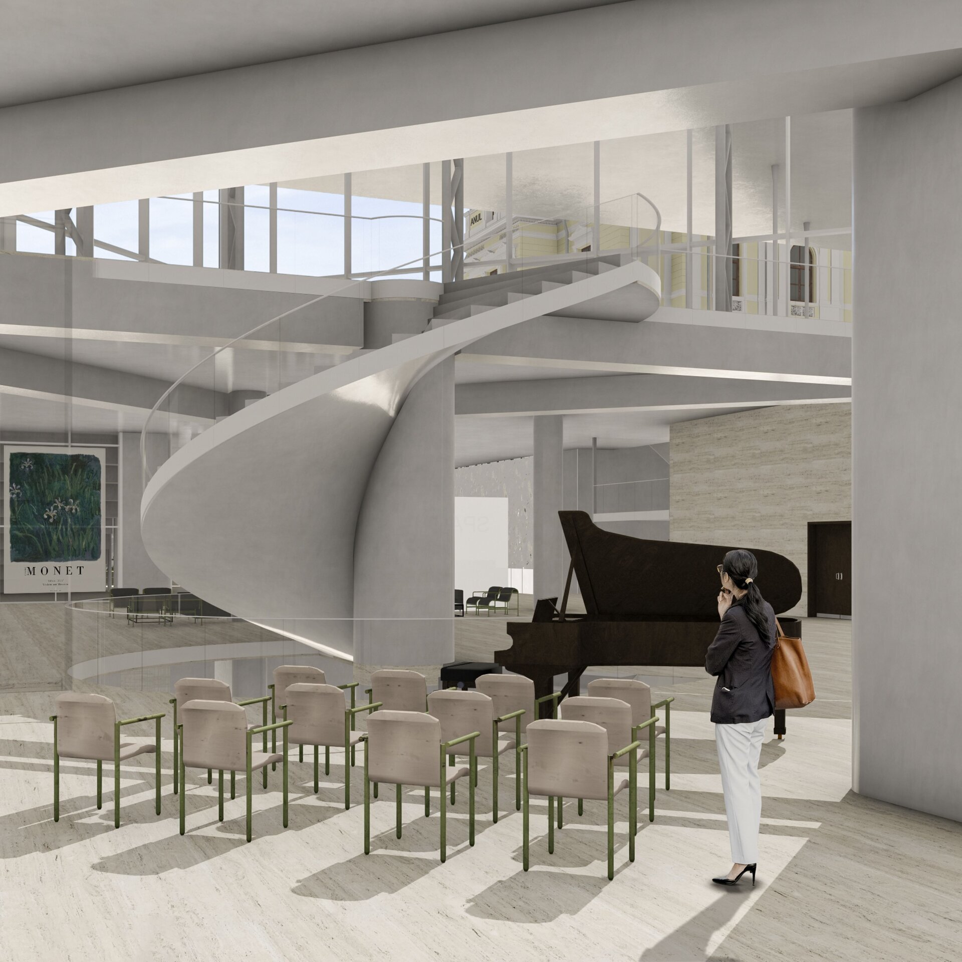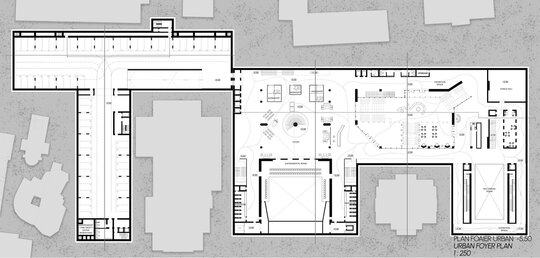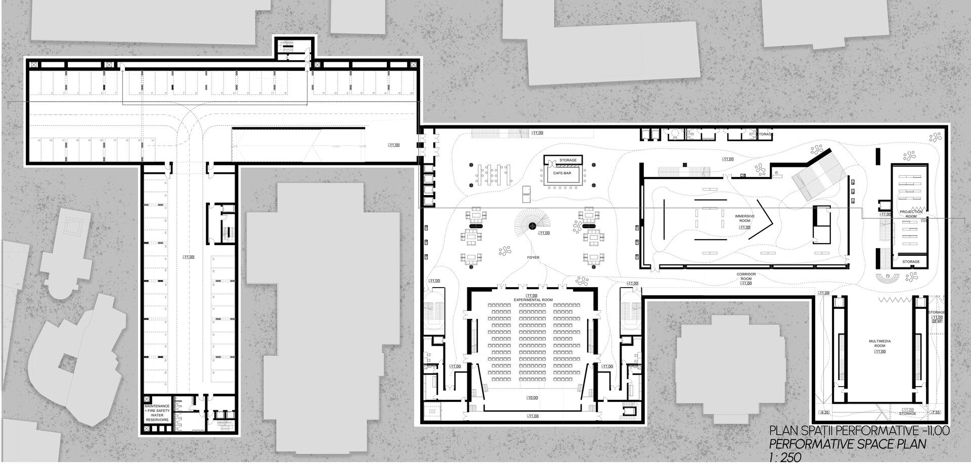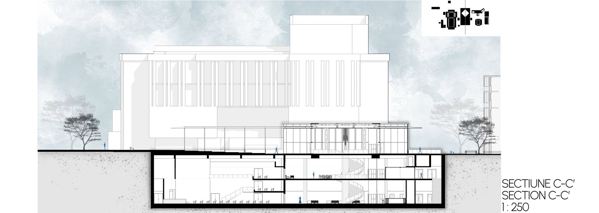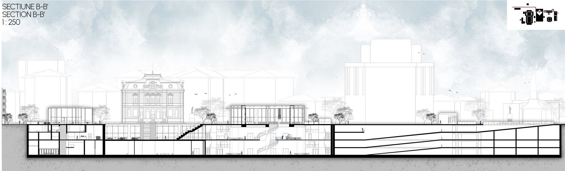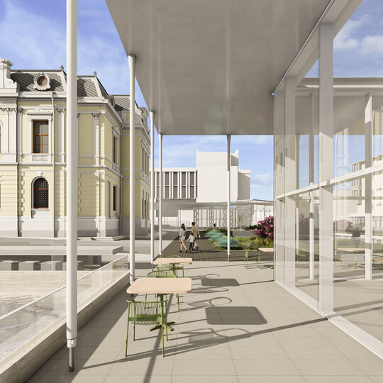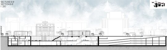 Extinderea spațiului cultural prevede crearea unui nivel subteran, la cota -10.00, cu o înălțime de 10 metri, care va oferi un cadru arhitectural modern, capabil să îmbine continuitatea funcțională cu respectul pentru compoziția urbană existentă. Acest nou strat arhitectural va deveni suportul pentru dezvoltarea programelor culturale și performative, prin intermediul hubului cultural, destinat găzduirii de spectacole de teatru, dans și concerte de anvergură.