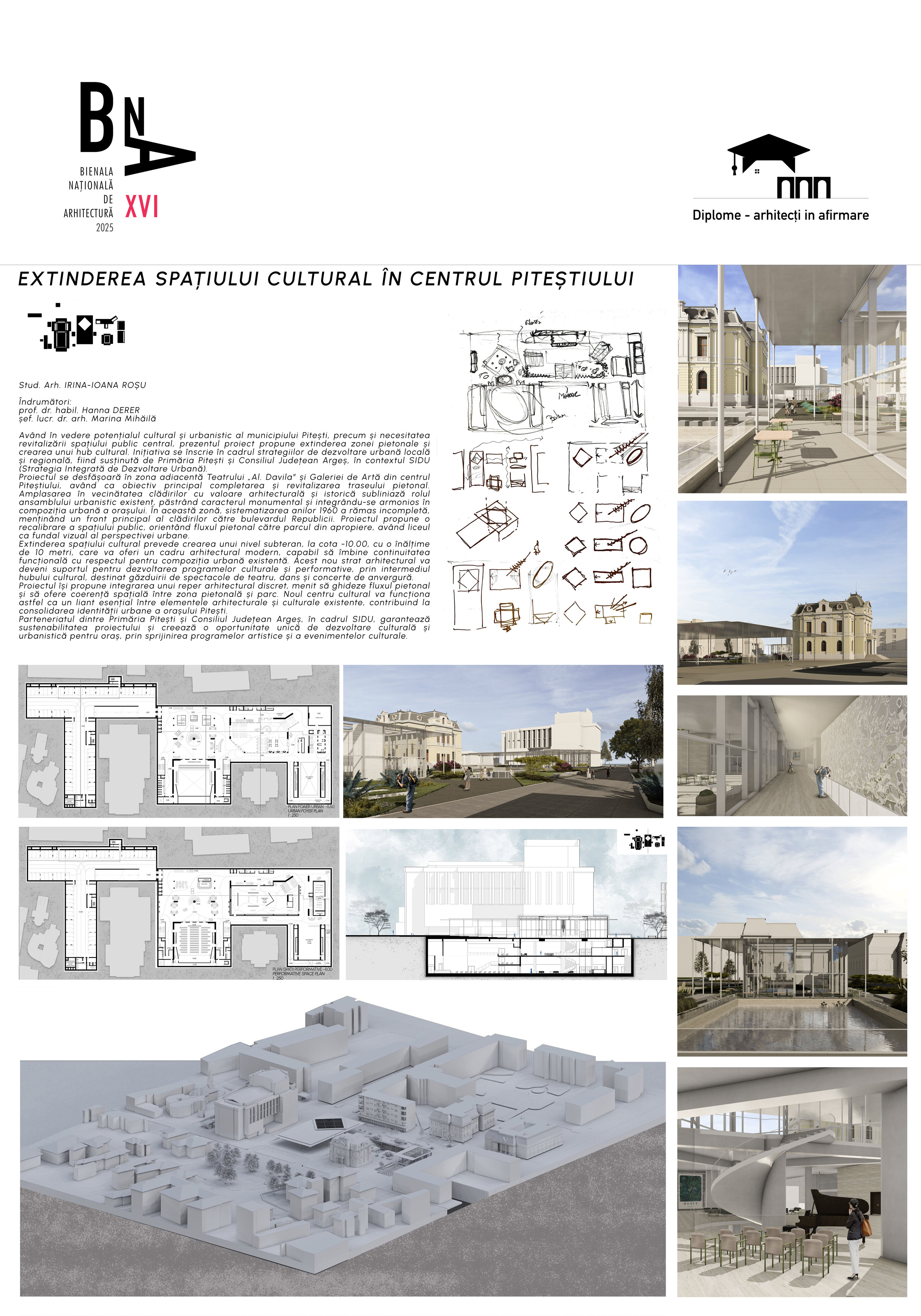 Proiectul își propune integrarea unui reper arhitectural discret, menit să ghideze fluxul pietonal și să ofere coerență spațială între zona pietonală și parc. Noul centru cultural va funcționa astfel ca un liant esențial între elementele arhitecturale și culturale existente, contribuind la consolidarea identității urbane a orașului Pitești.